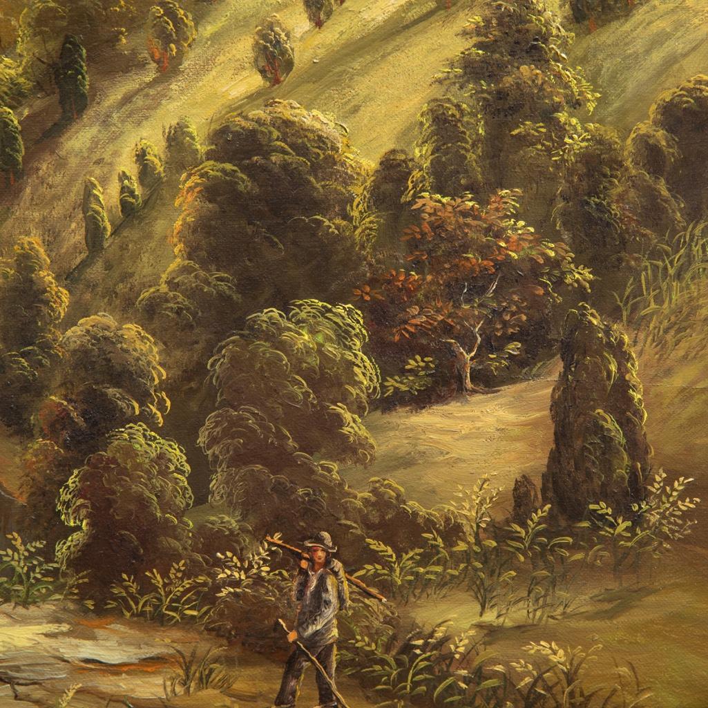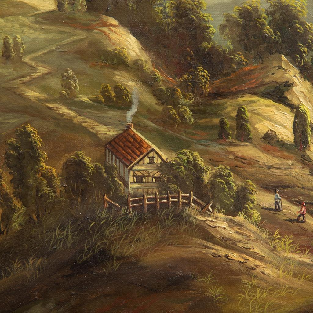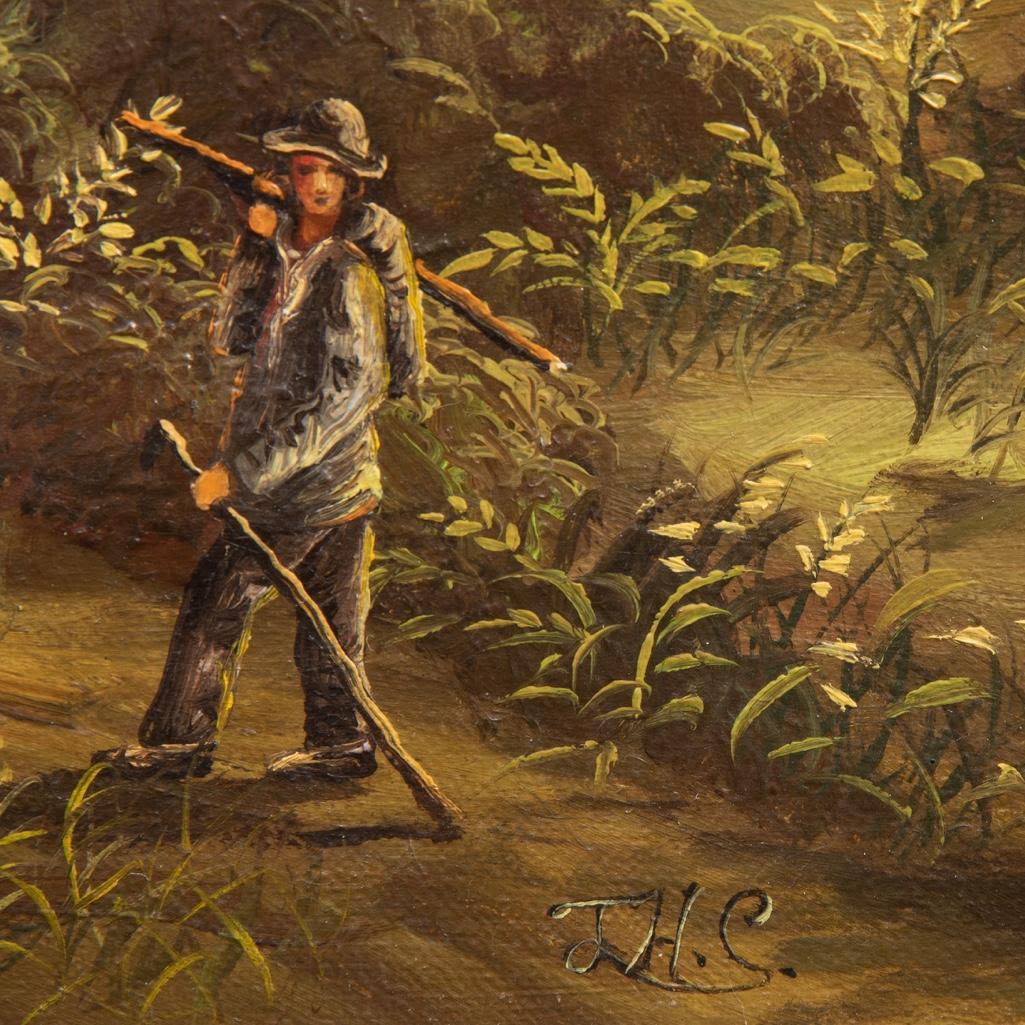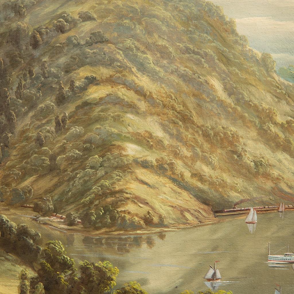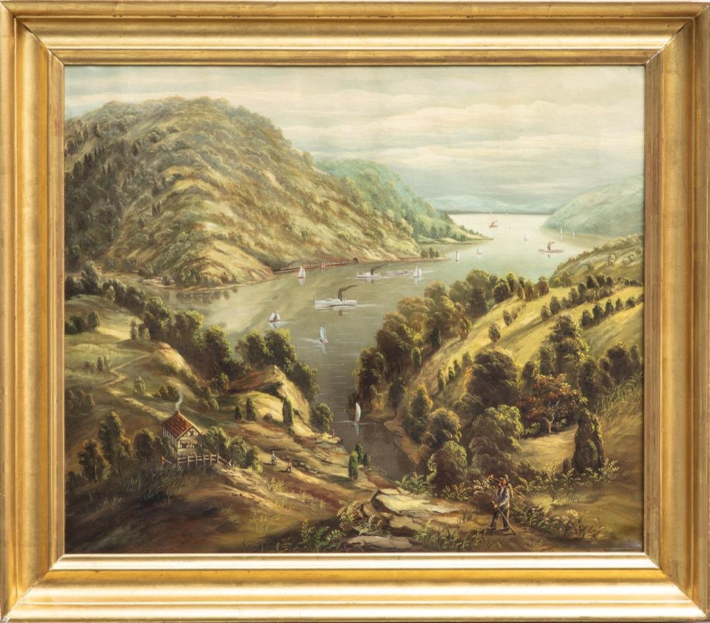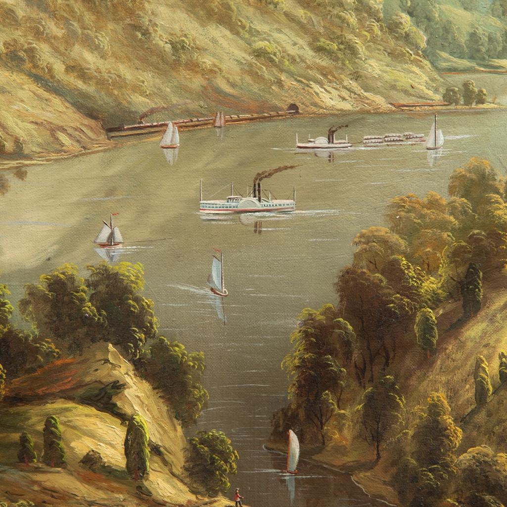 19th Century Hudson River School Oil on Canvas Depicting Paddle Boats on the Hudson River Near Storm King. Monogrammed Lower Right. measures 19"H x 23"W we dont know who did it..if you do let us know