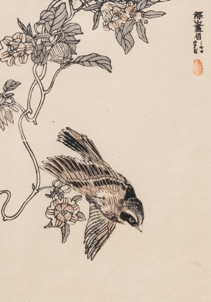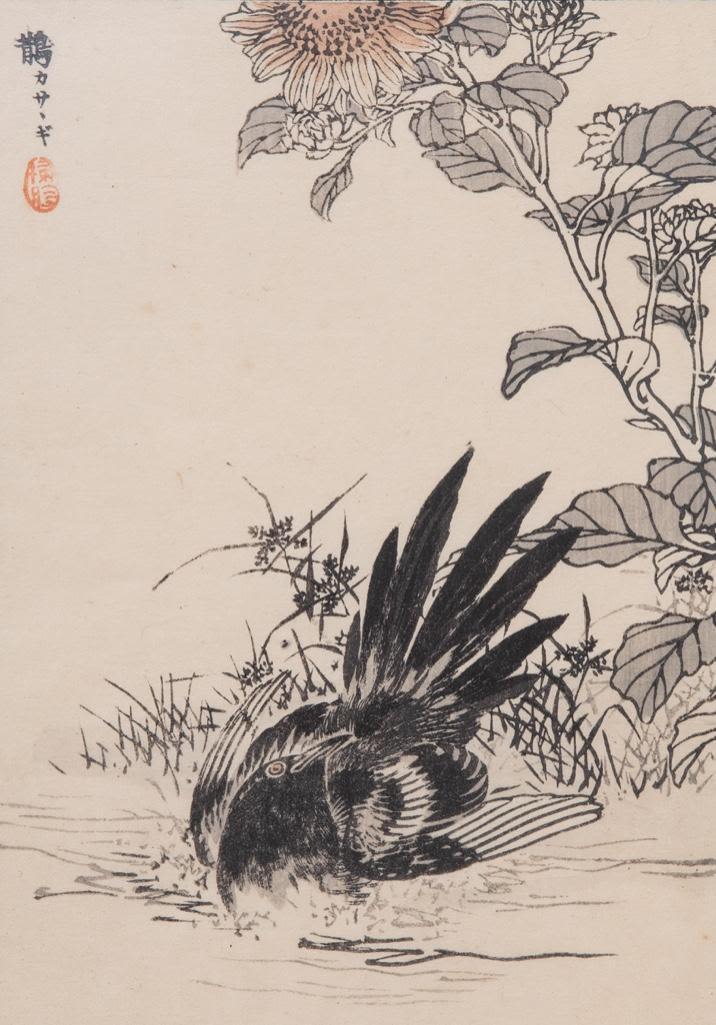 Kono Bairtei set of two woodblock prints image 8 1/4"h x 6"w and framed 16 1/2"h x 13 1/2"w circa 1883