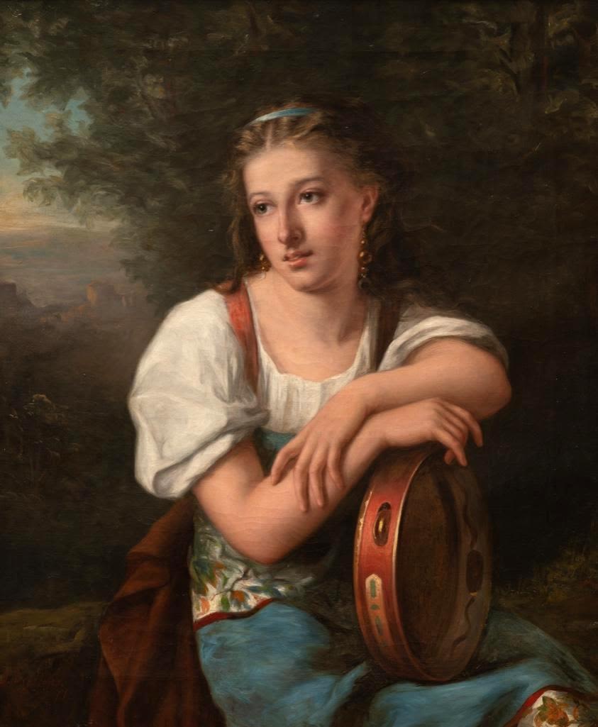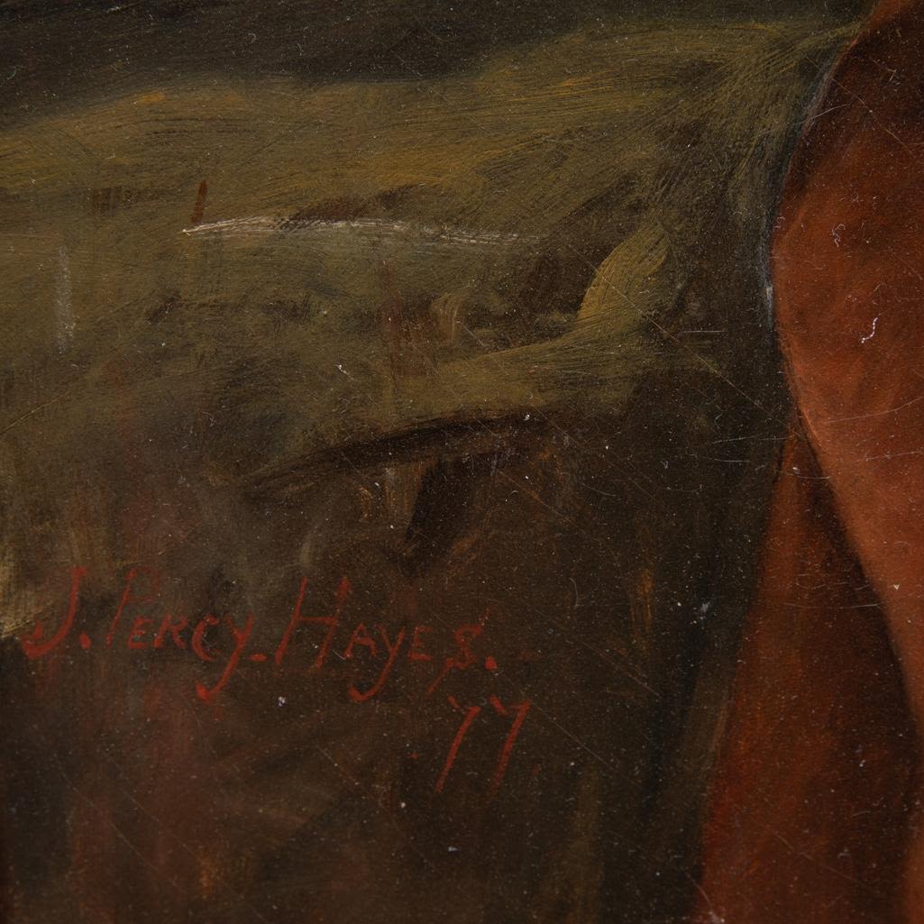 J. Percy Hayes Reverie, 1877 Oil painting on canvas Signed to lower left. 34.0" W x 39.0" H x 2.25" D Frame. 24.5" W x 29.5" H. Visible APPROX