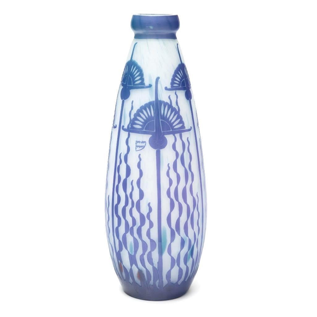 Daum Nancy Impressive tall egyptian revival Art Deco cameo glass vase, signed Daum Nancy depicting Egyptian Papyrus flowers. 22.5" high.