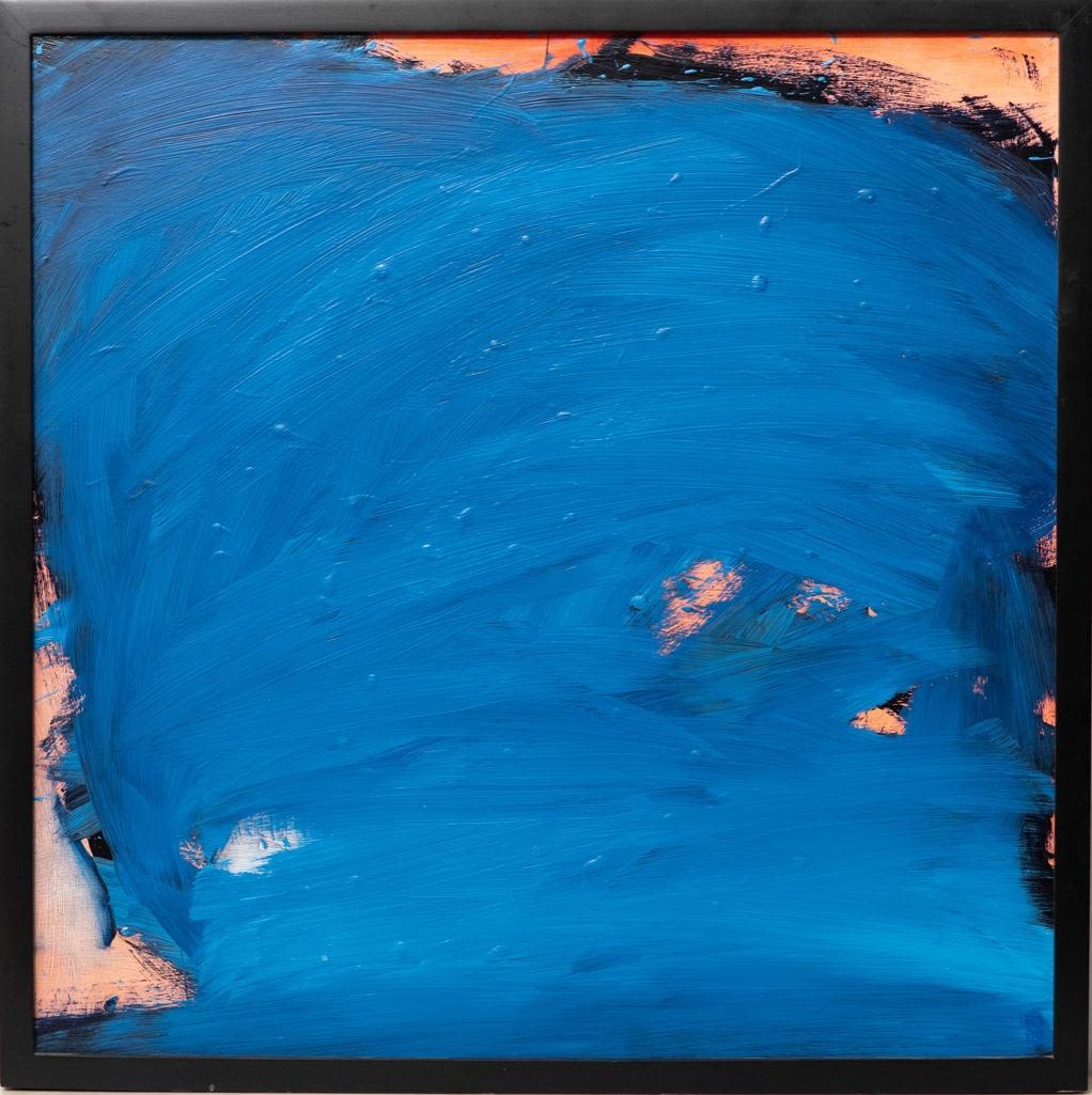 Sky Power abstract oil painting Ikage on panel, frame 25"h x 25"w image 24"h x 24"w Provincetown Art Association and Museum labeled on rear