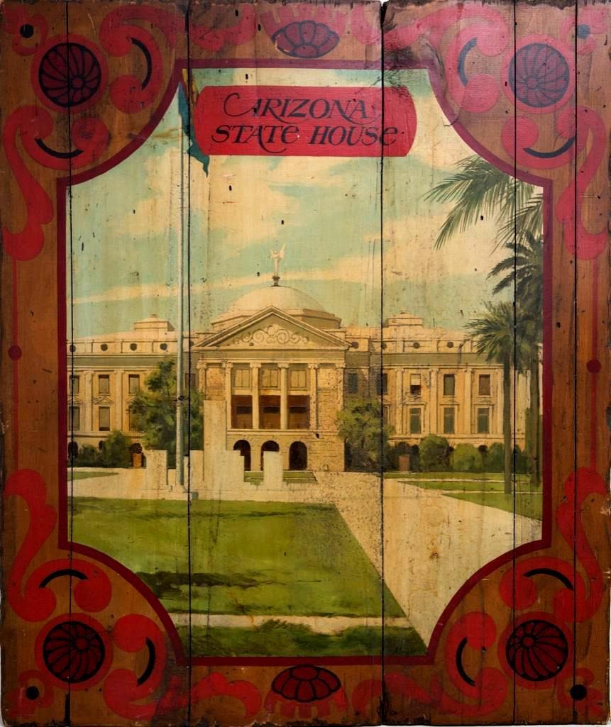 19th century hand painted sign for Arizona state house 42 x 35 wide