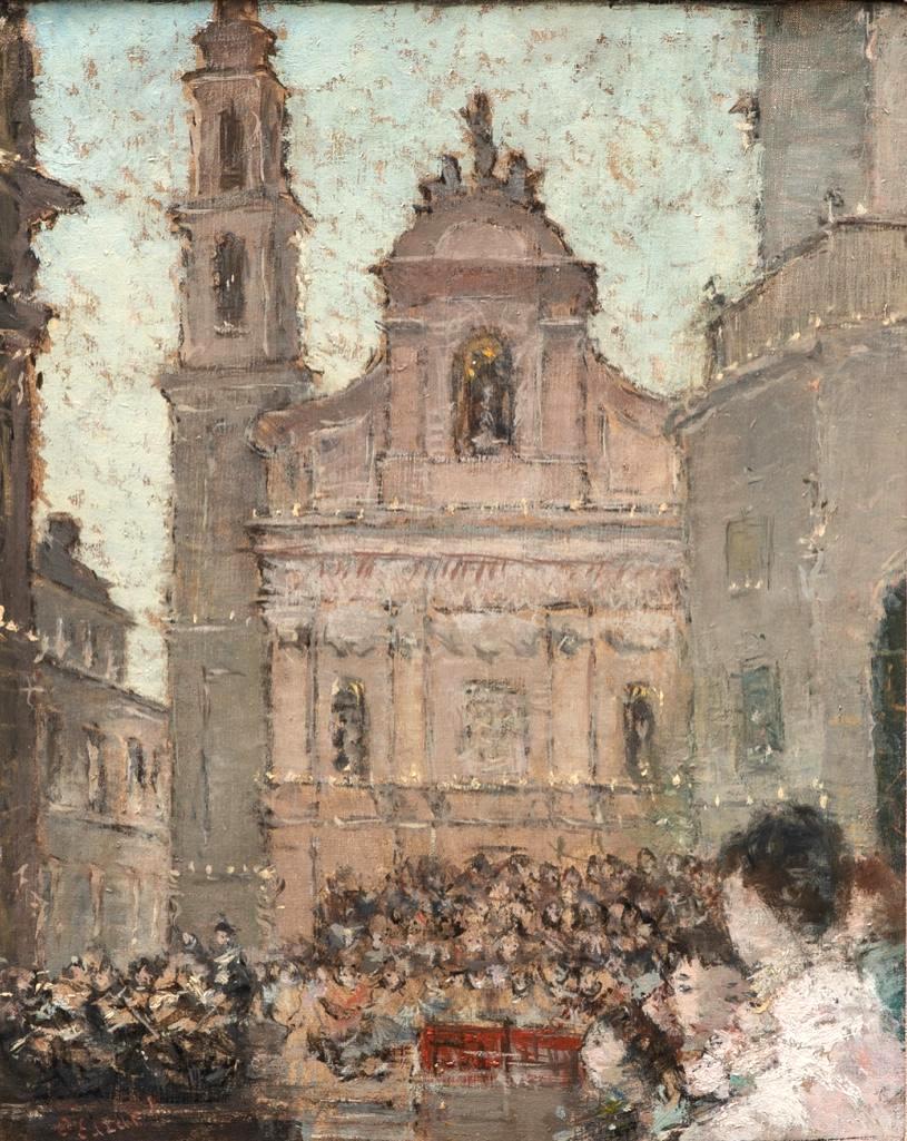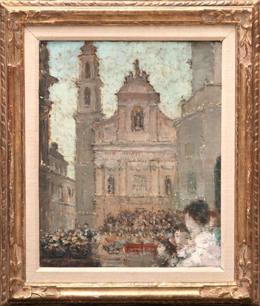 Dietz Edzard Munchinger Dirigiert in Menton (Festival St. Michel), circa 1961 Signed D Edzard (ll); signed Dietz Edzard and inscribed as titled on the stretcher Oil on canvas 16 1/8 x 13 inches. Provenance: Kunsthaus Buhler, Stuttgart Sale, Christie’s, Amsterdam, Dec. 2, 2008, lot 110 C The Estate of Leon Amar, Palm Beach