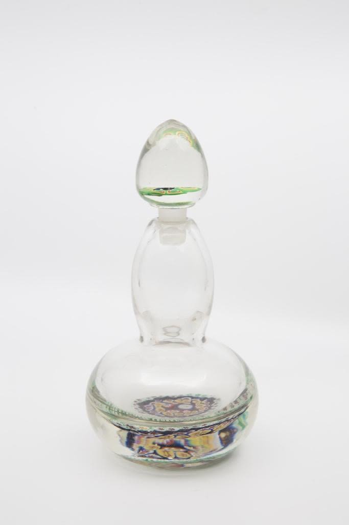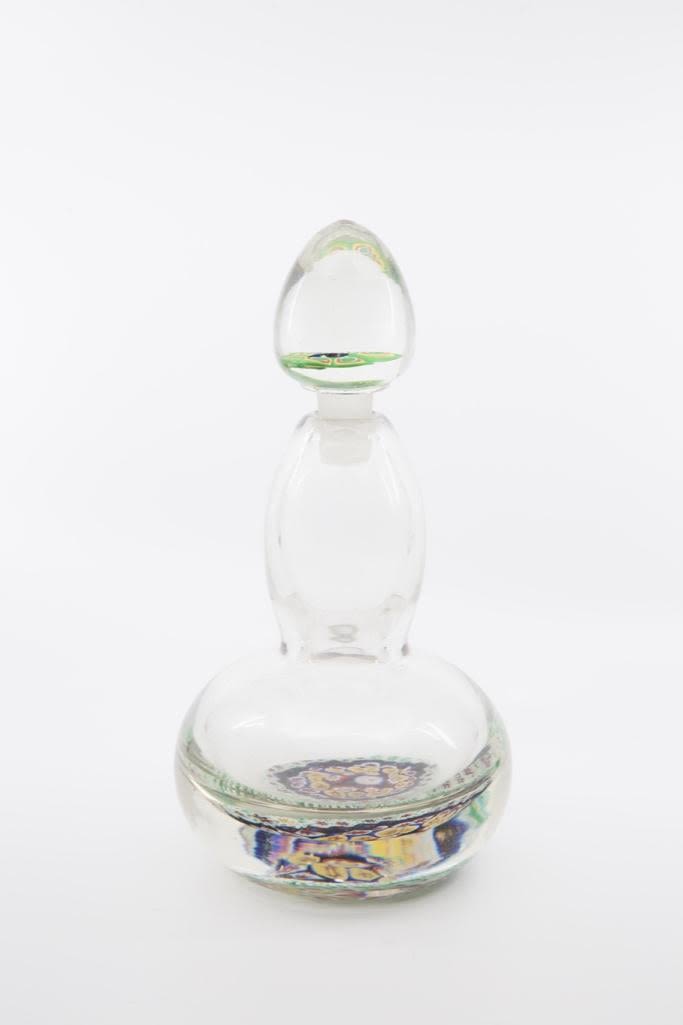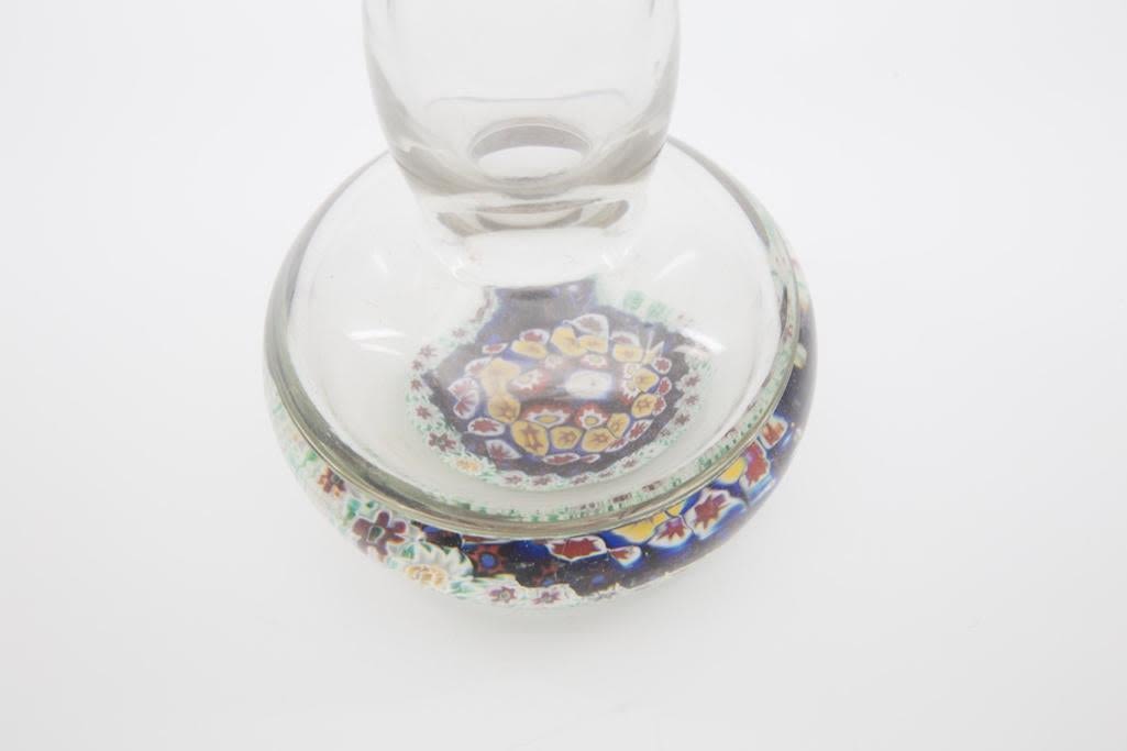 Clichy (attr) antique paperweight decanter with millifiore in base and stopper 11" approx