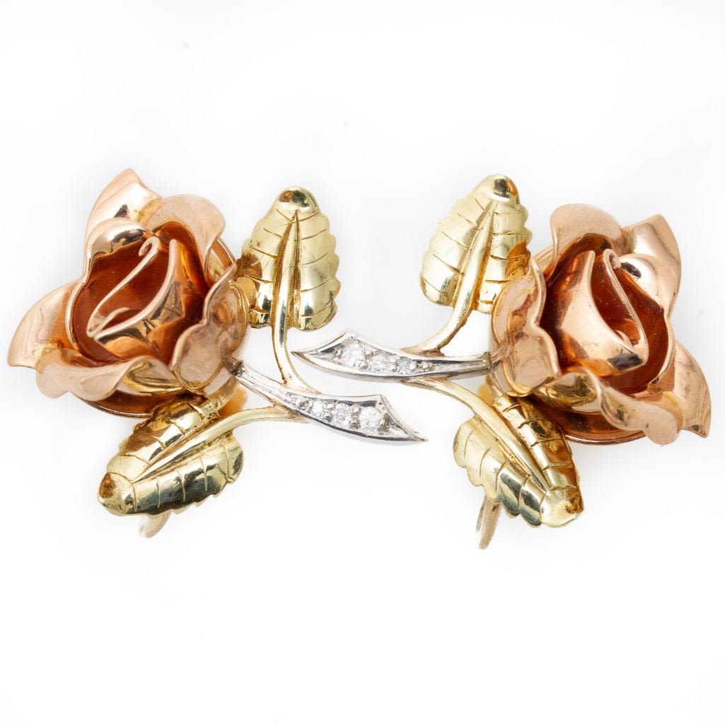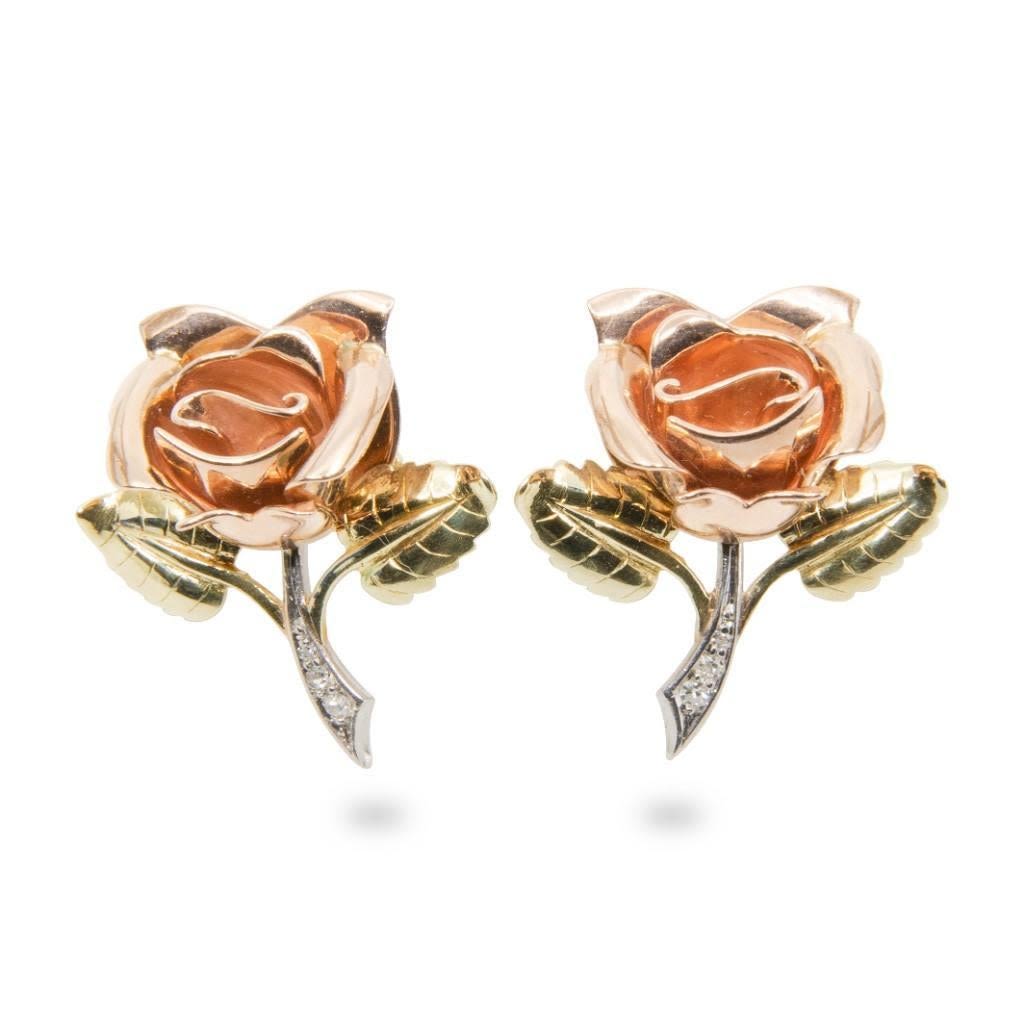 Tiffany & Co Circa 1940’s 14K Yellow, White and Rose Gold Diamond Earrings 7.10 dwt. This lot is accompanied by a GIA appraiser letter from an independent and well respected firm established over 75 years ago.