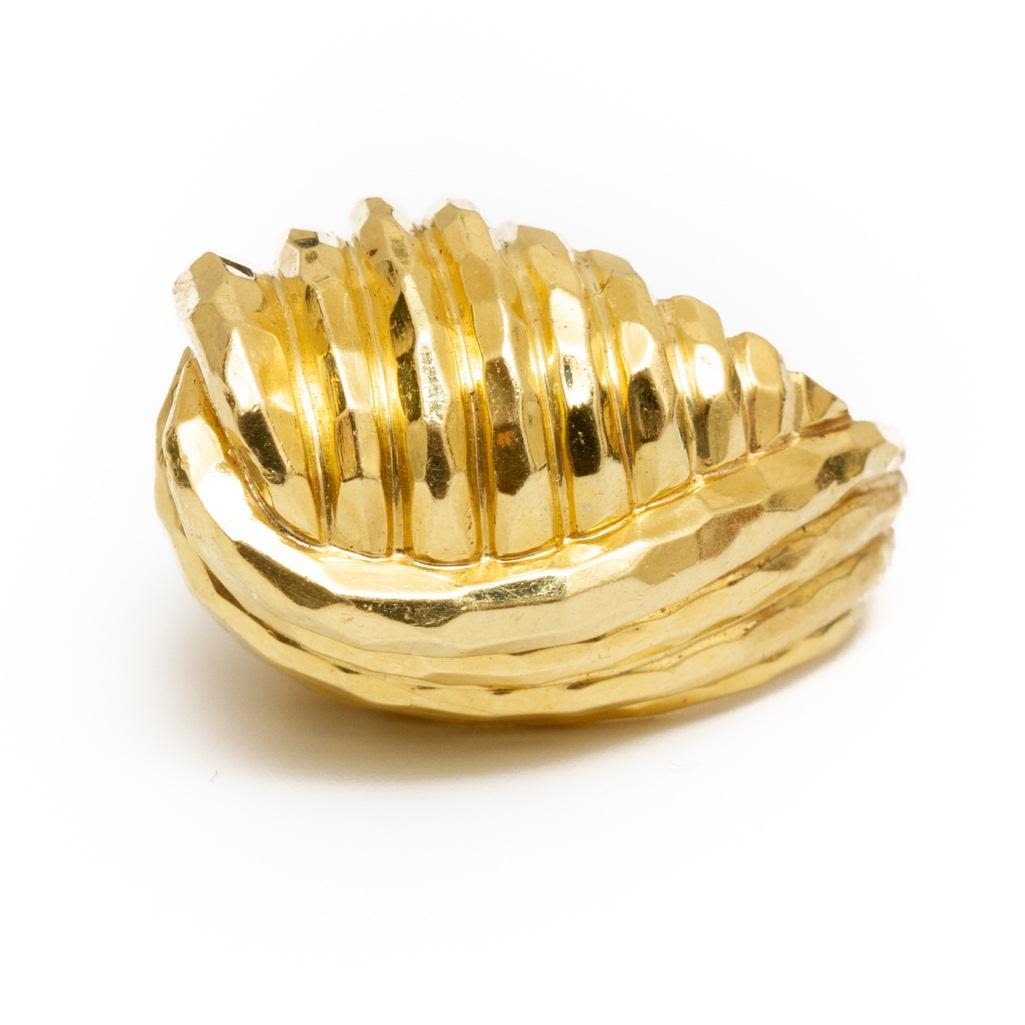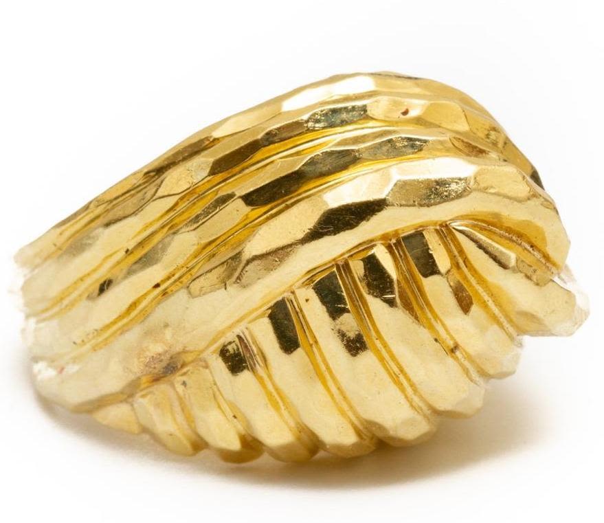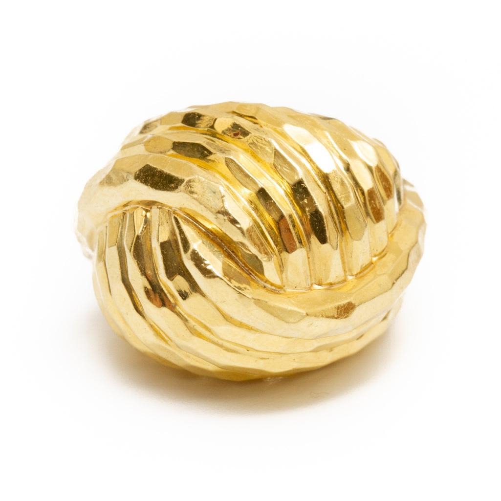 18k gold Henry Dunay signed hammered finish dome ring size 5.75 approx weight approx. 9.6 dwt From the Broussard estate noted jewelry collection Park Avenue New York