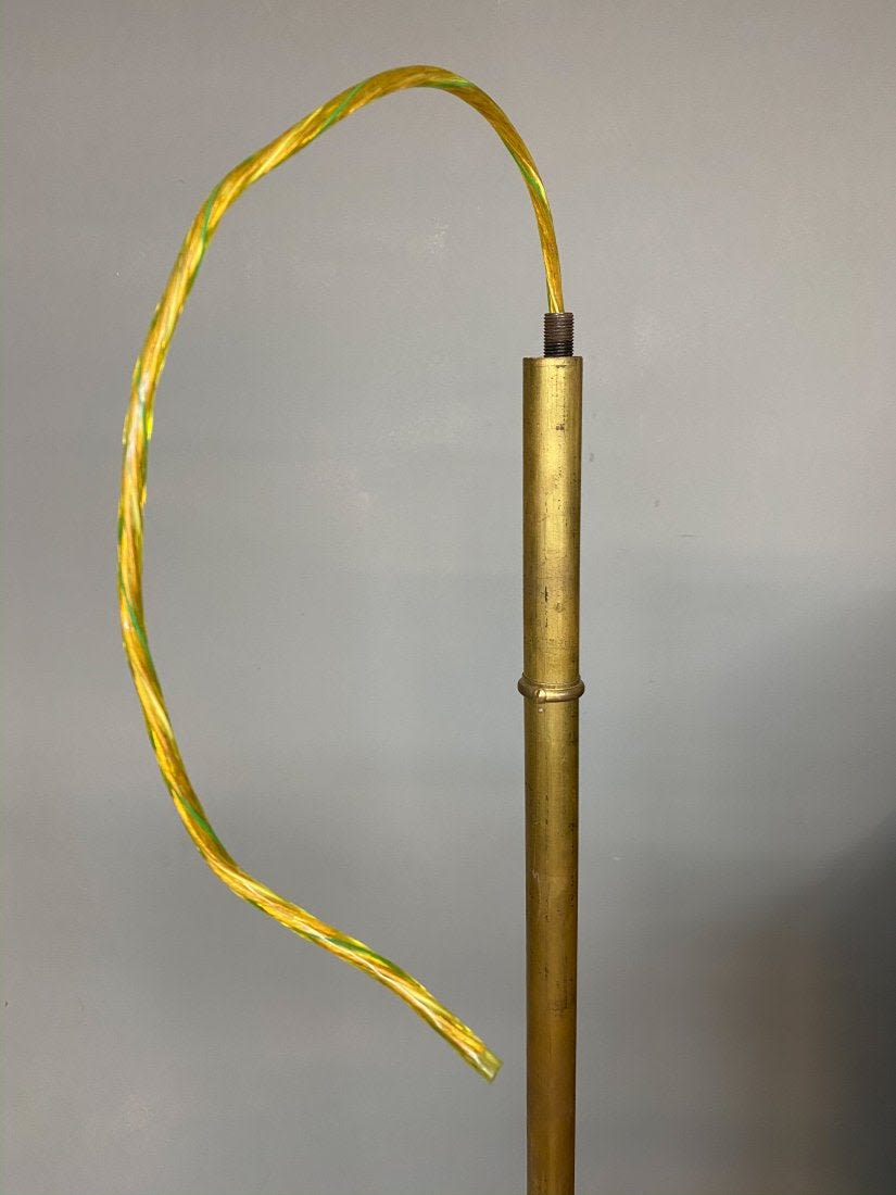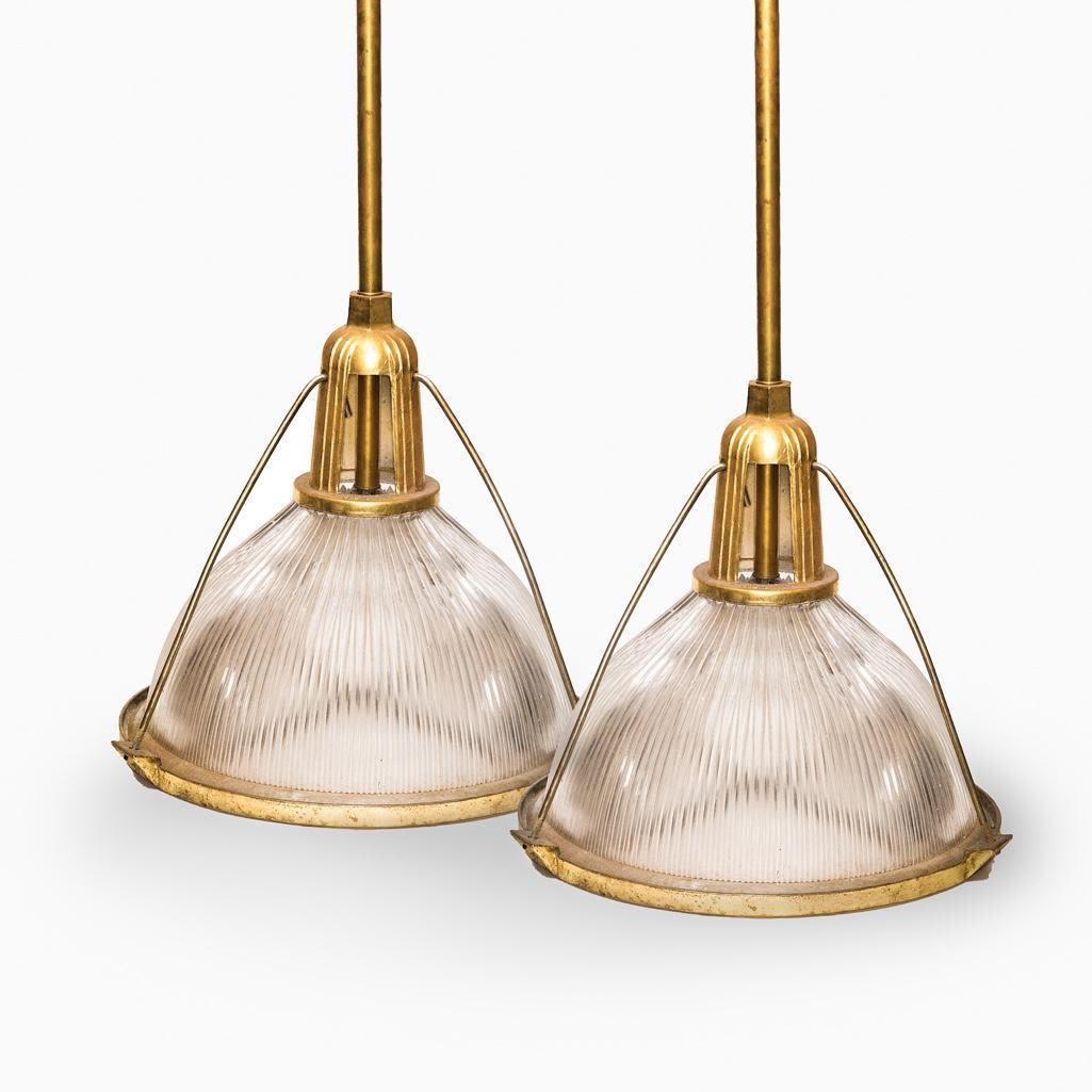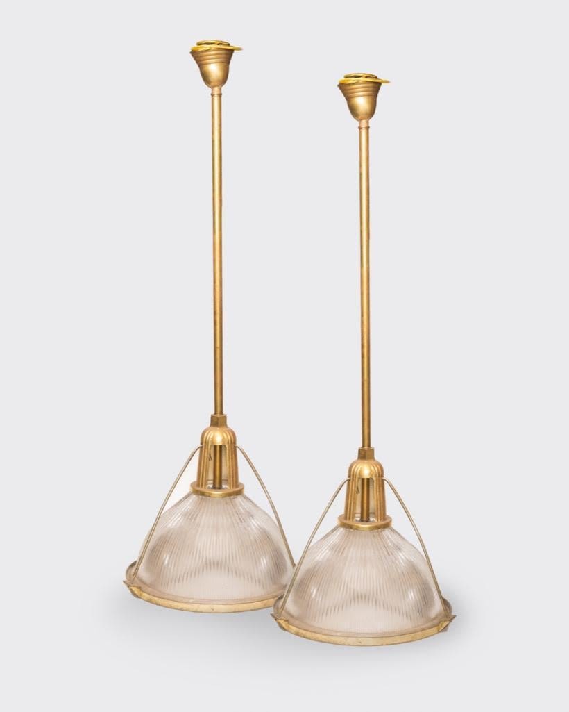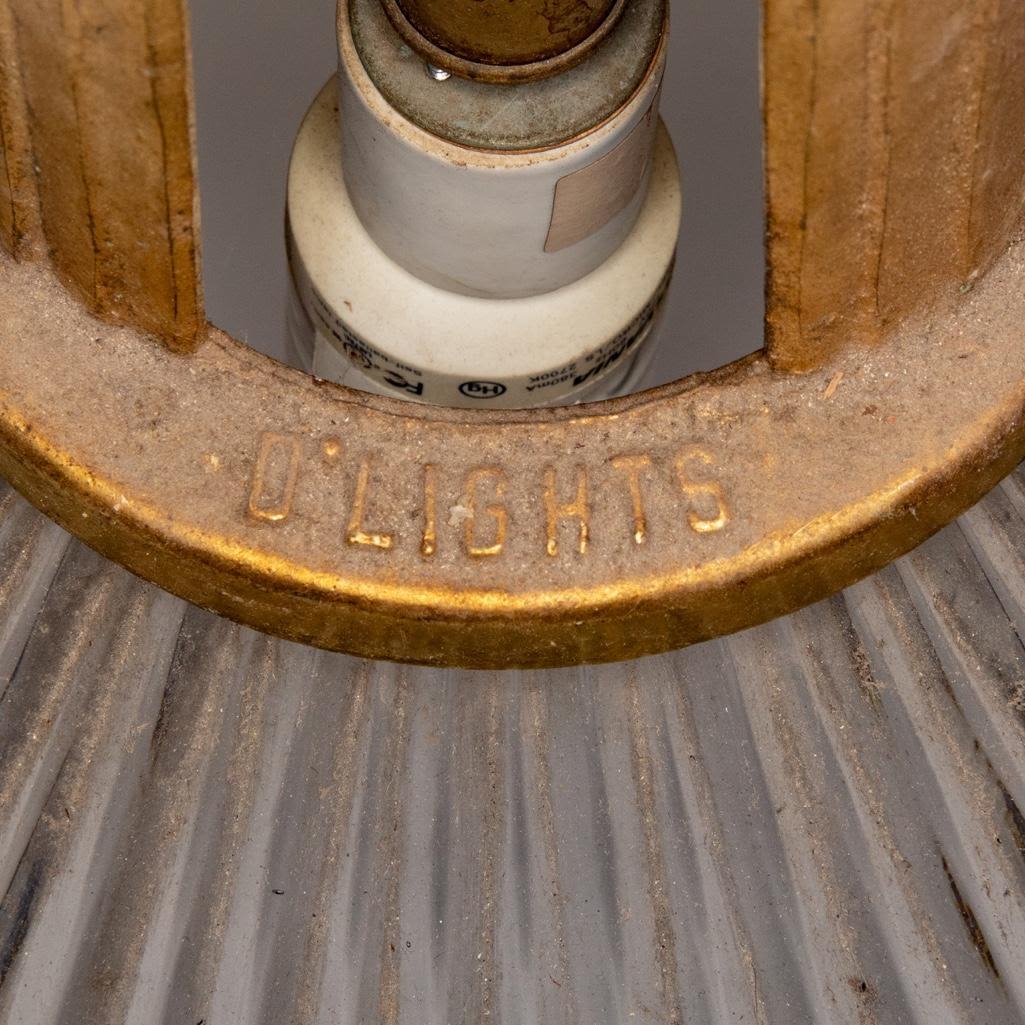 Pair of Large Vintage Hanging Light Fixtures. O’ Lights Marked in Rim. 57"H x 19.5"D. Missing Junction Box on one light. Wiring has not been tested.
