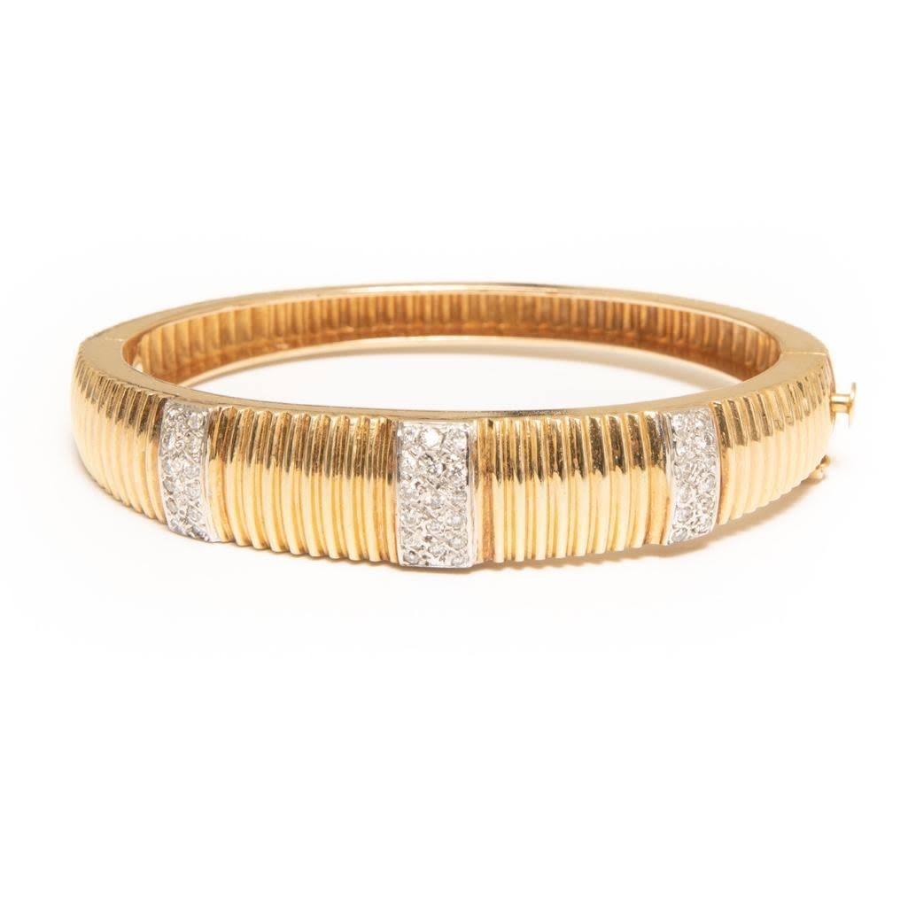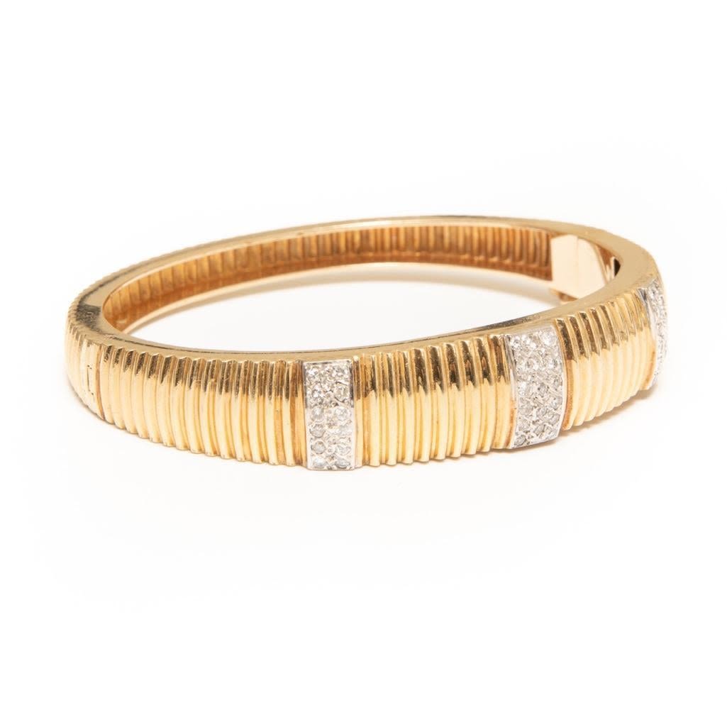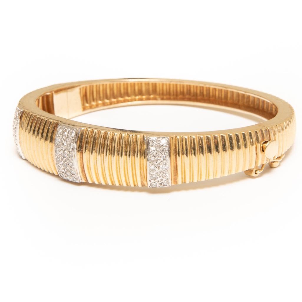 14K and Diamond Bangle hinged Bracelet with approx 40 diamonds