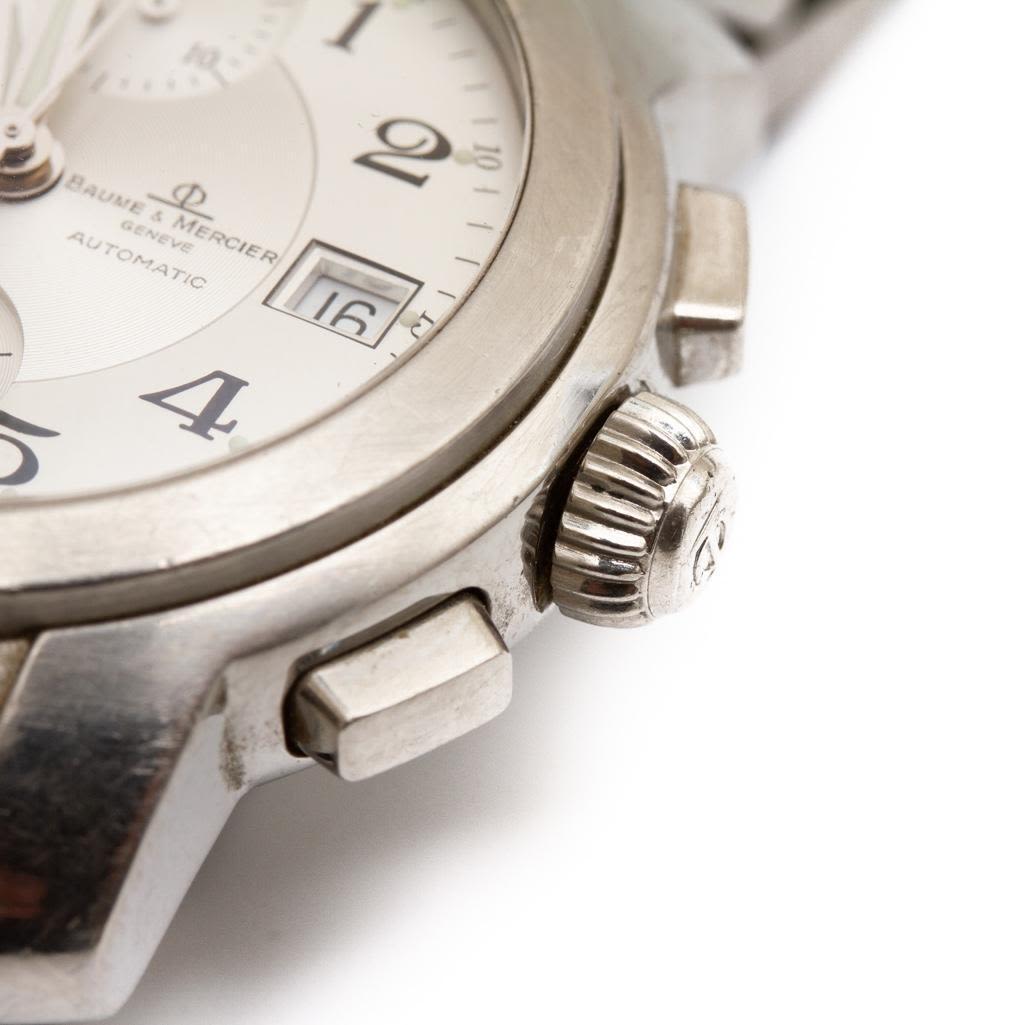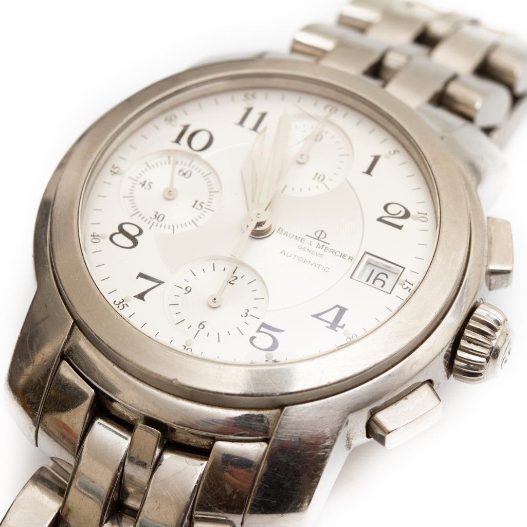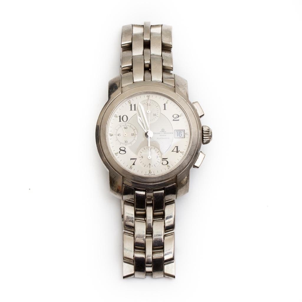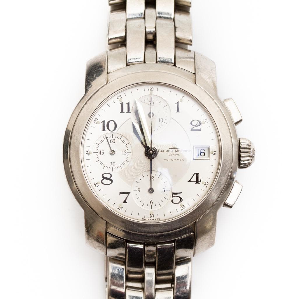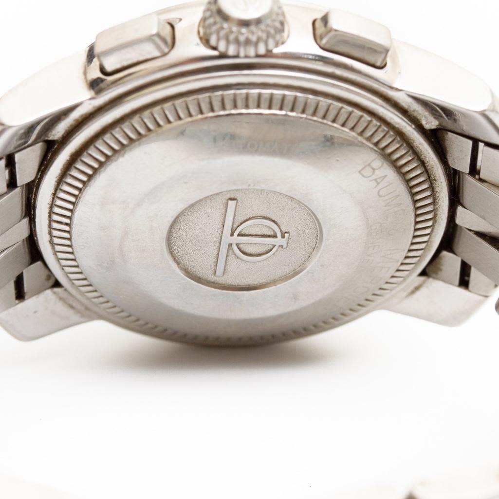 Baume Mercier Mens vintage capeland chronograph watch circa 1990. Watch face measure 1.5" Please note the gallery does not warranty the running condition of watches. Probably needs servicing.