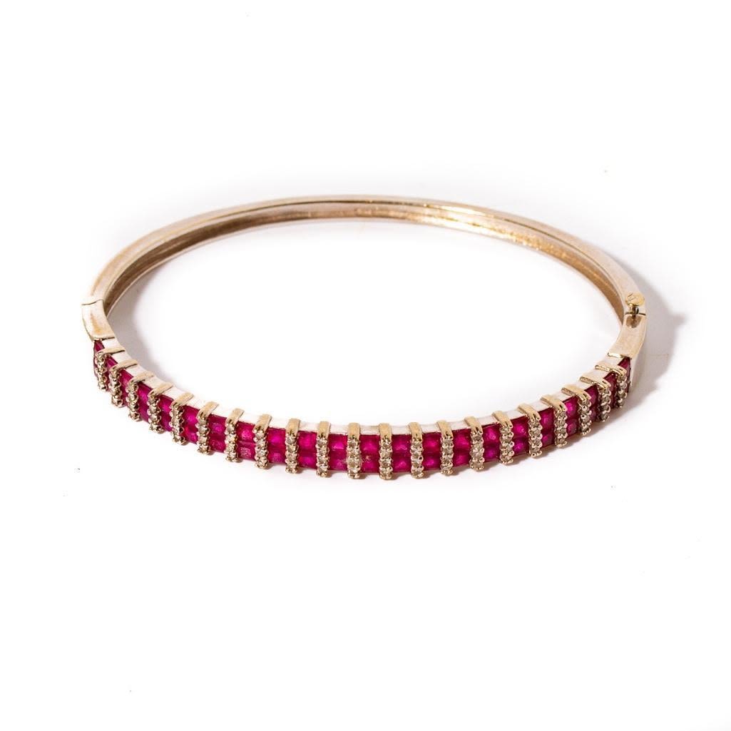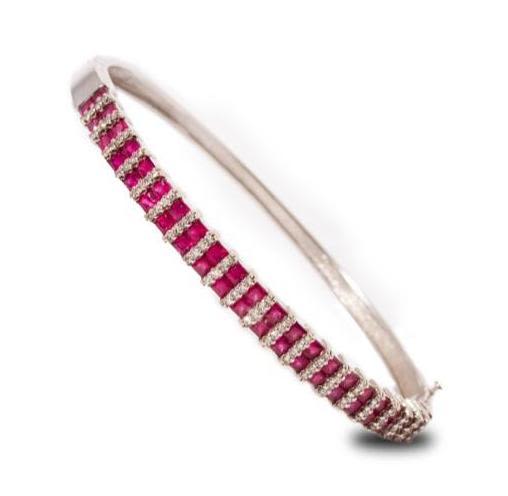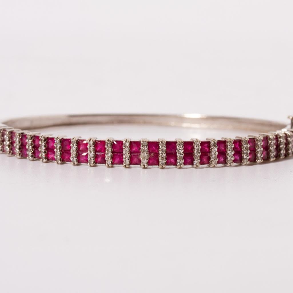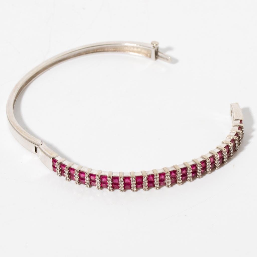 14K White Gold Diamond & Ruby Bangle Bracelet