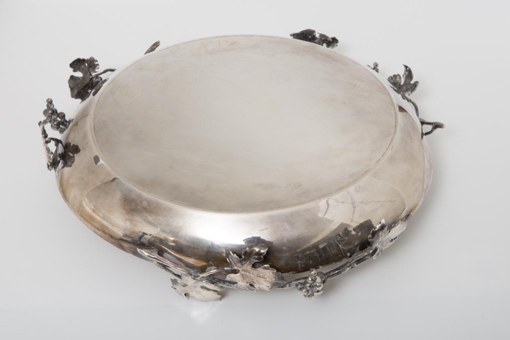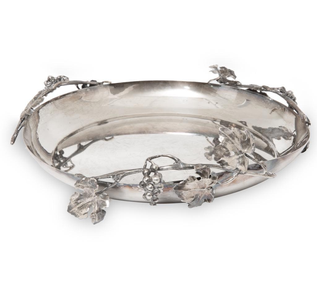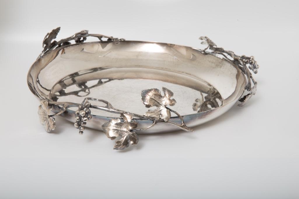 Enzo Cerfagli silversmith signed sterling silver ornate shallow bowl, completely handmade by master silversmith Cerfagli , Florence.Italy 31 OUNCES 12 in diameter