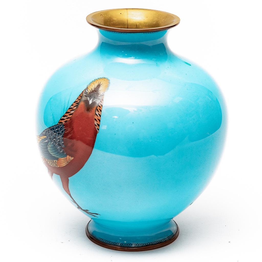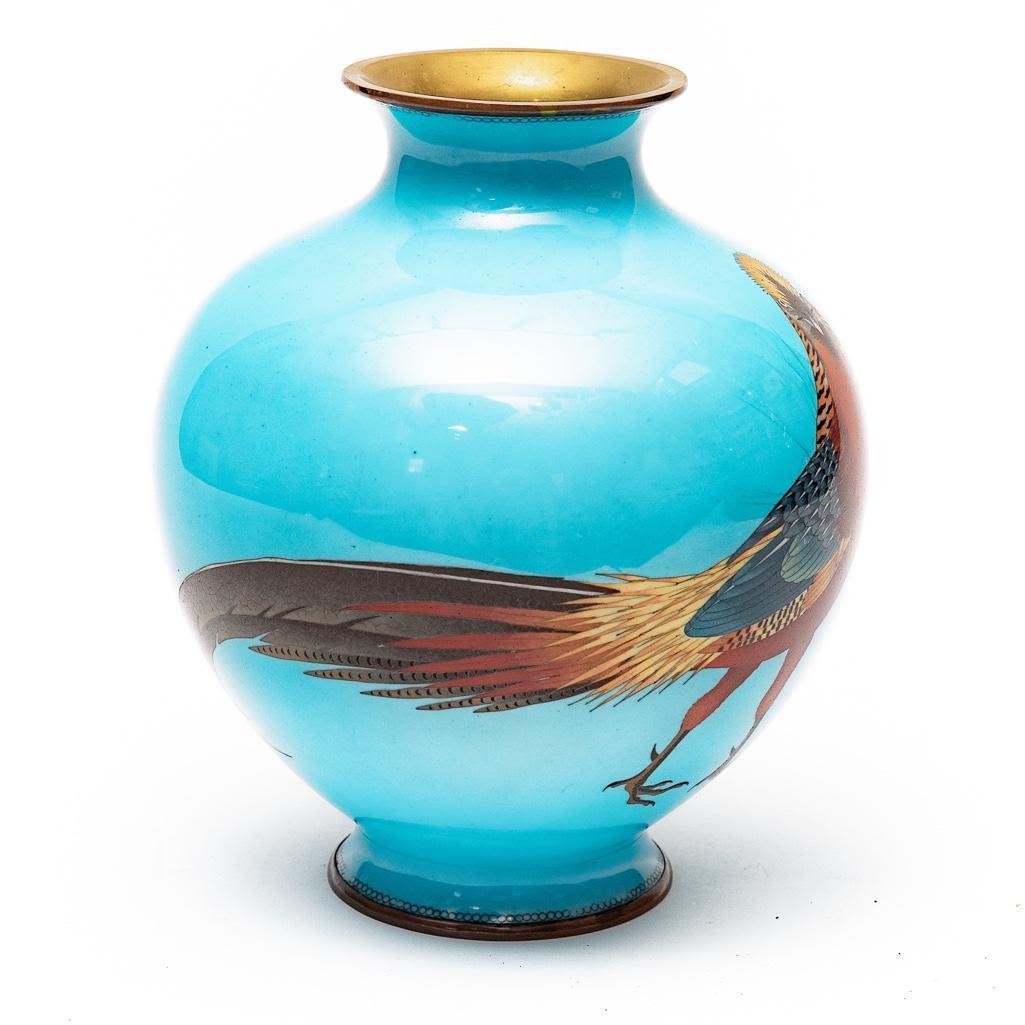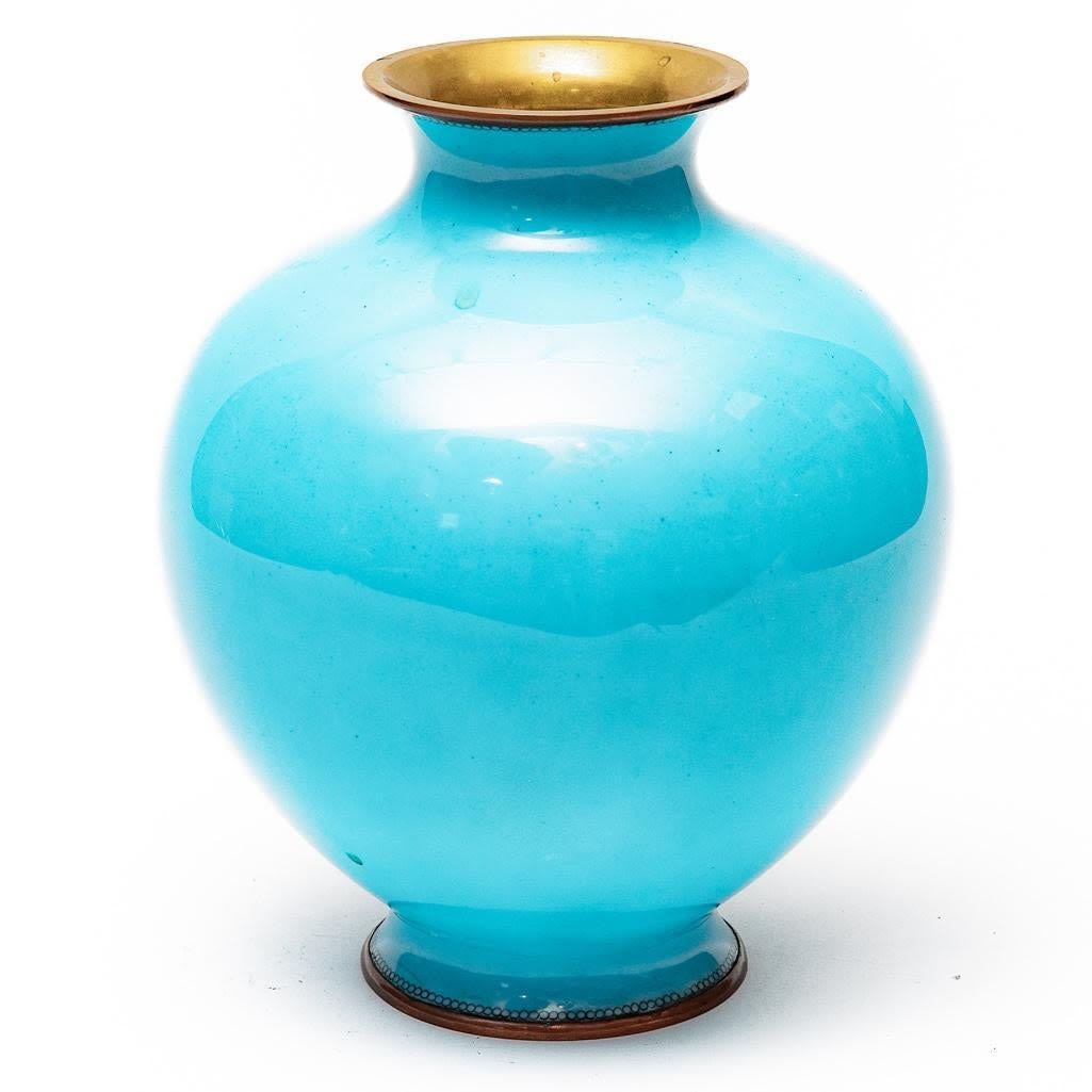 Exceptional fine Asian antique signed cloisonne vase. Measures 9.5"H x 8"D approx