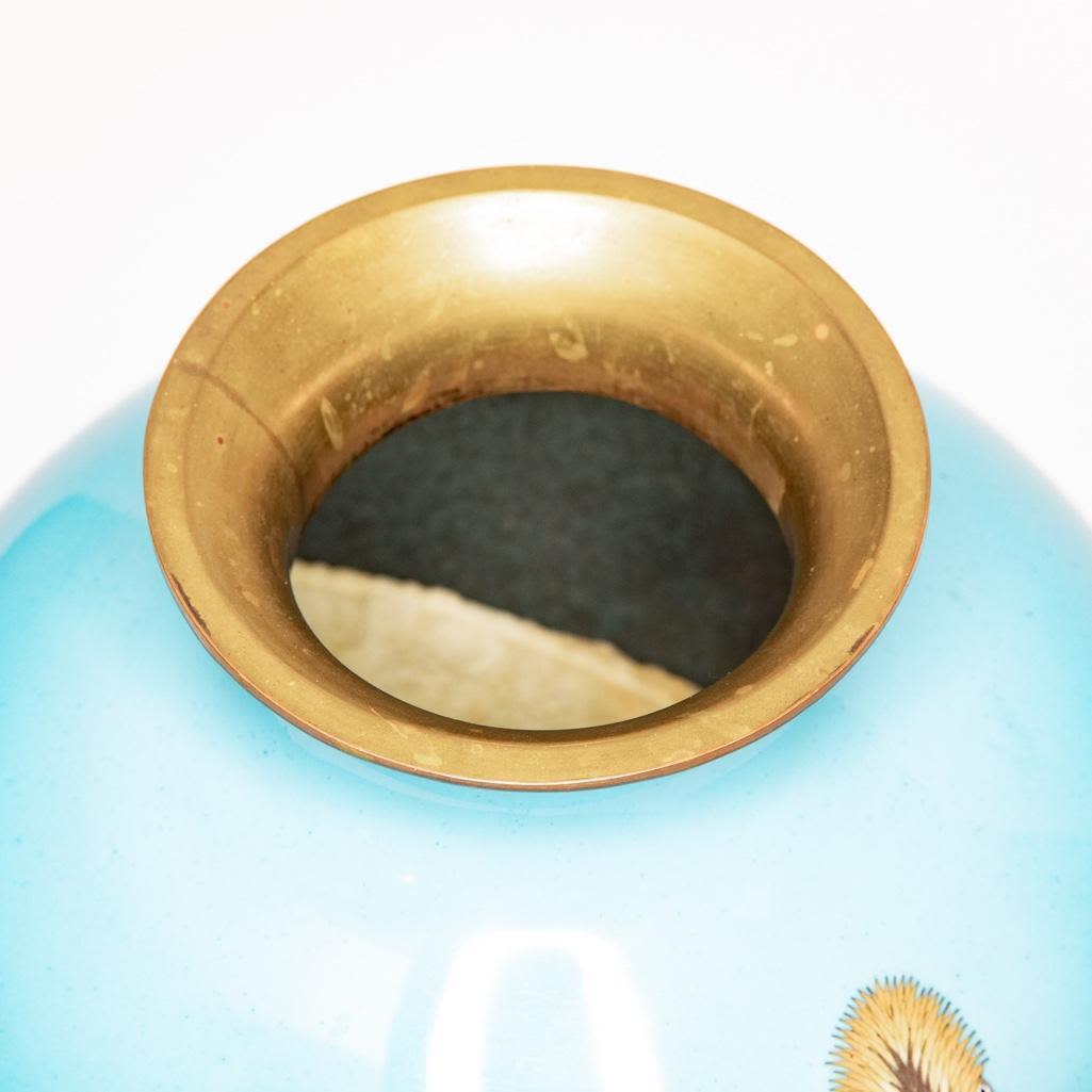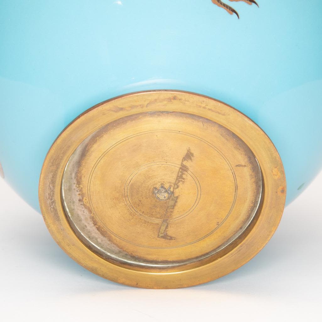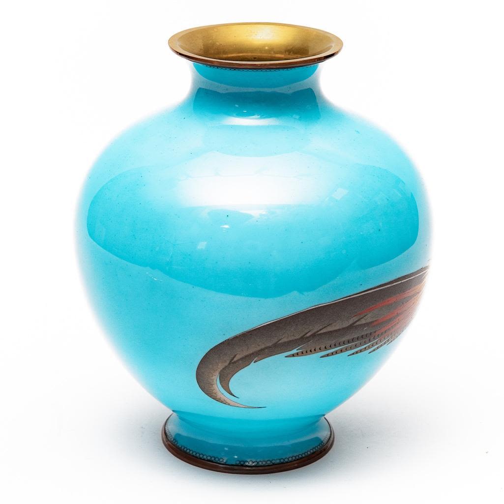 Exceptional fine Asian antique signed cloisonne vase. Measures 9.5"H x 8"D approx