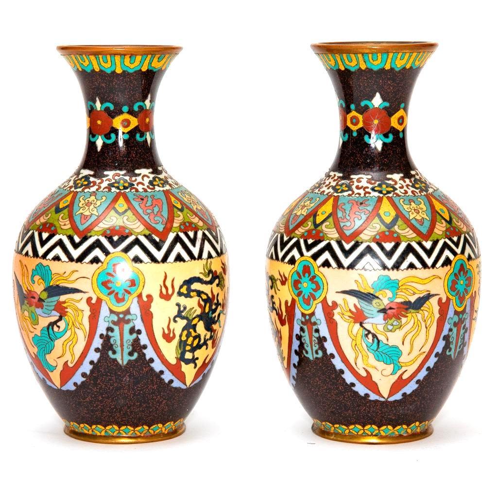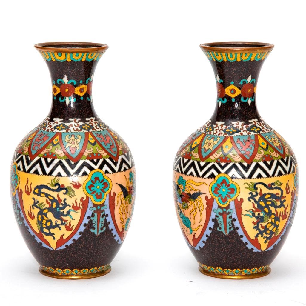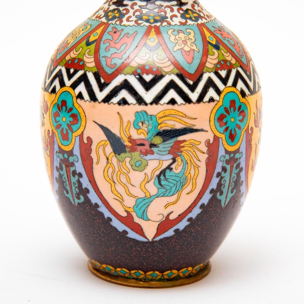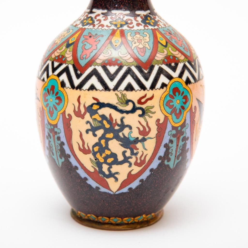 Asian pair cloisonne small vases. Each measures 7"H x 4"D Approx