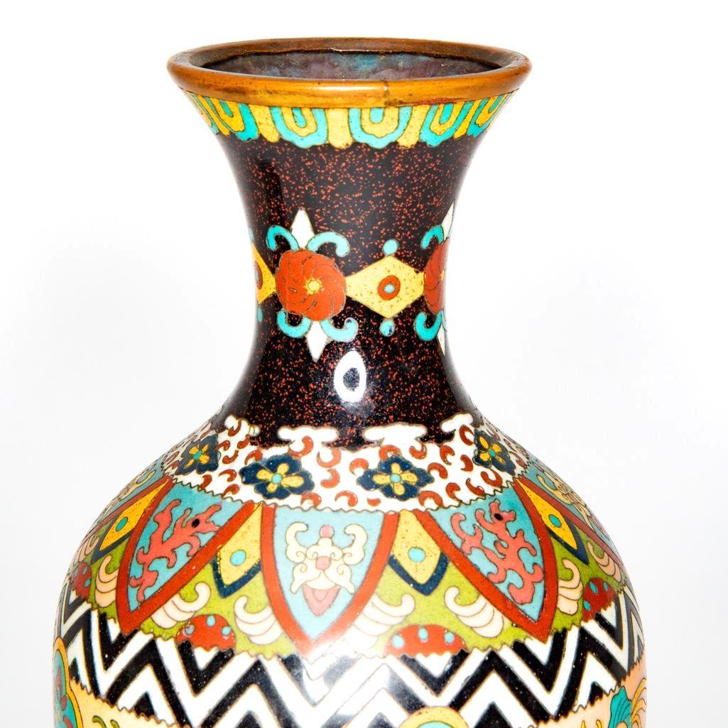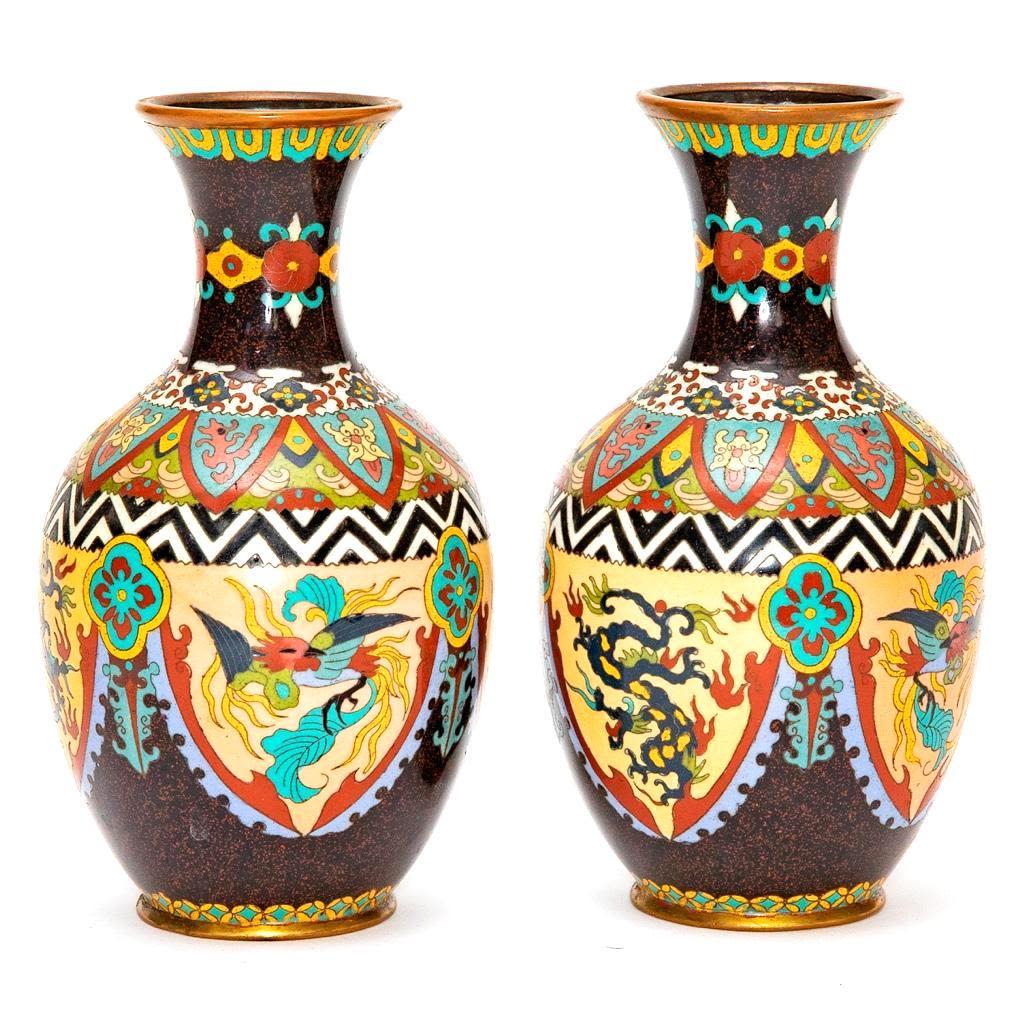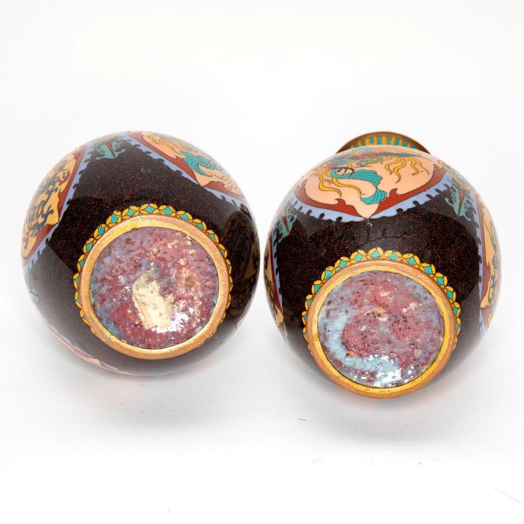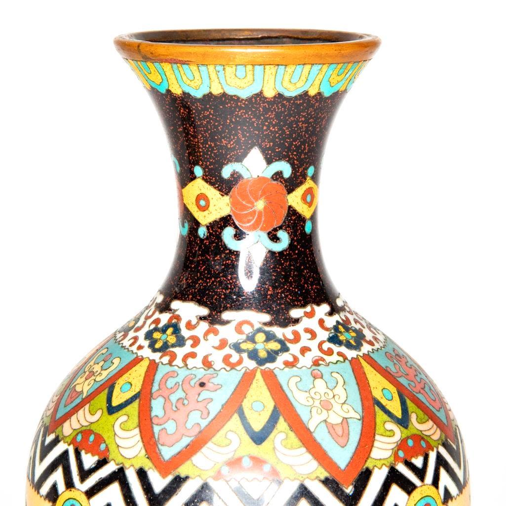 Asian pair cloisonne small vases. Each measures 7"H x 4"D Approx