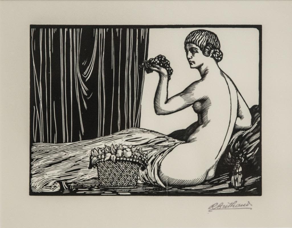 Rene buthaud signed woodblock print, "L’Odalisque" , provenance: The artist, Michel Fortin, Paris: Collection of Stephen Engel, Florida: Literature: Cruège, René Buthaud 1886 – 1986, 1996,