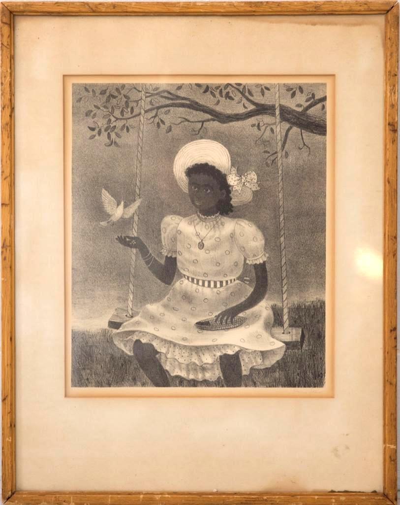 Doris Lee 1952 lithographic print, titled "Dove. The work is signed in pencil, Doris Emerick Lee. In addition to the Art Institute of Chicago, the Rhode Island School of Design, and The Metropolitan Museum of Art, Lee’s work can be found in many public collections, including the Whitney Museum of American Art, Phillips Collection, Washington, DC, Cleveland Museum of Art, Pennsylvania Academy of the Fine Arts, National Museum of Women in the Arts, and the Greenville County Museum of Art, Greenville, SC.The work measures 18.75"H x 14.75"W, 11"H x 9.5"W