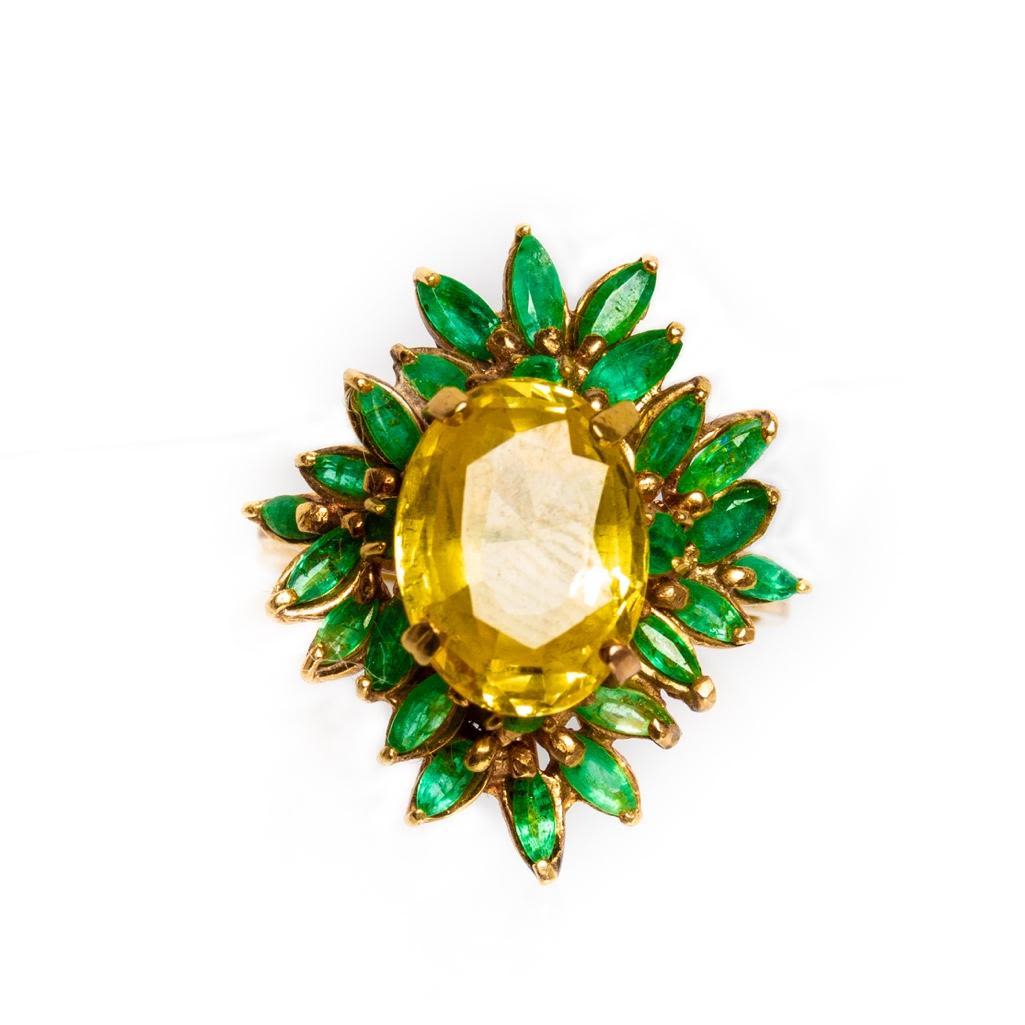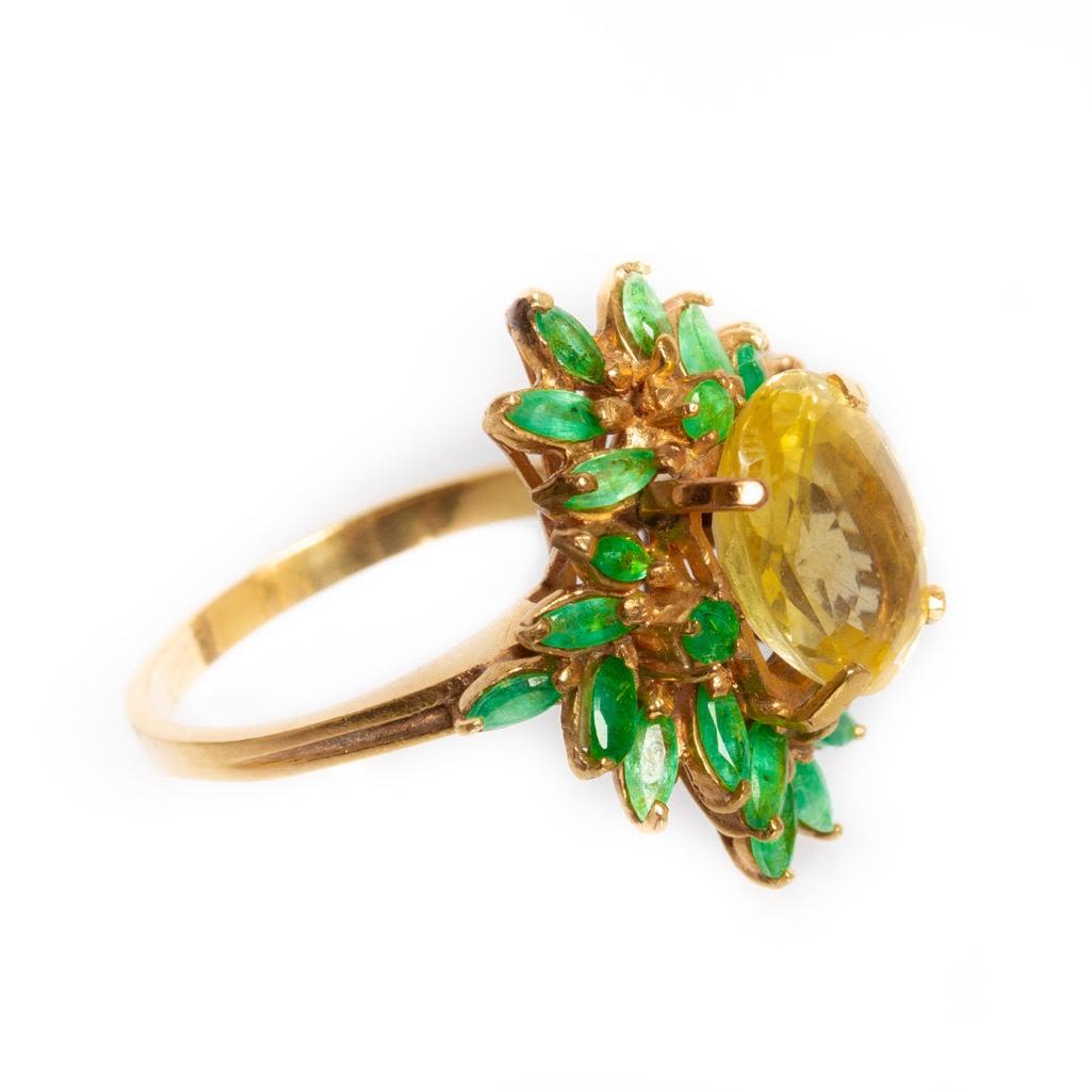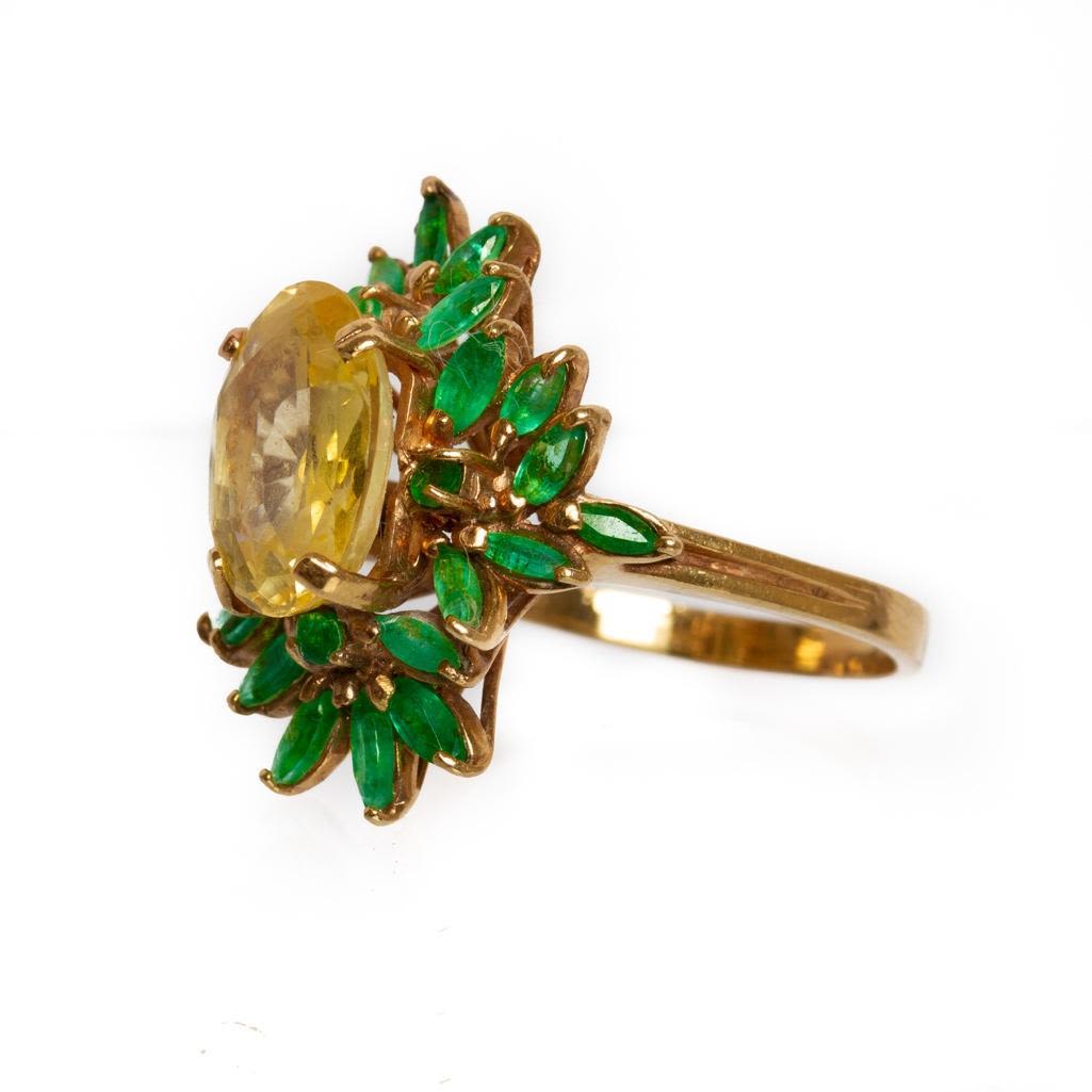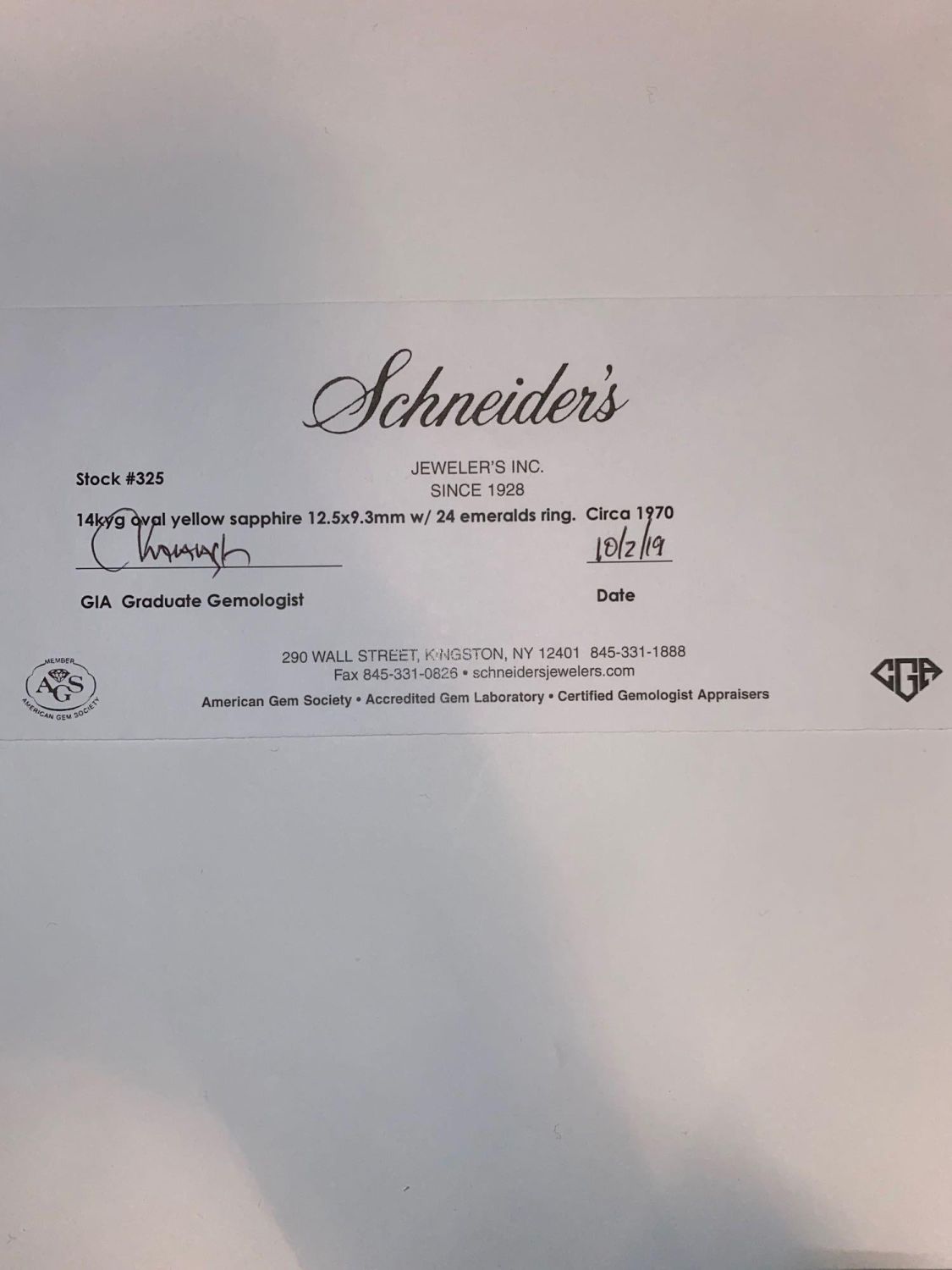 GIA 4.23ct yellow sapphire and emerald ring s8 5dwt maker marking. This lot is accompanied by a GIA appraiser letter from an independent and well respected firm established over 75 years ago