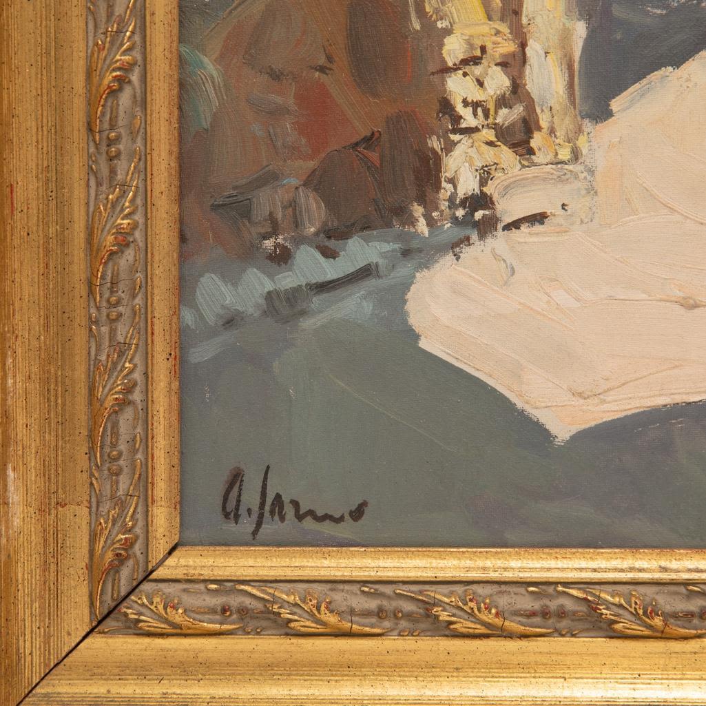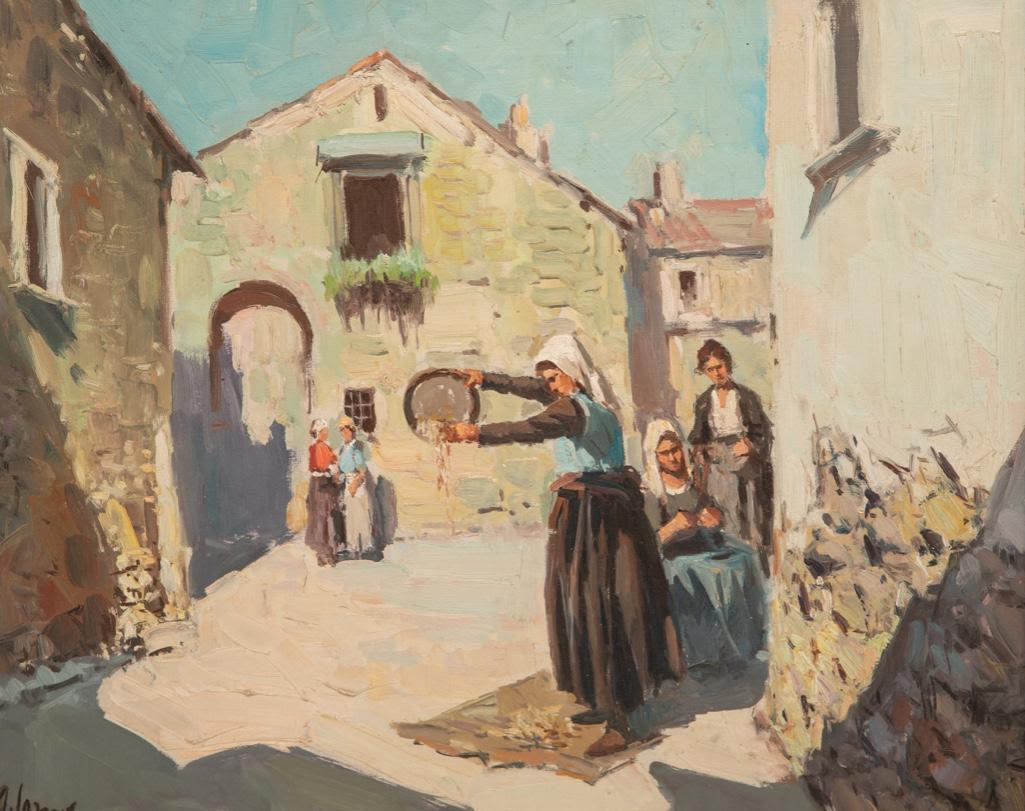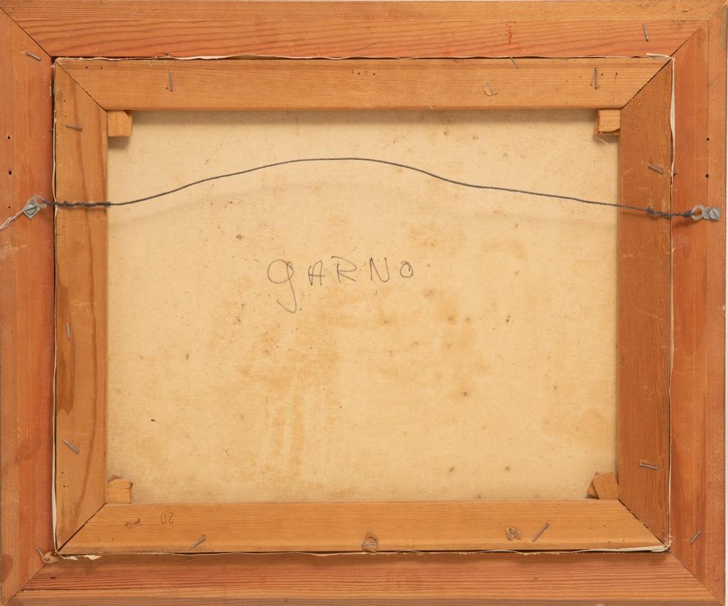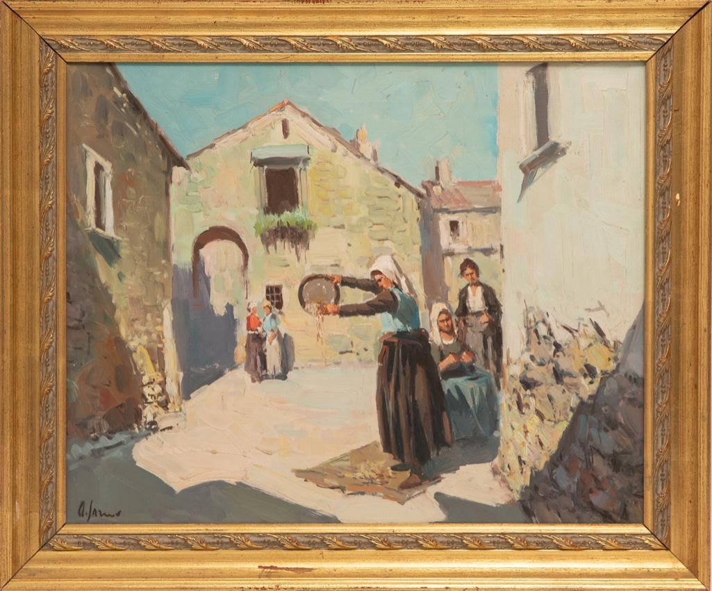 Framed Oil on canvas of village scene in Garno. Signed illeg. 20" x 24"