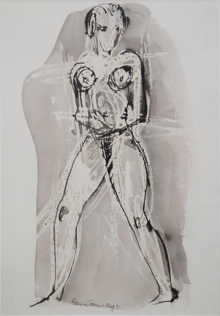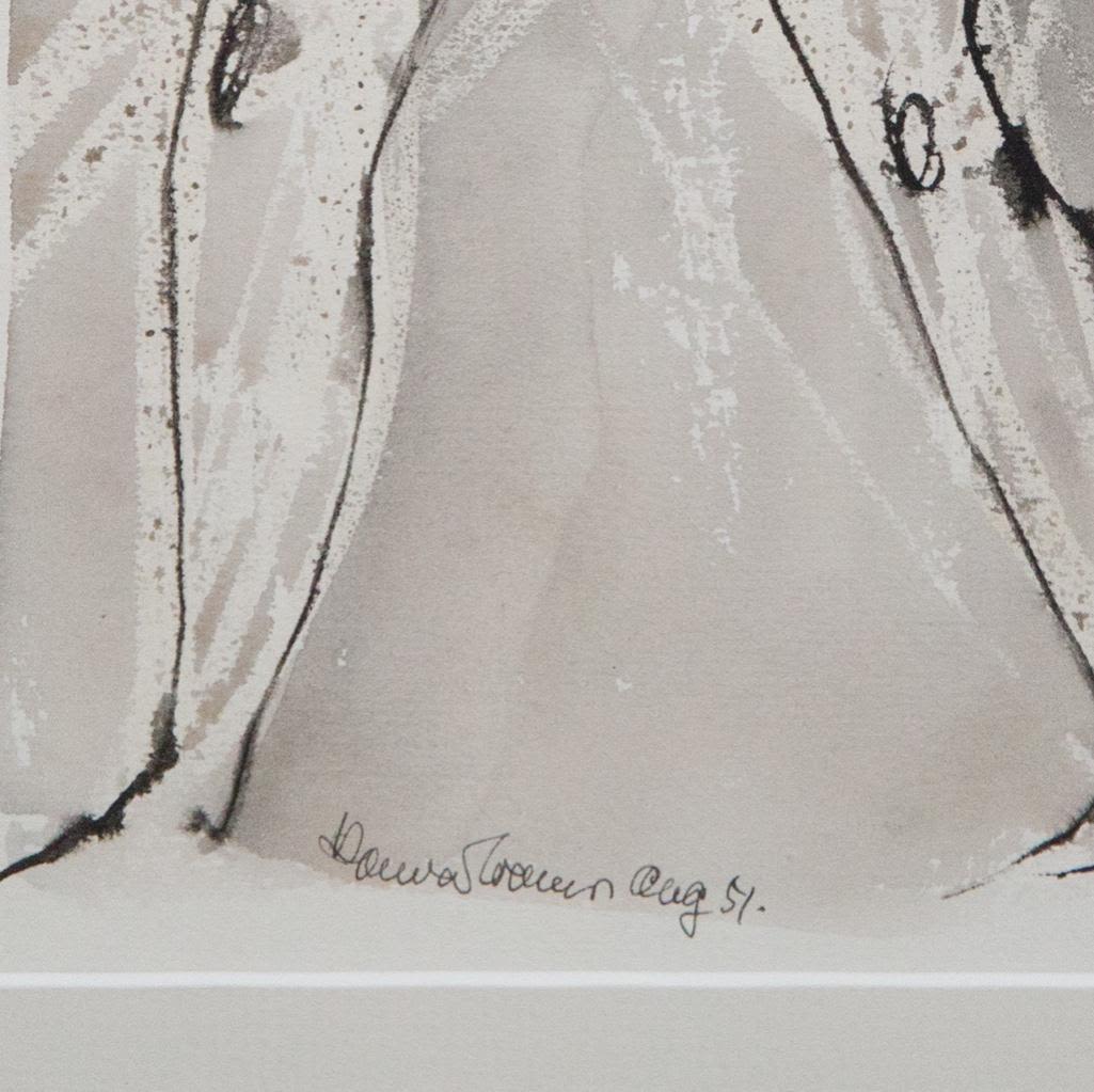 Konrad Cramer mid century watercolor on paper Standing Nude 1951 13" x 15.5"