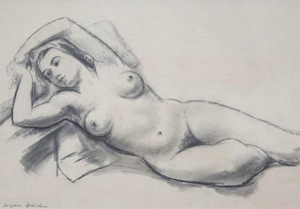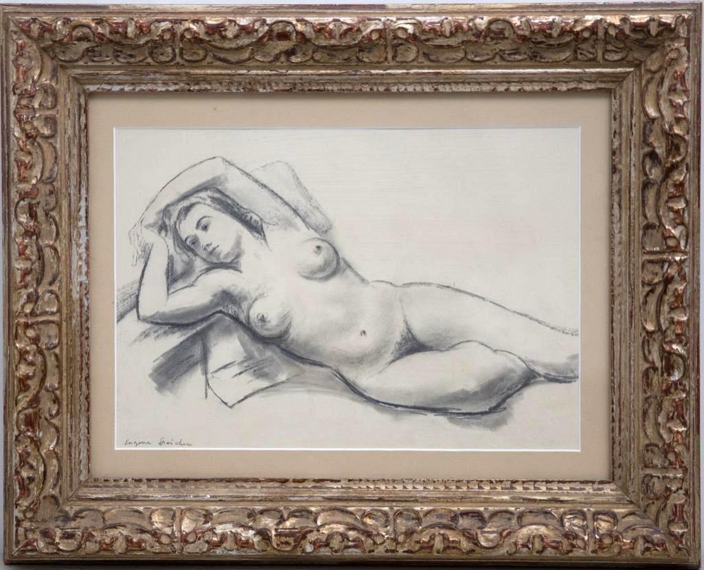 Eugene Speicher mid century crayon and pencil drawing of recling nude circa 1950’s approx 20.5" x 17"