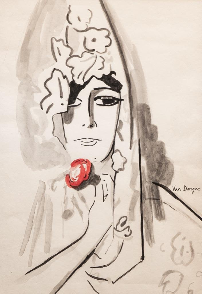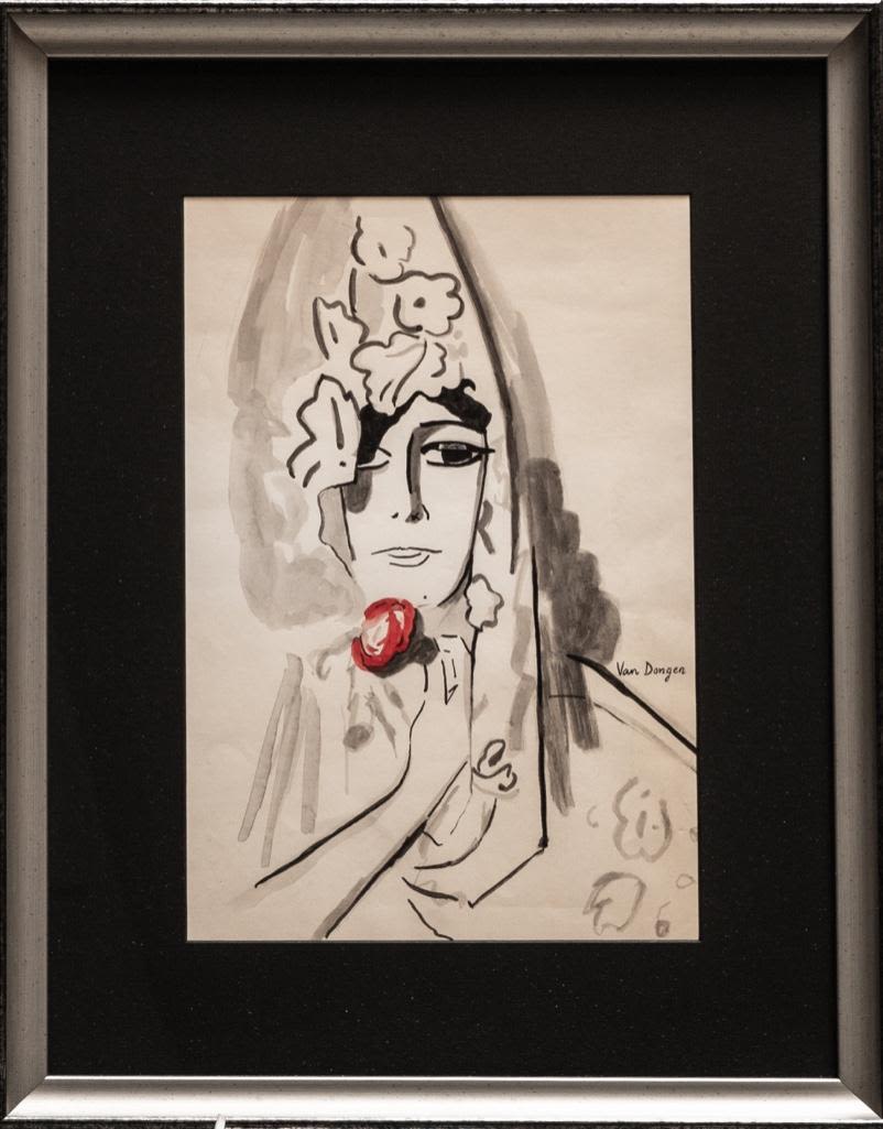 "Kees Van Dongen" The Rose, watercolor on paper, signed lower right, label label on verso, 16.5"h x 14"w (sheet) – PROVENANCE: Gruenebaum Gallery Ltd., New York