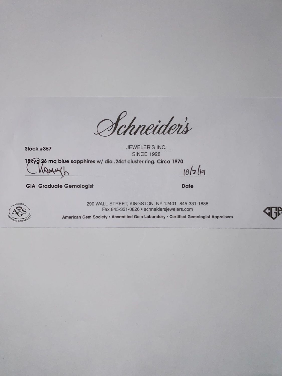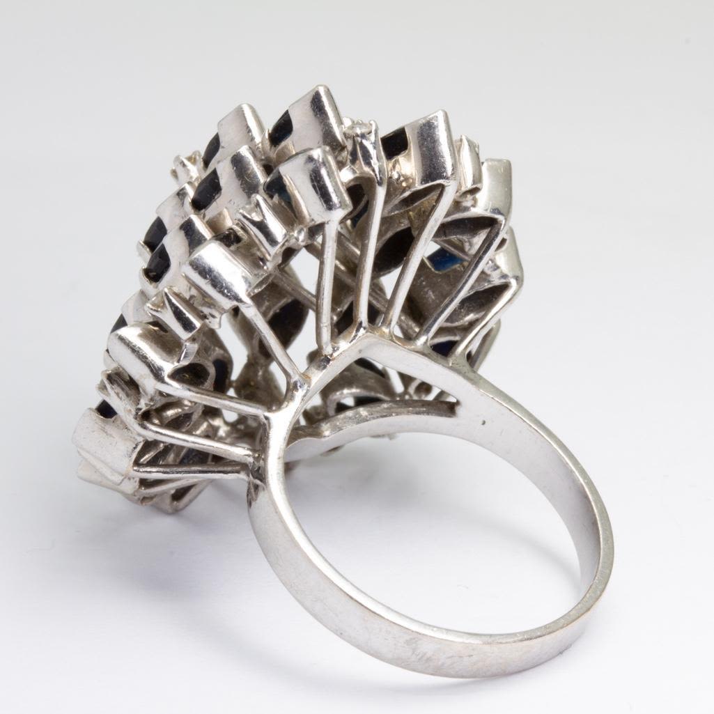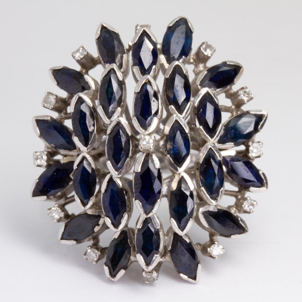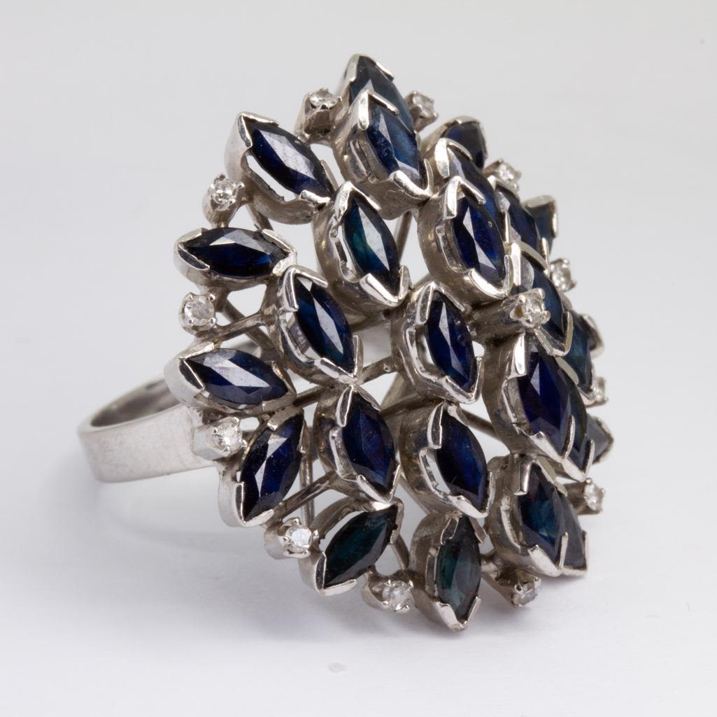 18k white gold and sapphire and diamond (13) cluster ring s8. Weighs 8.2dwt This lot is accompanied by a GIA appraiser letter from an independent and well respected firm established over 75 years ago.