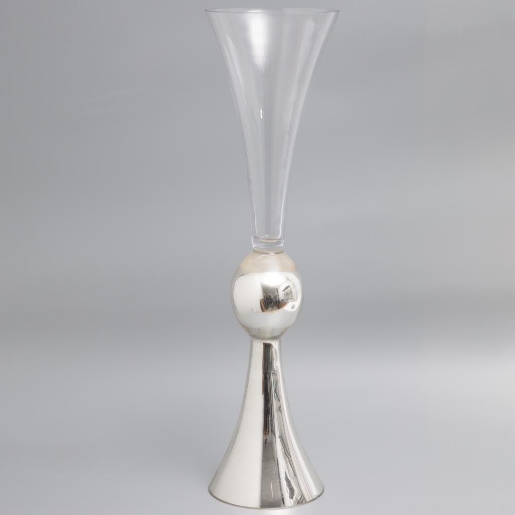 Mid century modern Clear and mirrored glass designer vase 24"H