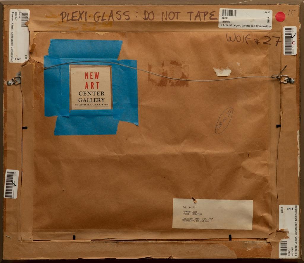 "Fernand Leger" Gouache on Paper signed LR. Label on verso New Art Center Gallery, NY. Provenance: From the Estate of Emile Wolf. Measures 10 1/4" x 13 5/8" Art and 20" x 23" Framed Approx