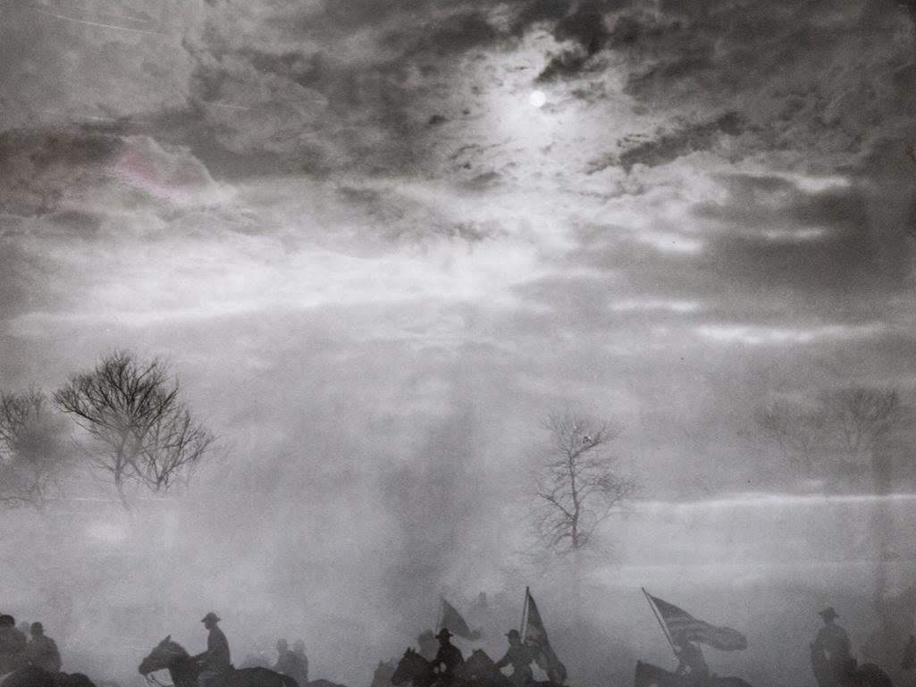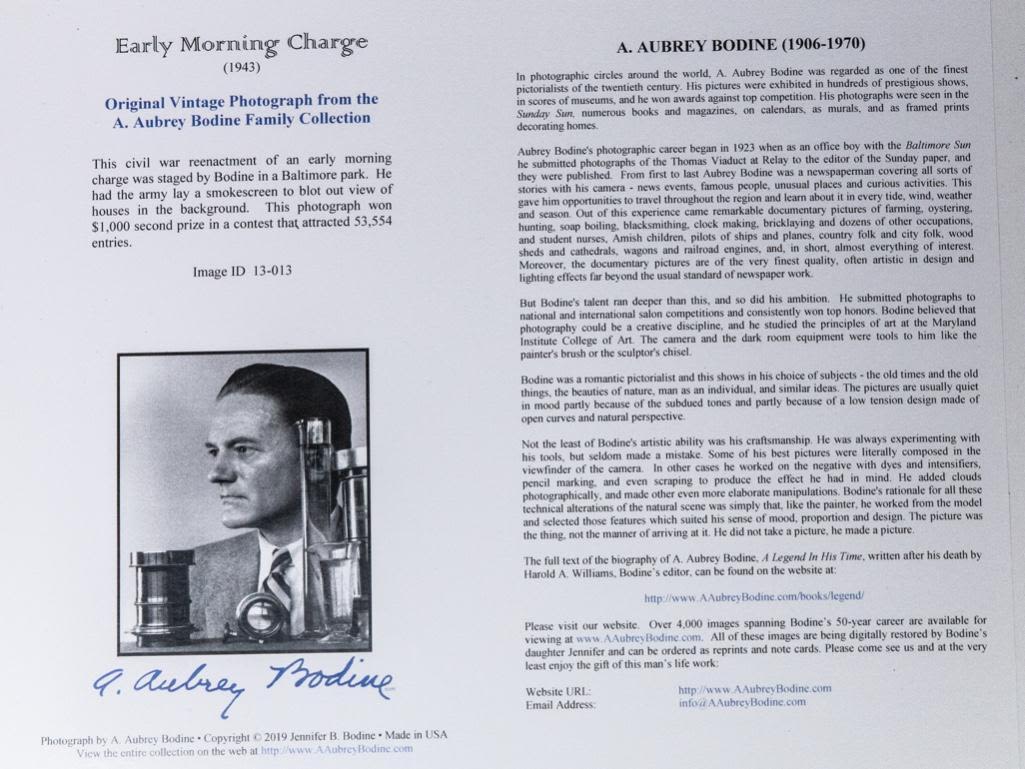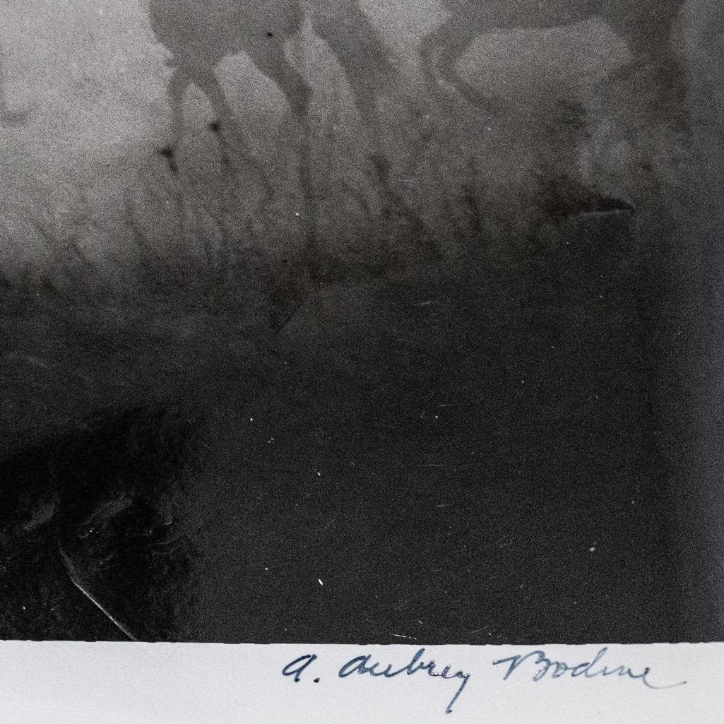 "Early Morning Charge" circa 1943, gelatin silver print, signed "A. Aubrey Bodine" lr, photgrapher stamp on verso, 11 x 14 in., unframed