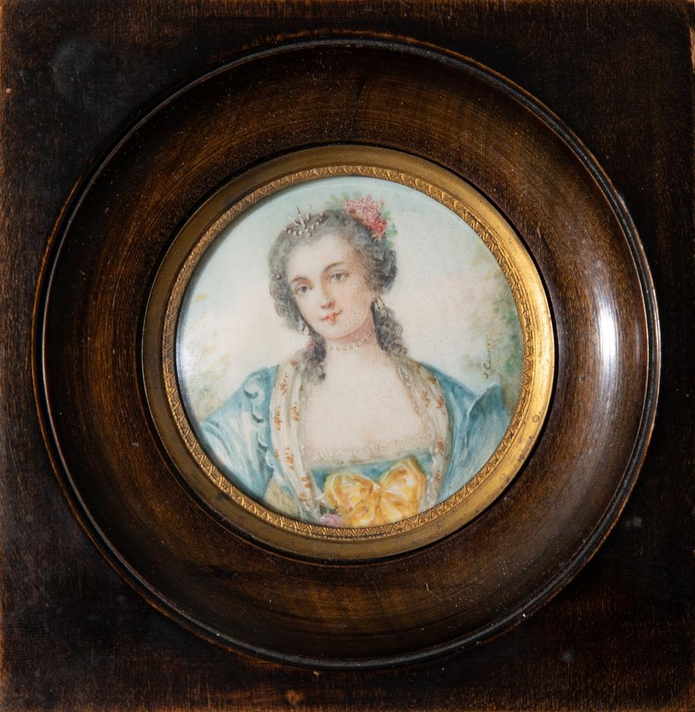 19th Century Miniature Portrait Painting. Measures 5"W x 5.25"H