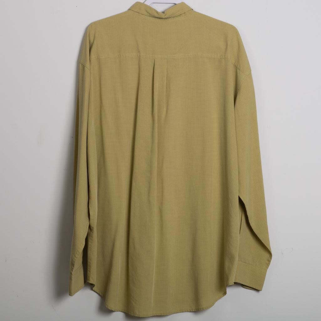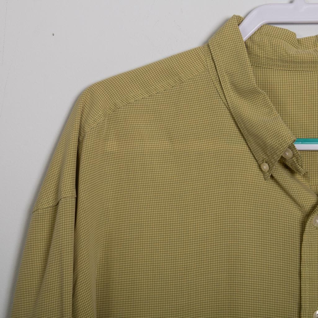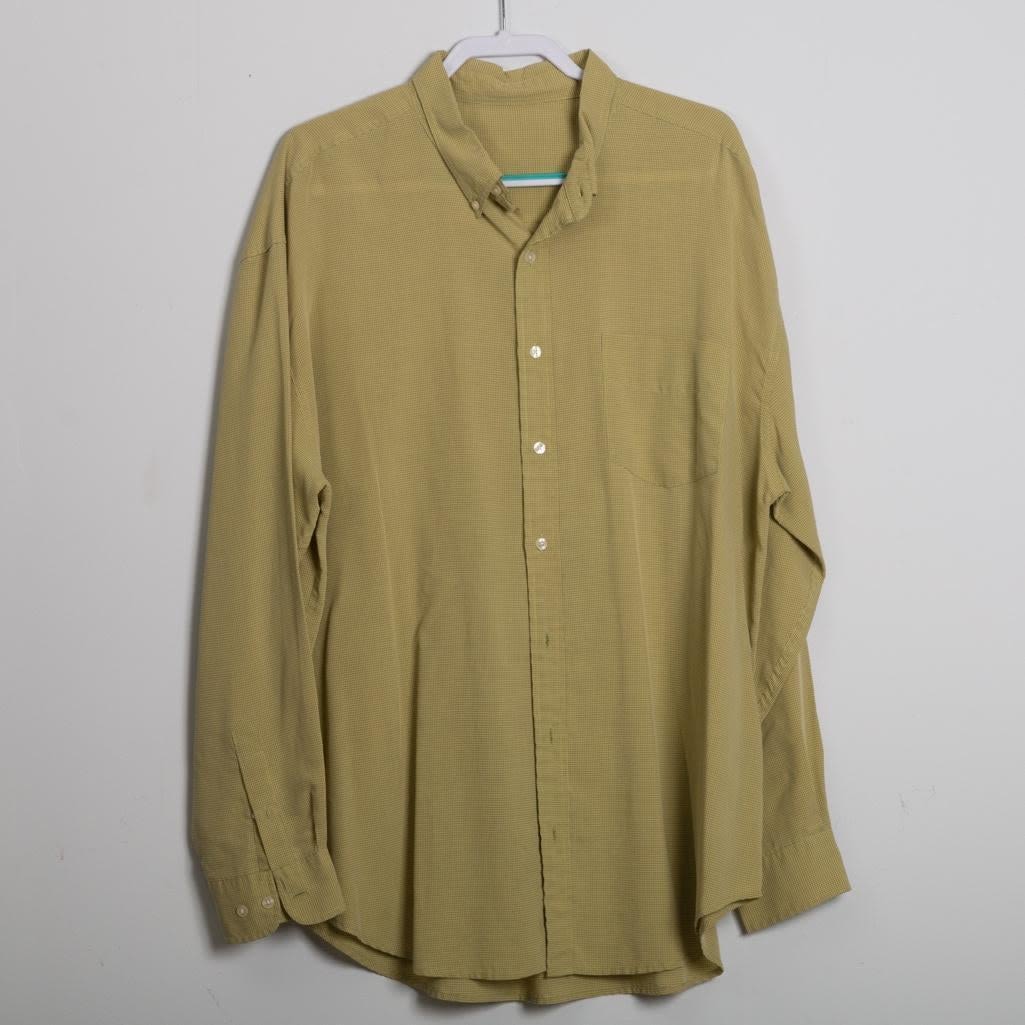Men’s Green/Yellow Button Up Shirt. Unknown Size Possibly a large.