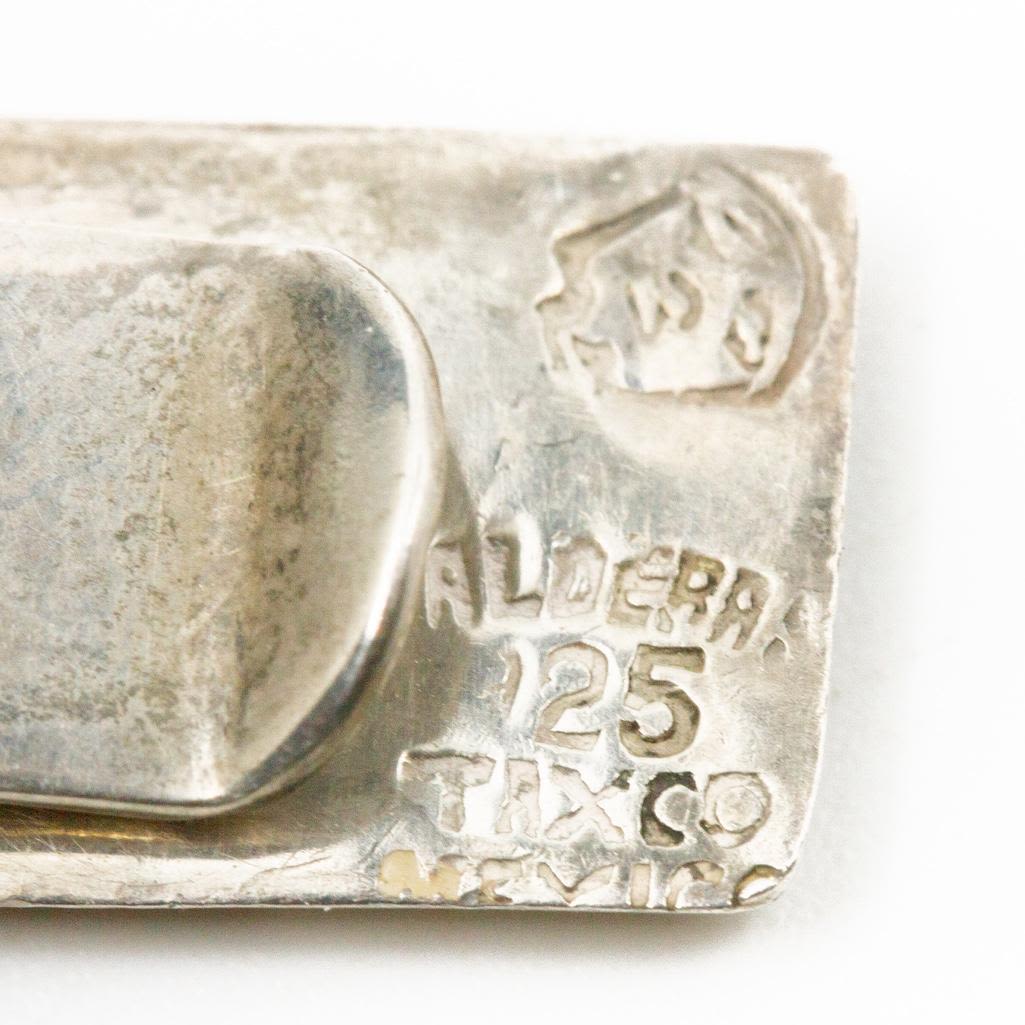Balderas signed Taxco money clip, sterling inlaid with a horn or tortoiseshell 2." approx and weighs 5.8dwt