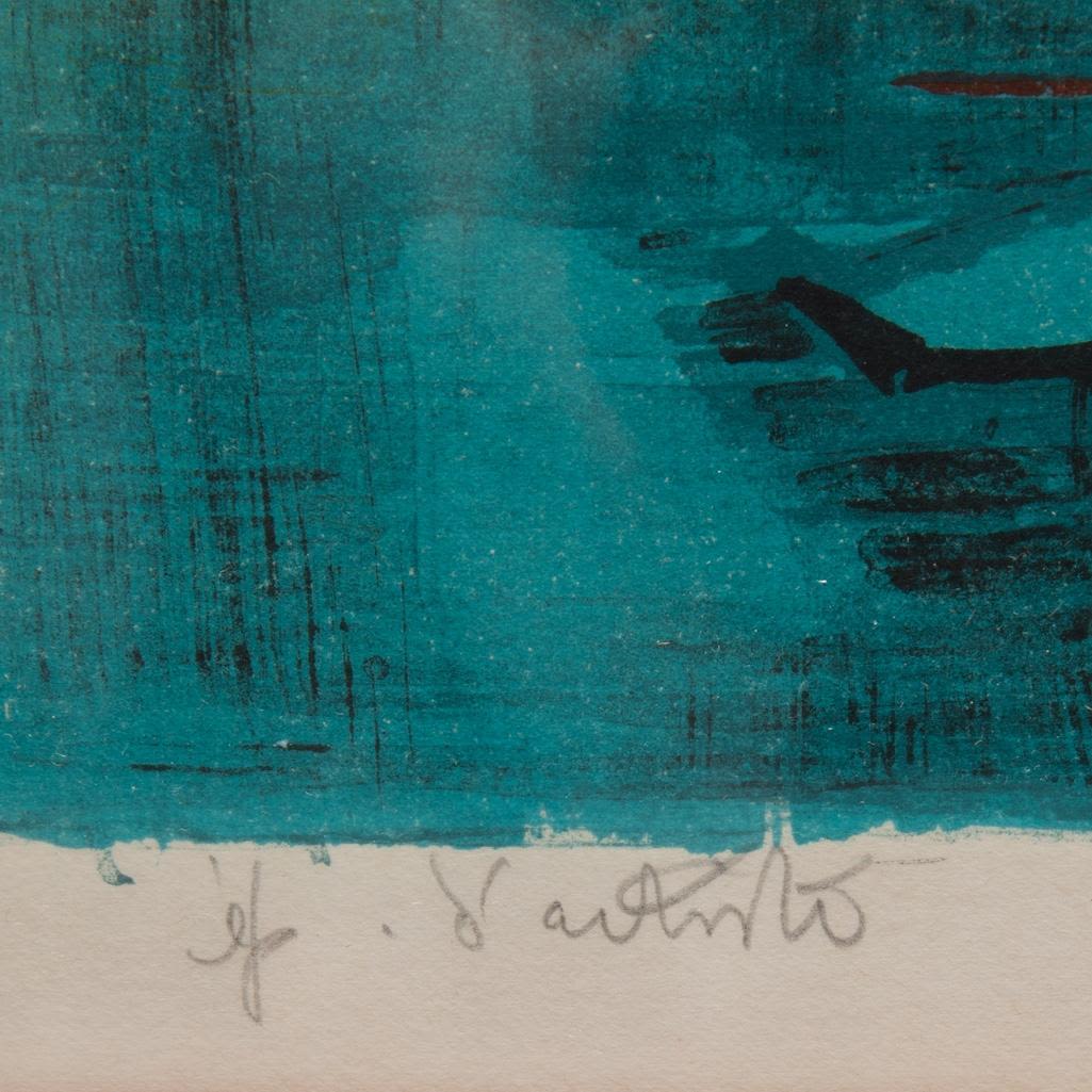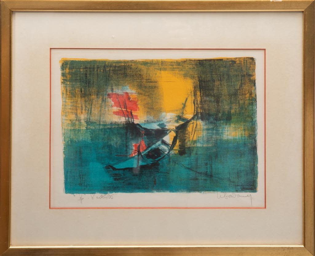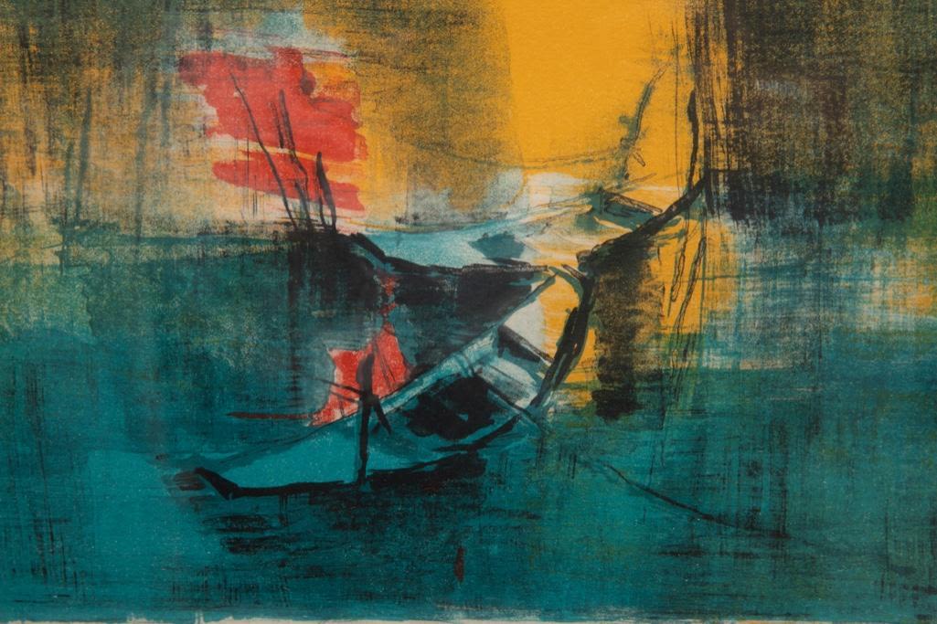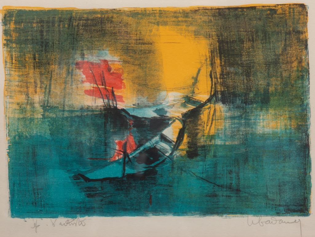 Lebadang "Petite Bateau" pencil signed and titled artist proof lithograph. Lebadang was a Vietnamese-born French artist best known for his densely textured mixed-media paintings of molded pasteboard, limestone, and pigment on burlap or canvas surfaces.