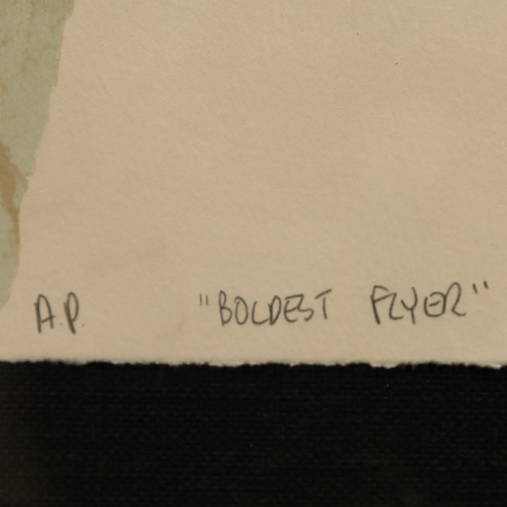 Michael Knigin Artist Proof "Boldest Flyer, 1980 Lithograph Pencil Signed. Image Size 23.5" x 32.75" Framed 27.5" x 37" Approx