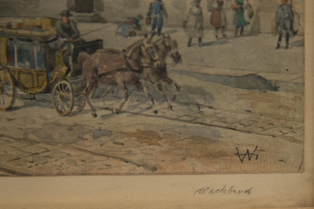 Signed Ferdinand Weckbrodt well rendered water color of Vienna Austria market scene Circa 1800 9.5" x 13.25