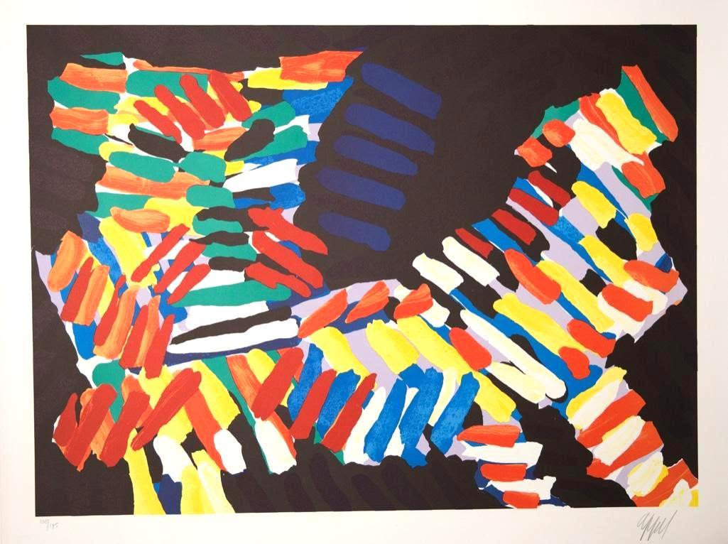 Karel Appel pencil signed and and numbered lithograph circa 1974 on atelier dumas paper with blindstamps for London arts approx 24" x 32" Christiaan Karel Appel was a Dutch painter, sculptor, and poet. He started painting at the age of fourteen and studied at the Rijksakademie in Amsterdam in the 1940s. He was one of the founders of the avant-garde movement Cobra in 1948
