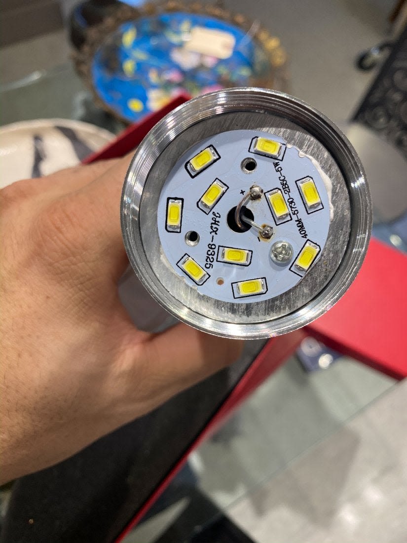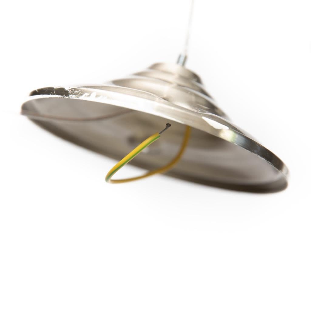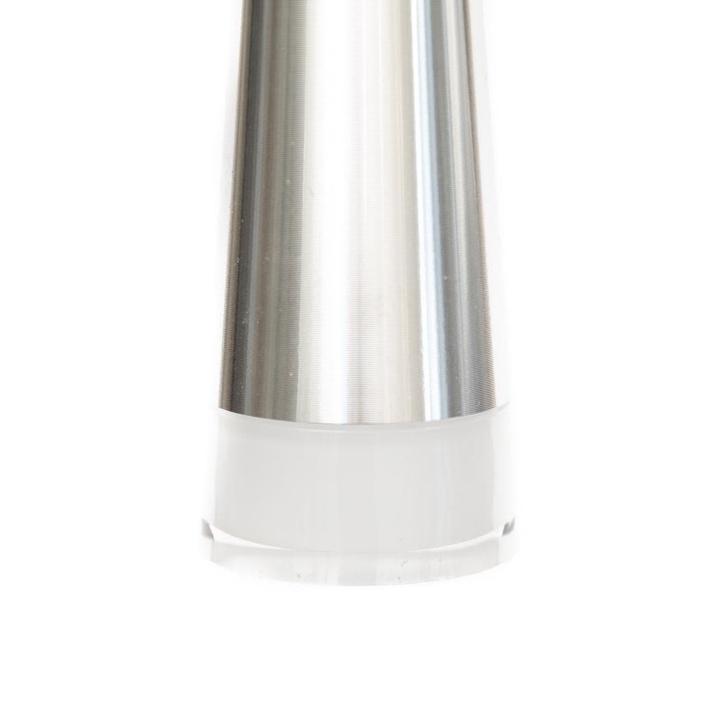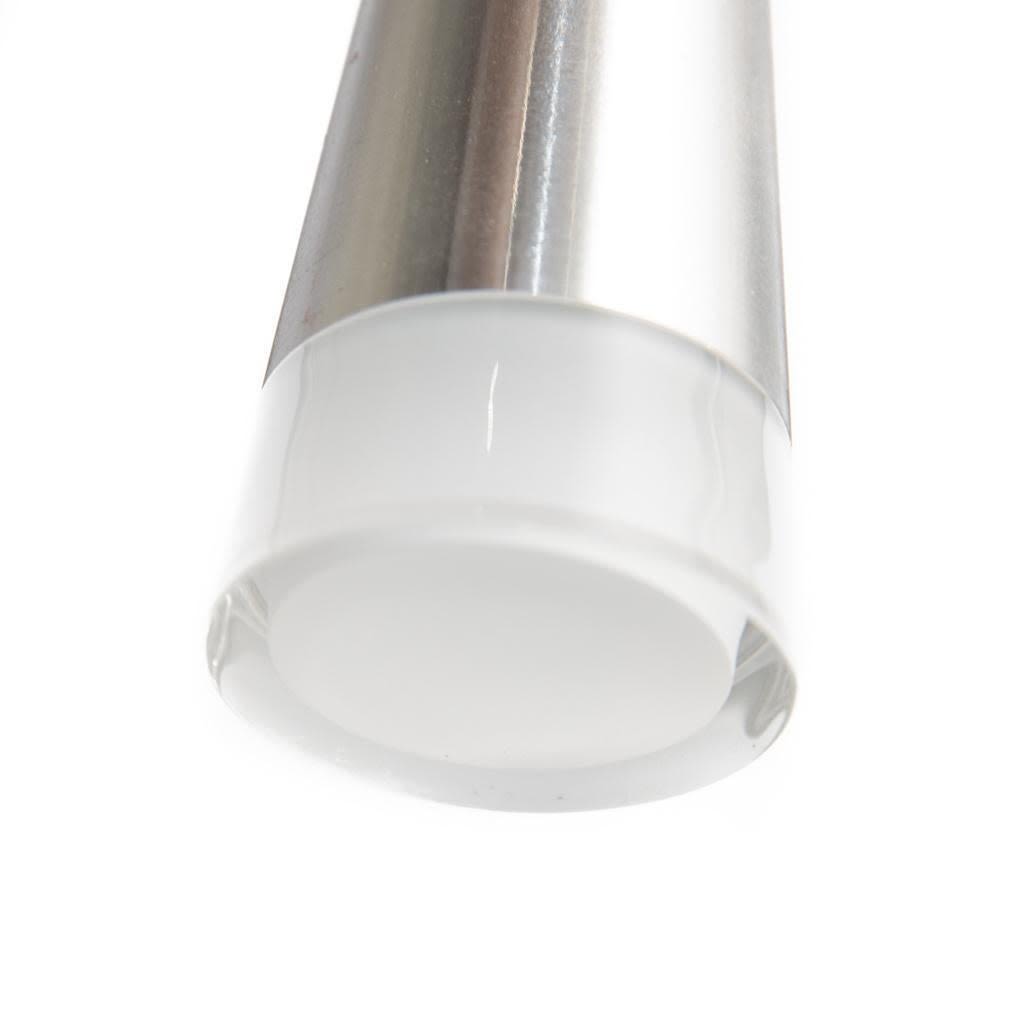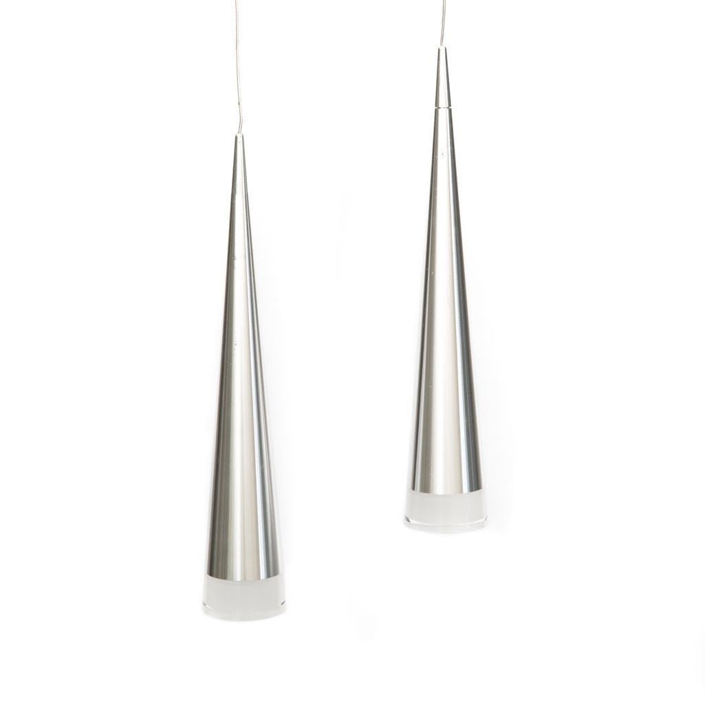 20th Century Modernist Lucite and Polished Aluminum hanging light fixtures, Pendant: 12.75" H x 2.25" diameter.