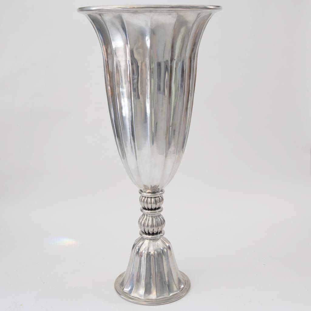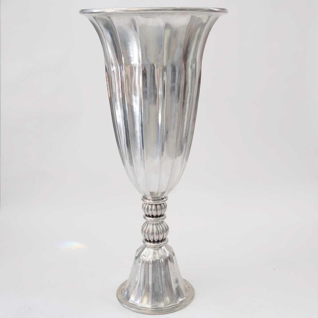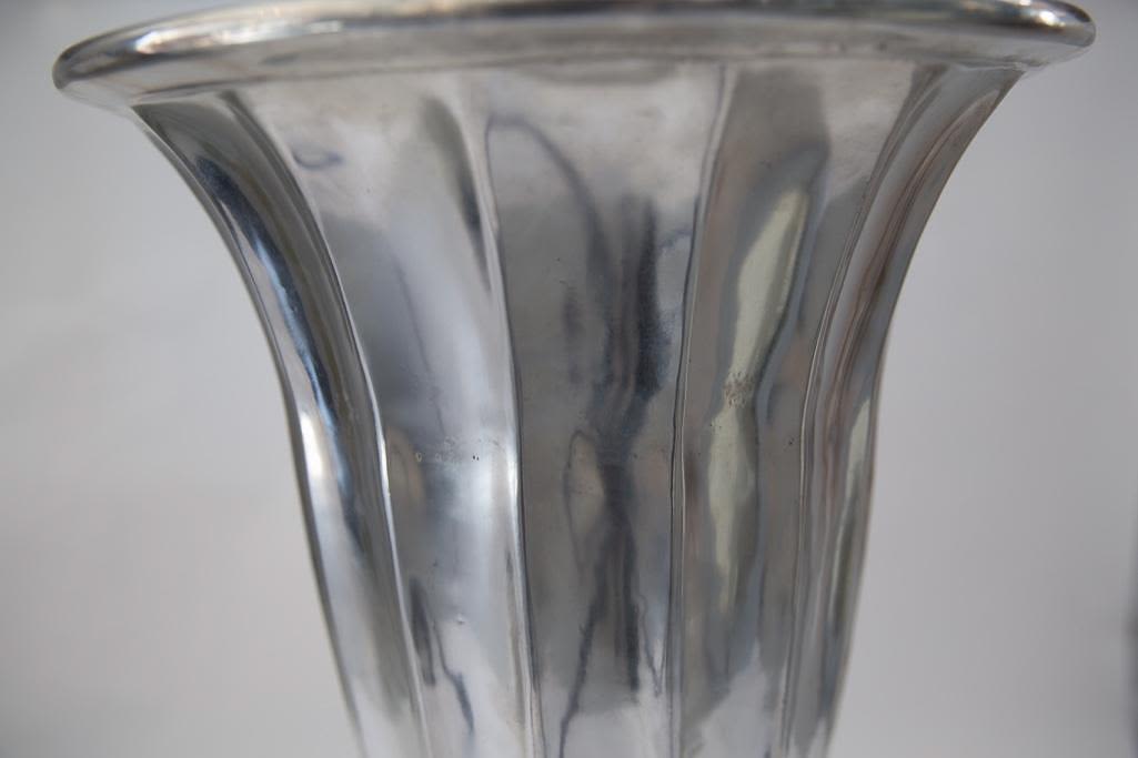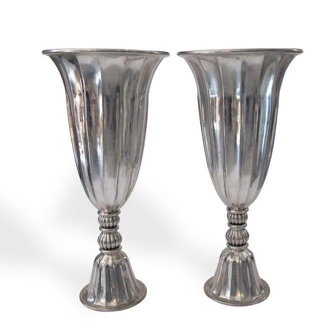 Piero Figura Monumental pair of Ruhlmann style pewter vases with impressed factory mark "Etain Figura Piero-Per Atena" circa 1970’s -1990"s 32"H x 15."Diameter
