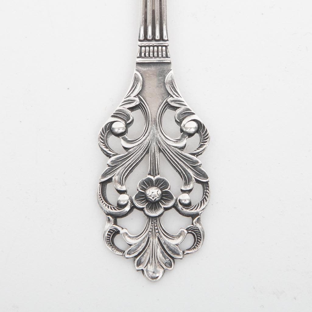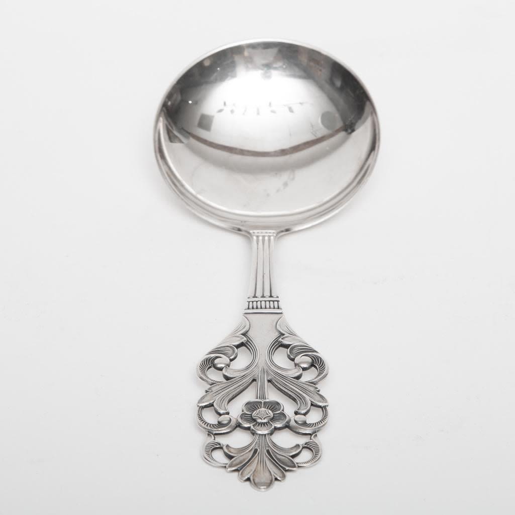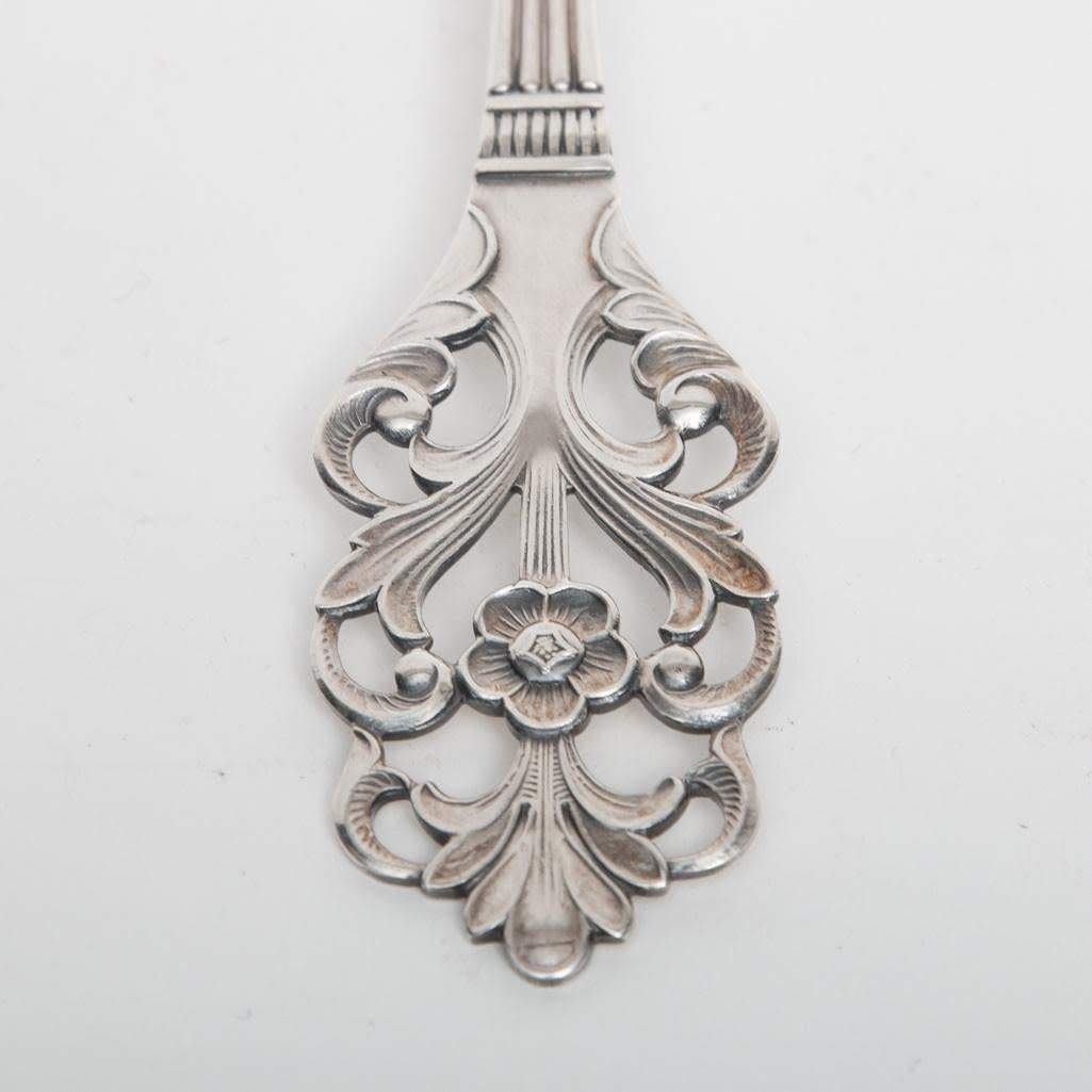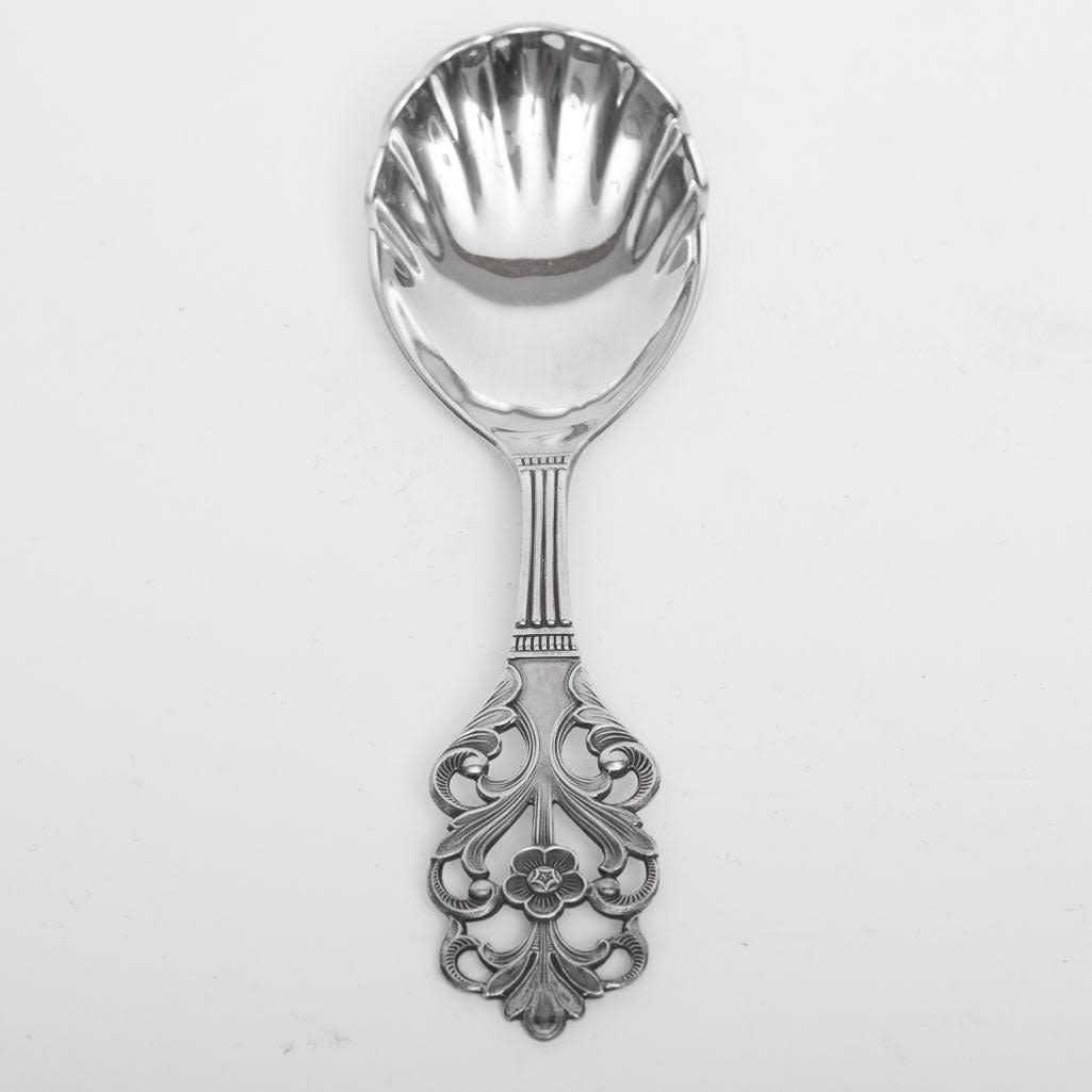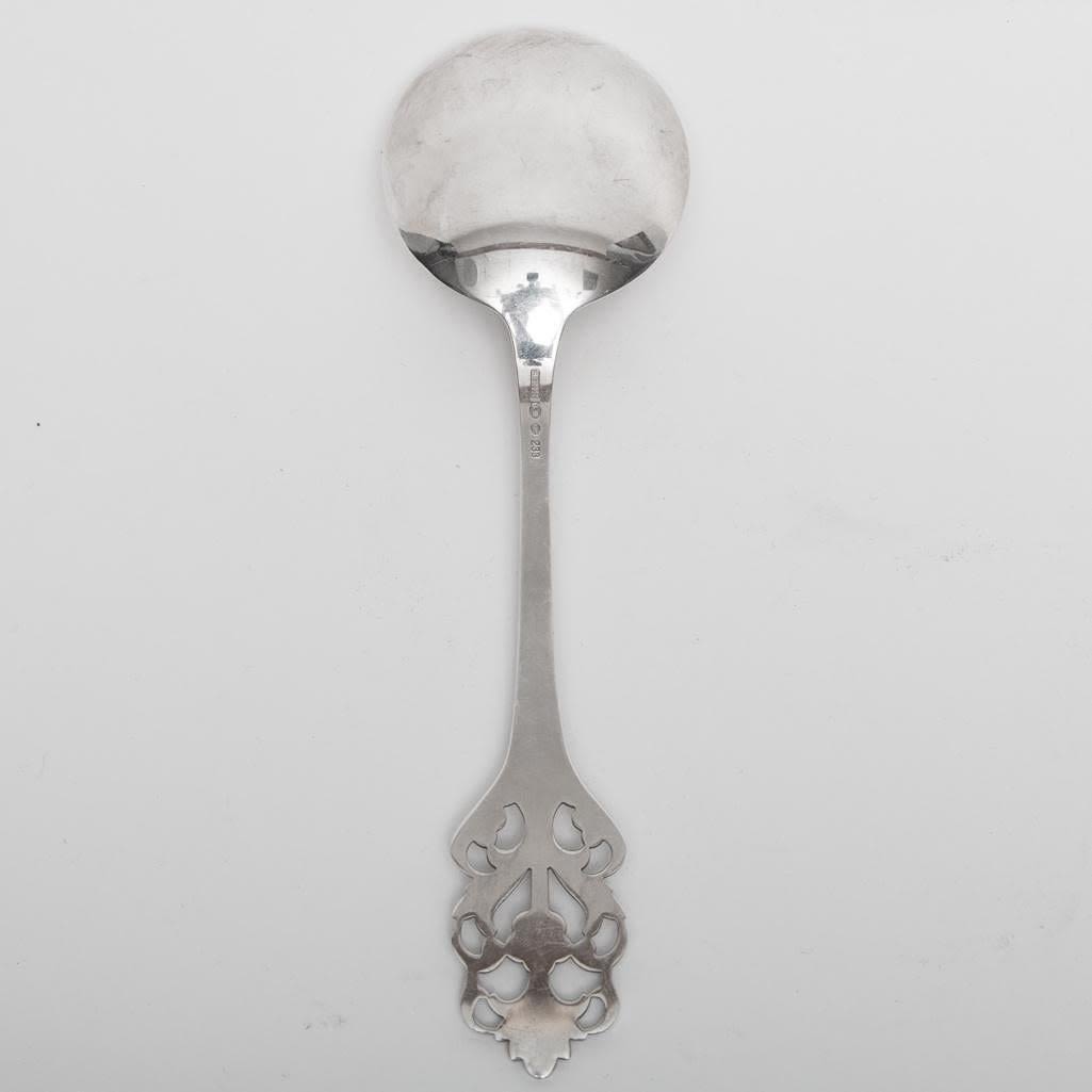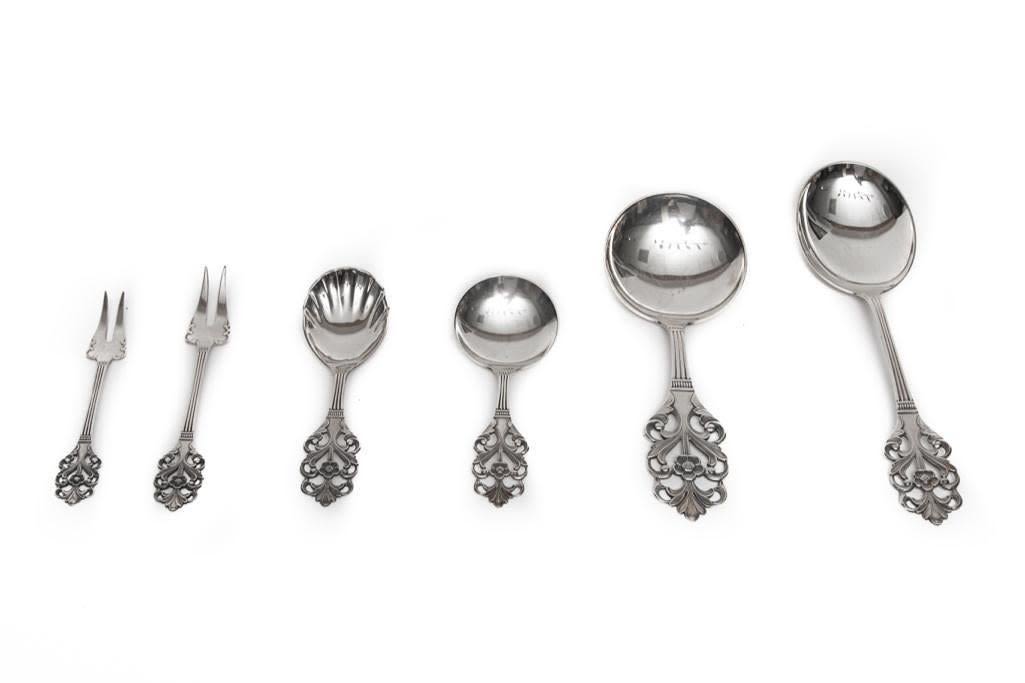 Six HM Marthinsen Silver Viking Rose Pattern Serving Pieces. Largets spoon measures 8"L