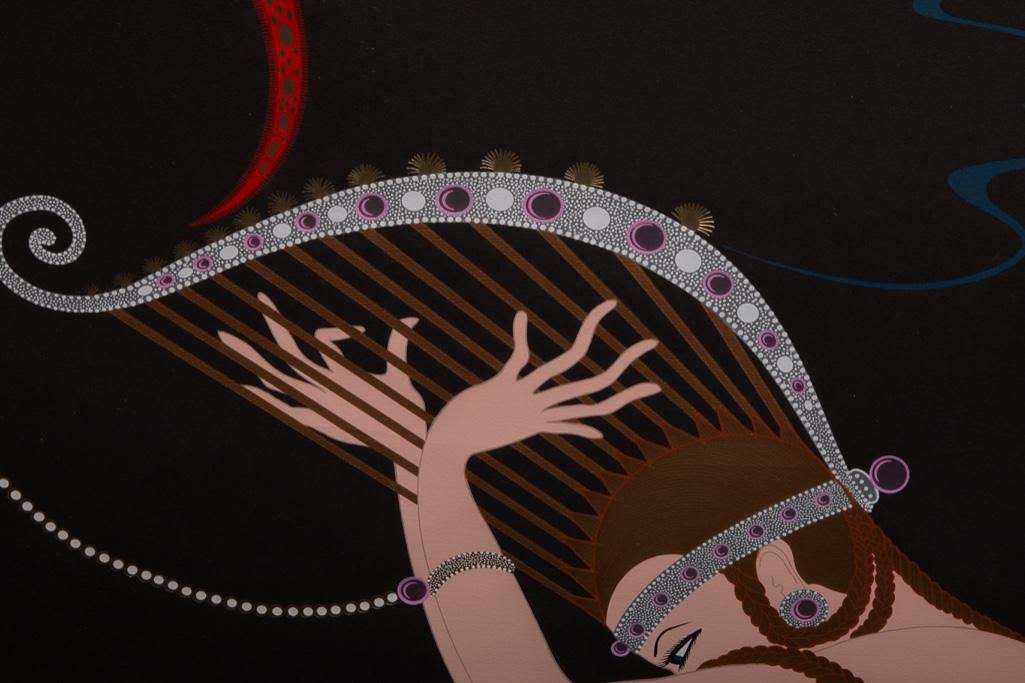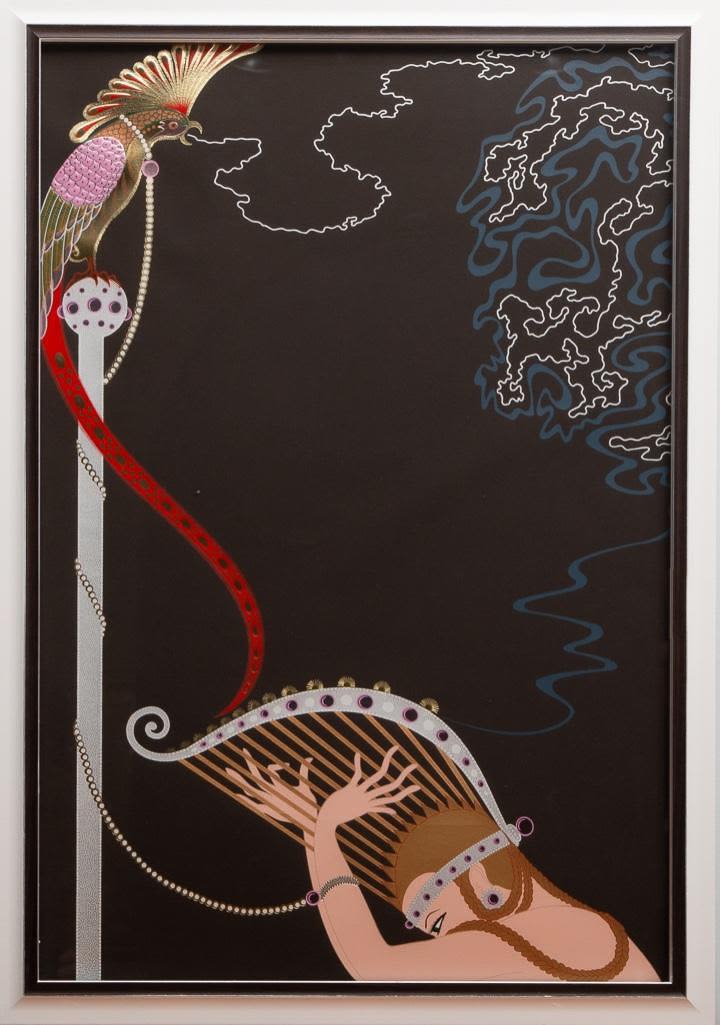 Enchanted Melody”- silkscreen in color, 1983, Pencil signed but the signature is barely visible. good condition. 35"H x 24.5”W Framed