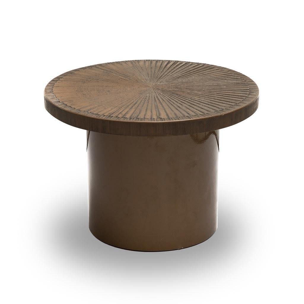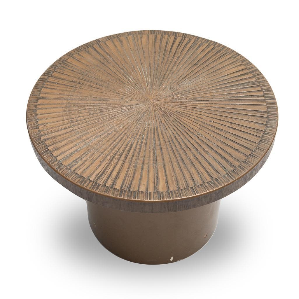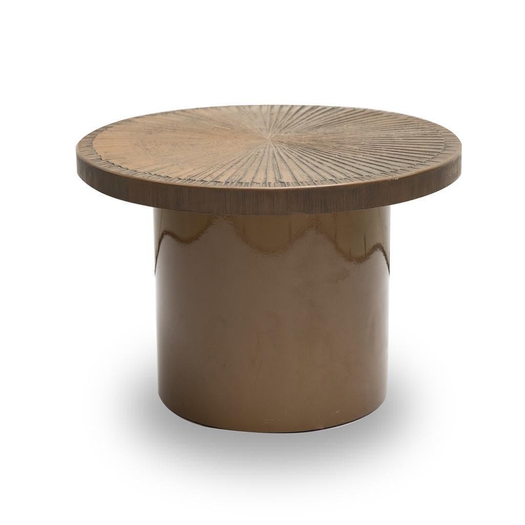 Adrian Pearsall(probably) Mid Century Sculpted brutalist round occasional table on drum base.The starburst designed top hand sculpted resin clad and copper/bronze. 17"h x 24"D