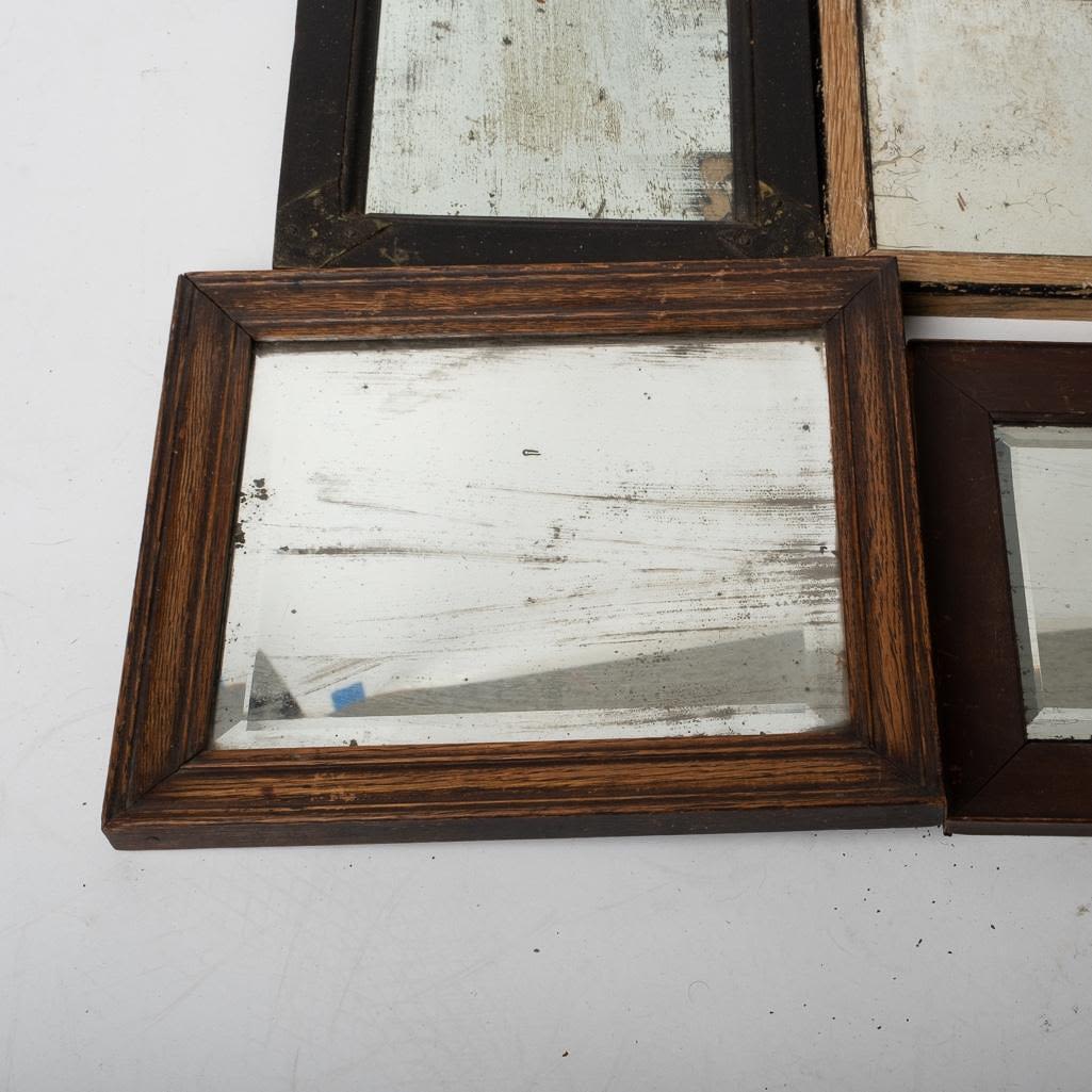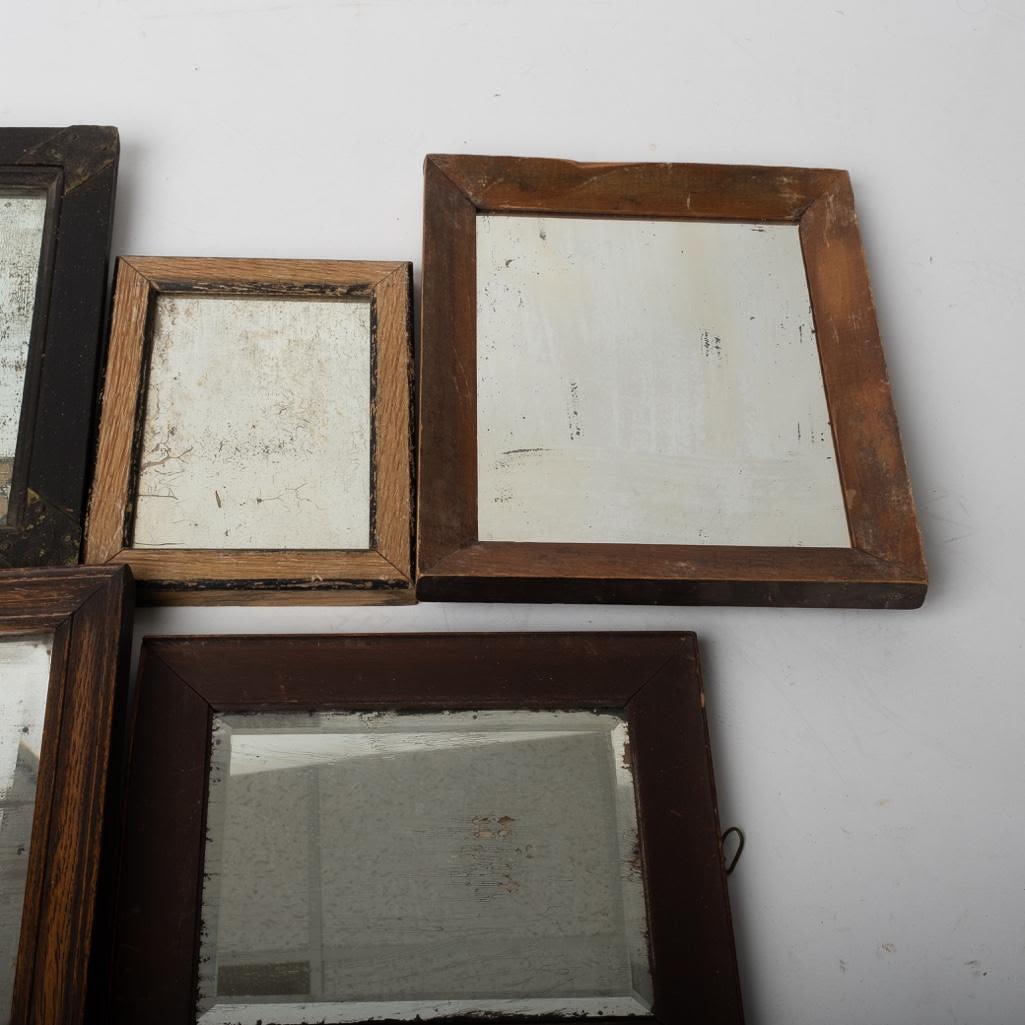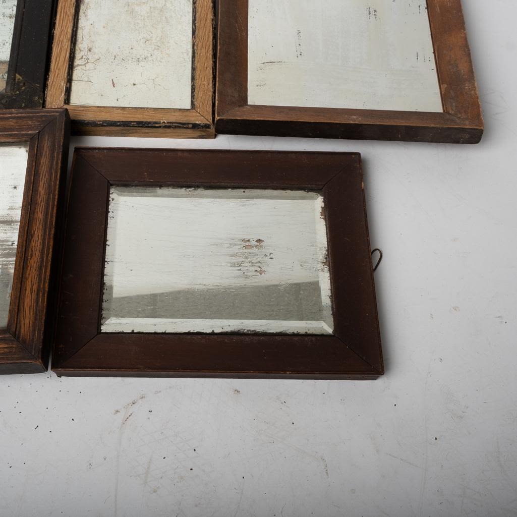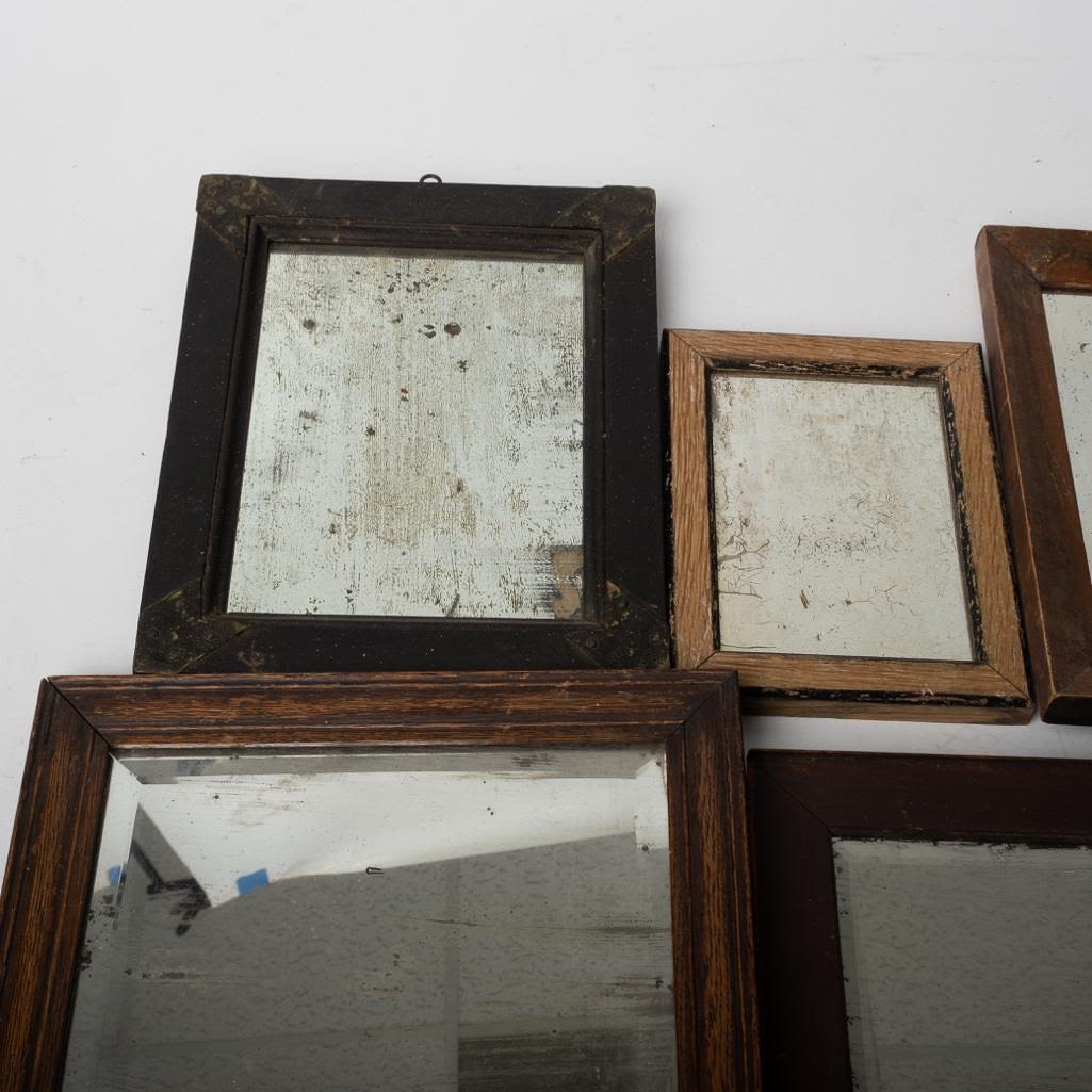 Lot of 5 Antique Mercury Mirrors late 19th century. Beautiful Characteristics. Please see photos for condition. Some crackled visible and spotting. Heavy use. Largest Frame measures 12"H x 10"W