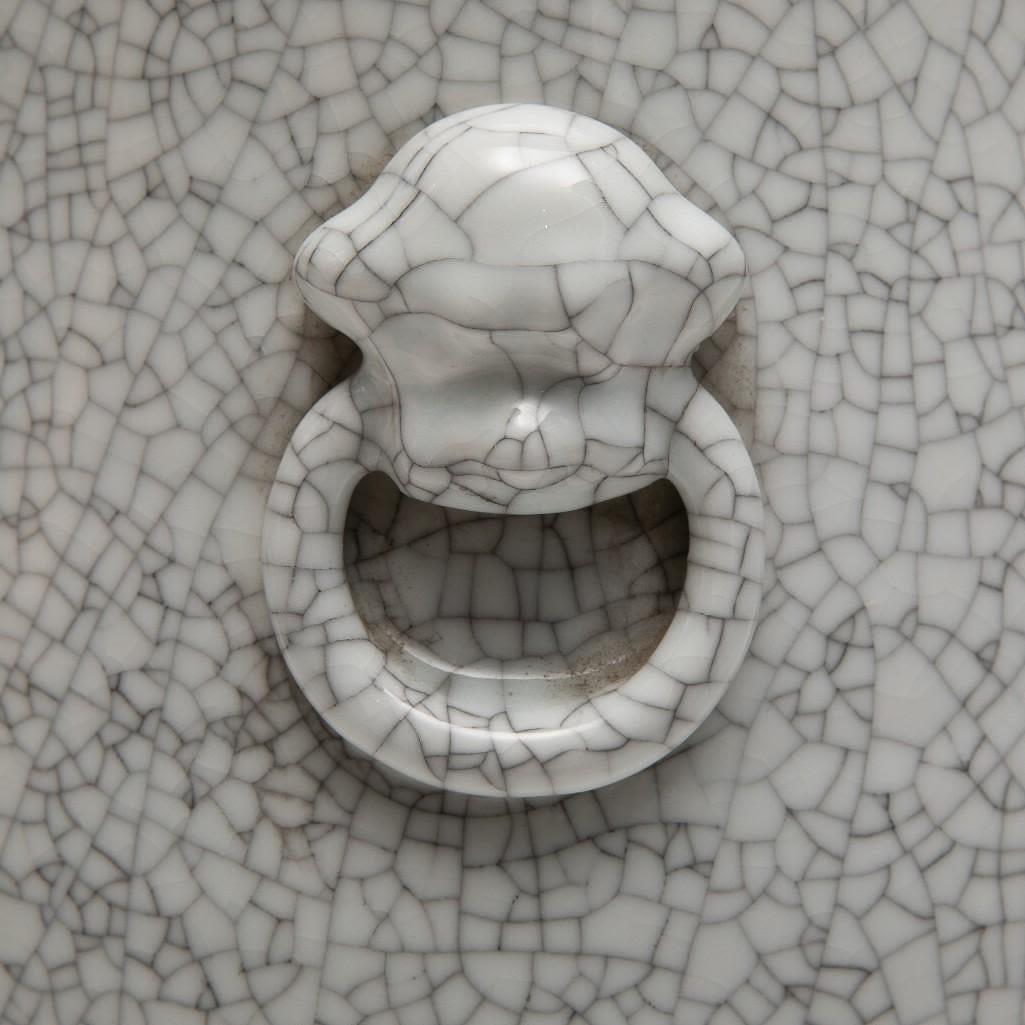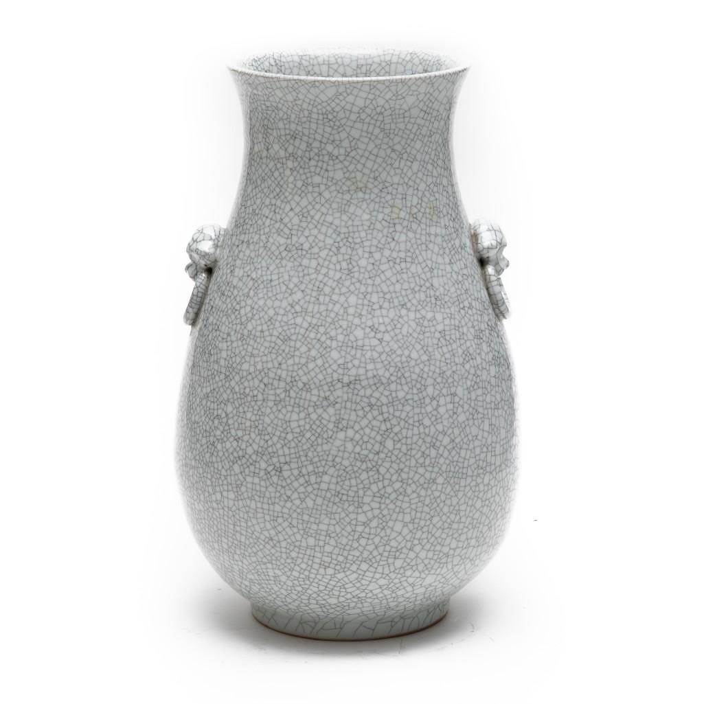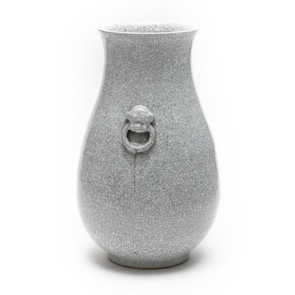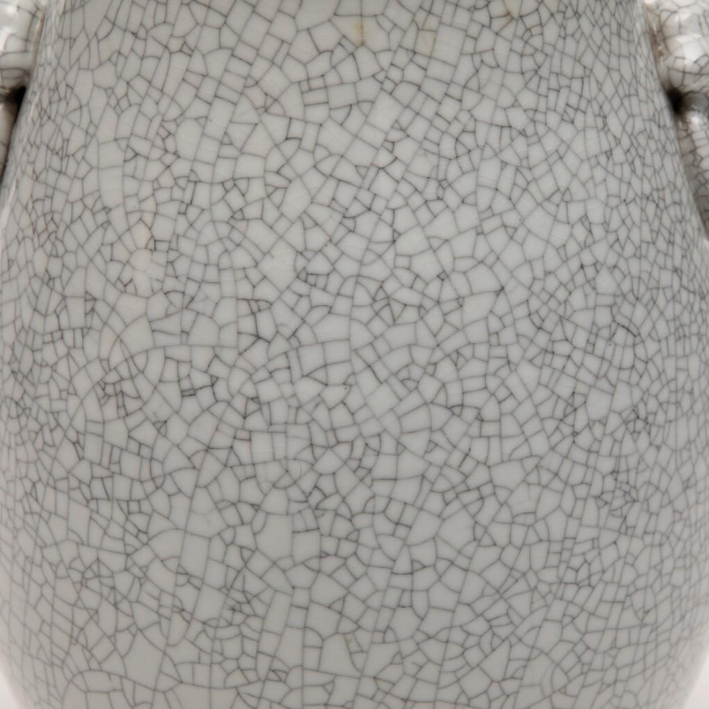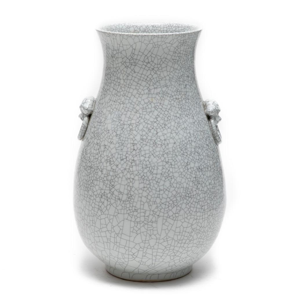 Vintage old tall Chinese crackle glazed hu form vase; 18 1/2" x 12" (approx.) Dating Chinese porcelain is beyond our skill set.