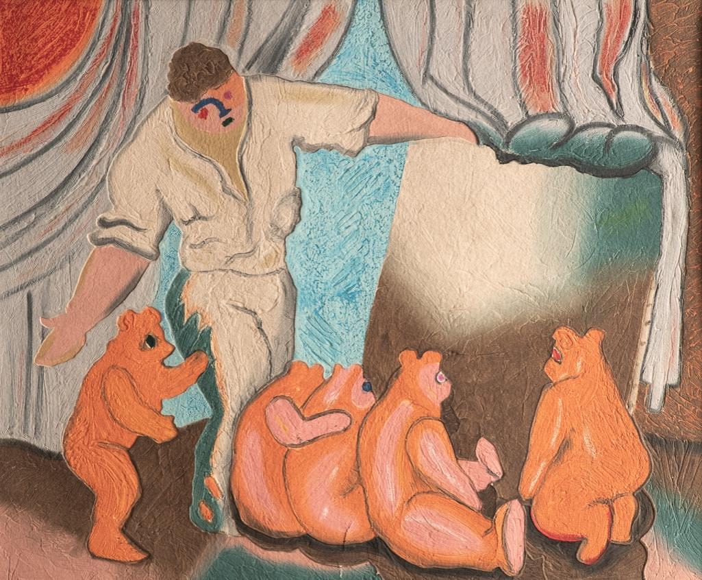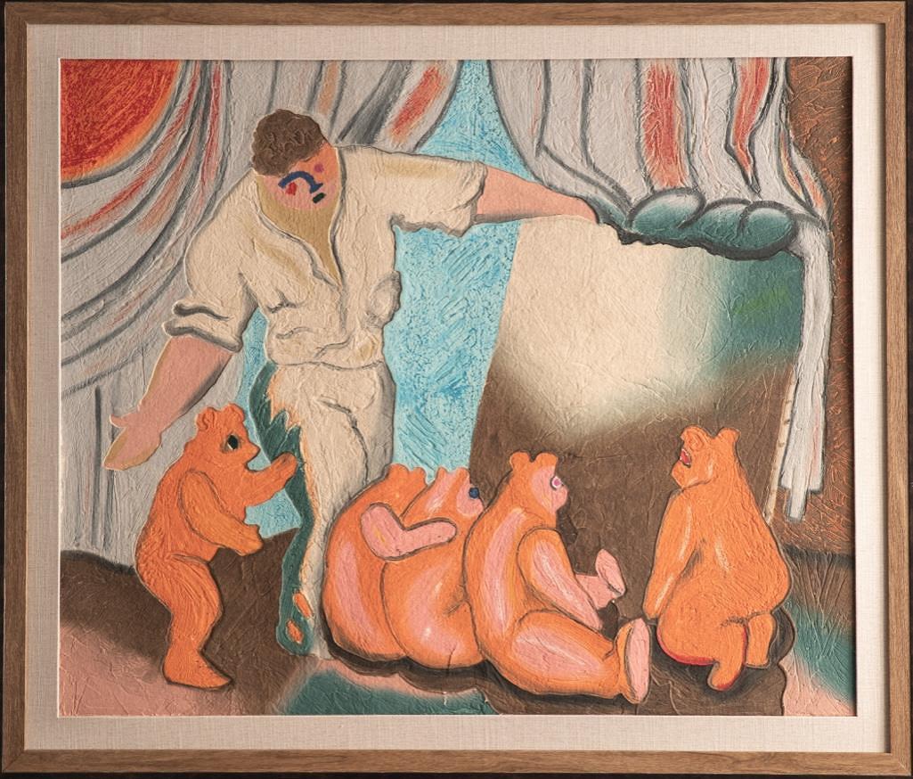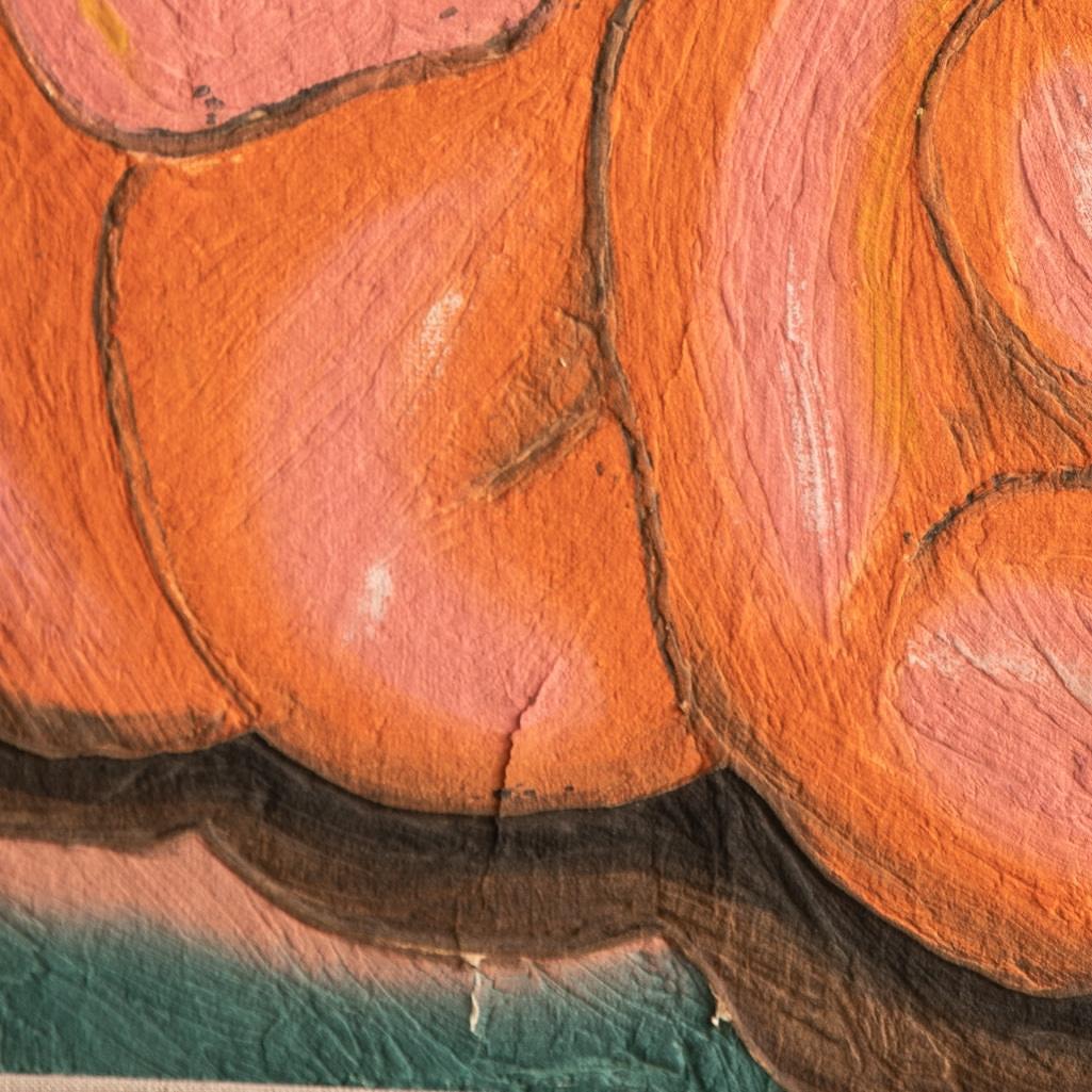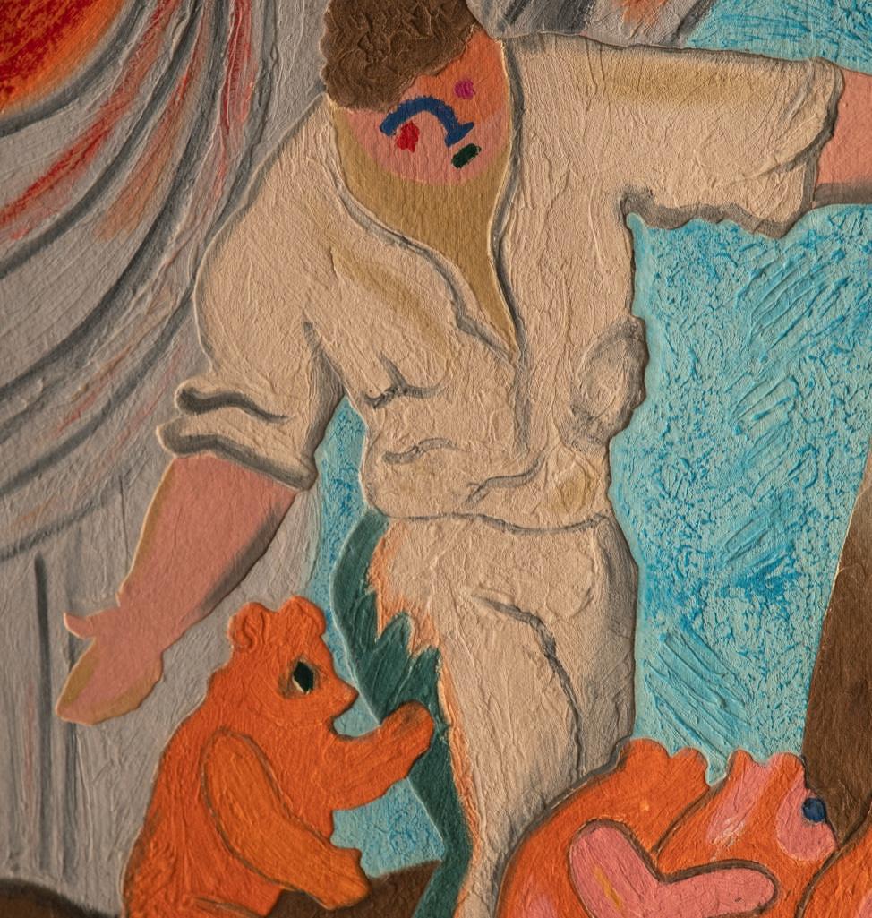 Sandro Chia, carborundum etching and hand painting on a sculpted on very thick hand made paper, 42.5" x 50" Framed.