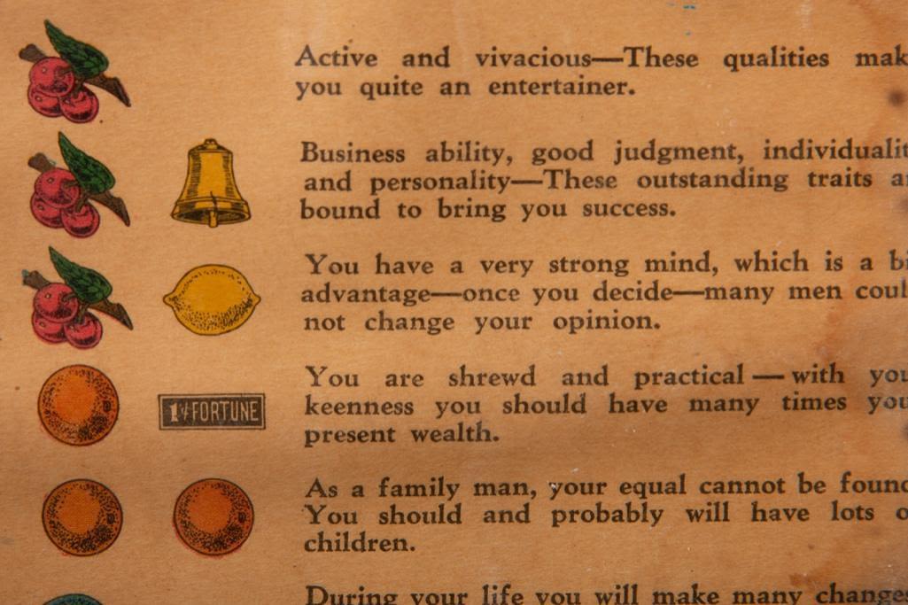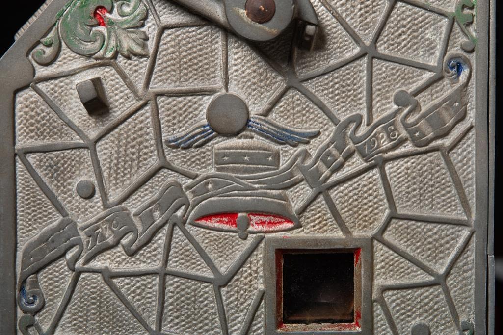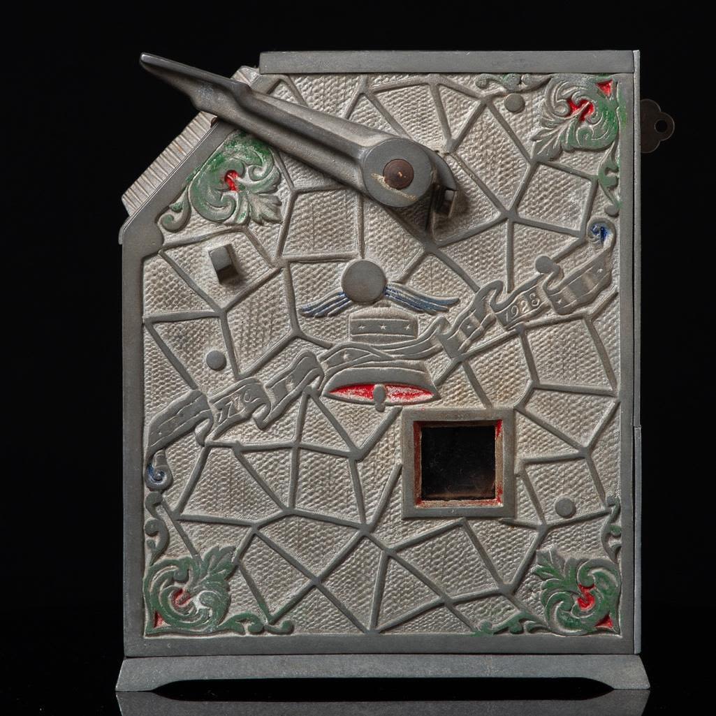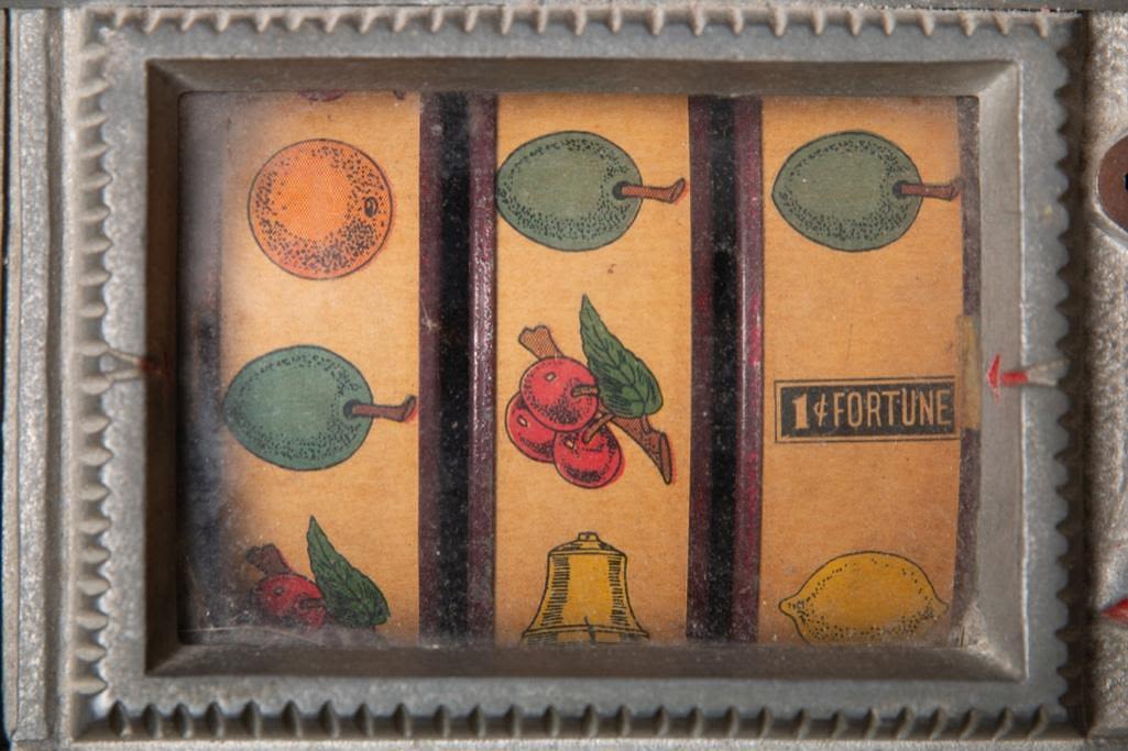 Puritan Baby Bell One Cent Fortune slot machine. Circa 1929-1930. Dimensions: 7" Width x 8" Depth x 10" Height. Manufactured by the Chicago Mint Co. Original one cent fortune card.