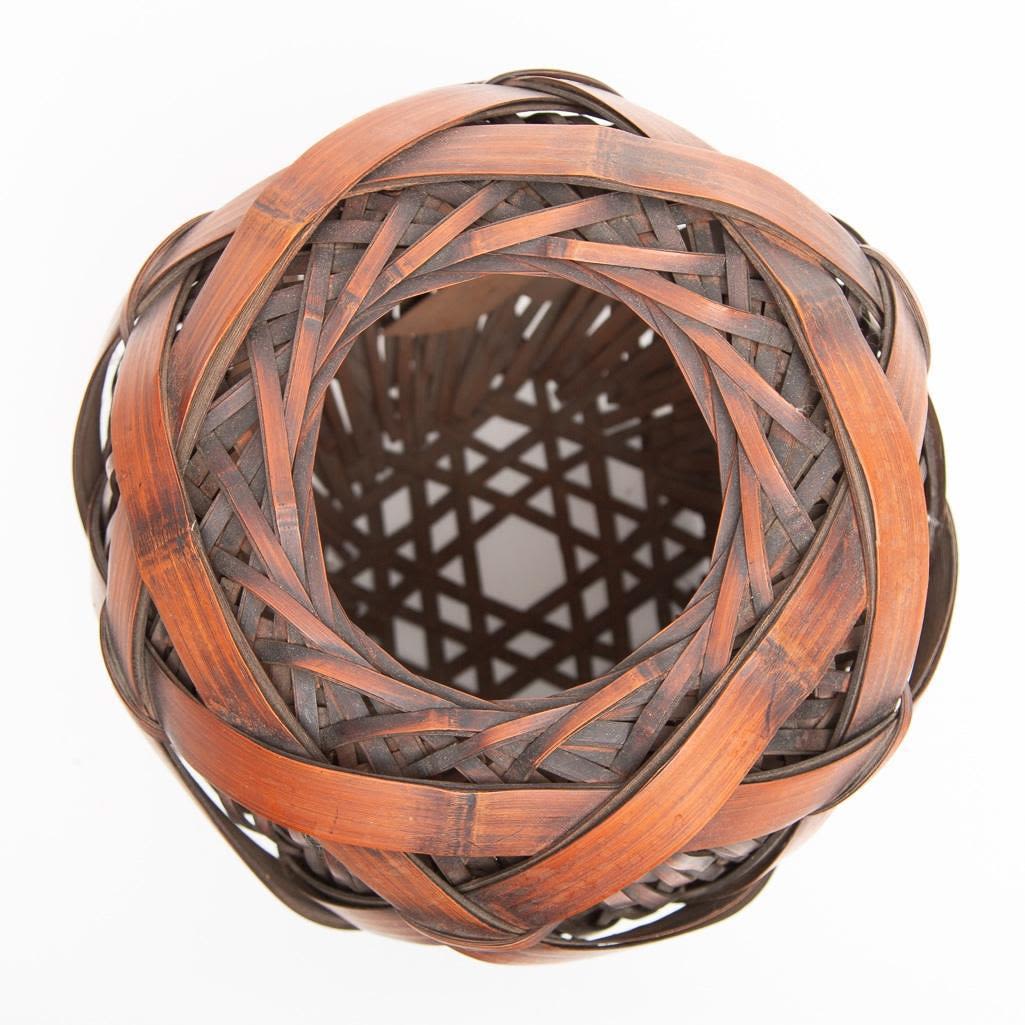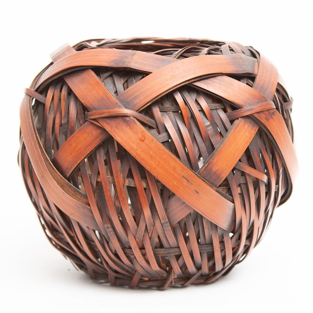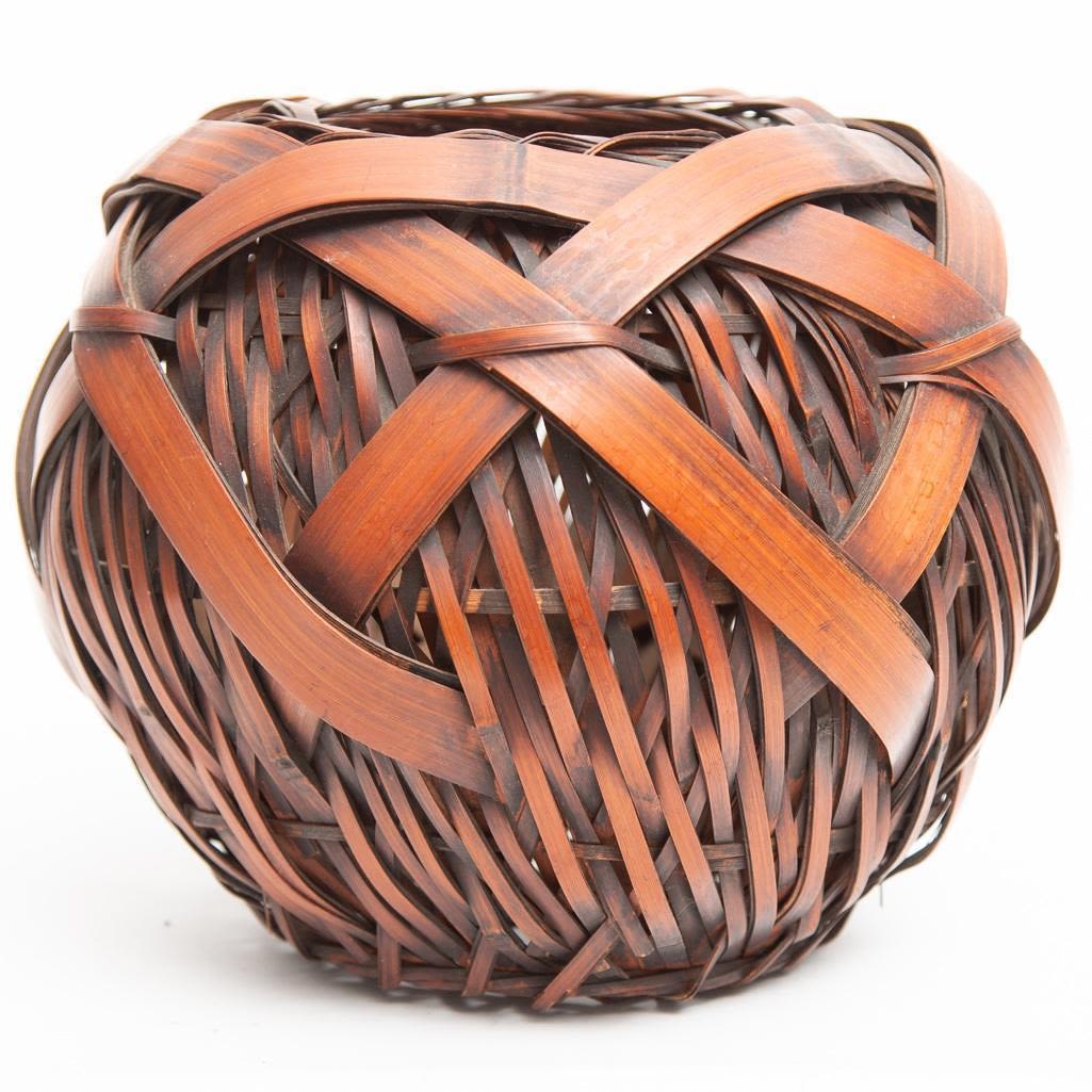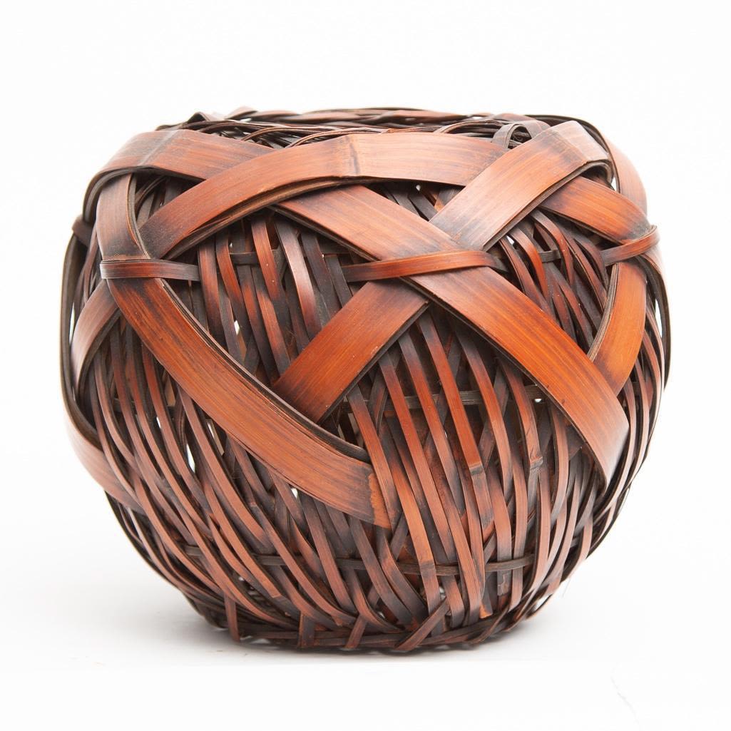 Meiji Japanese woven bamboo ikebana basket Circa 1900 8"H x 8"D approx