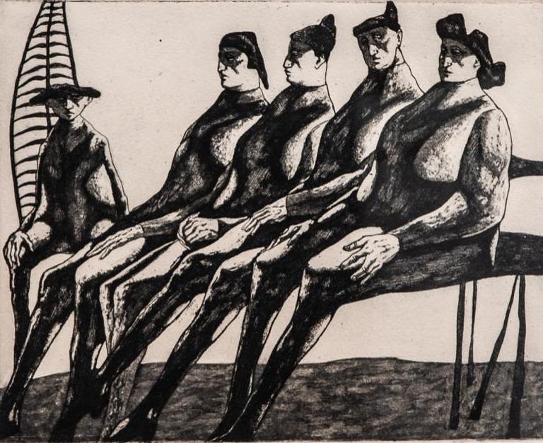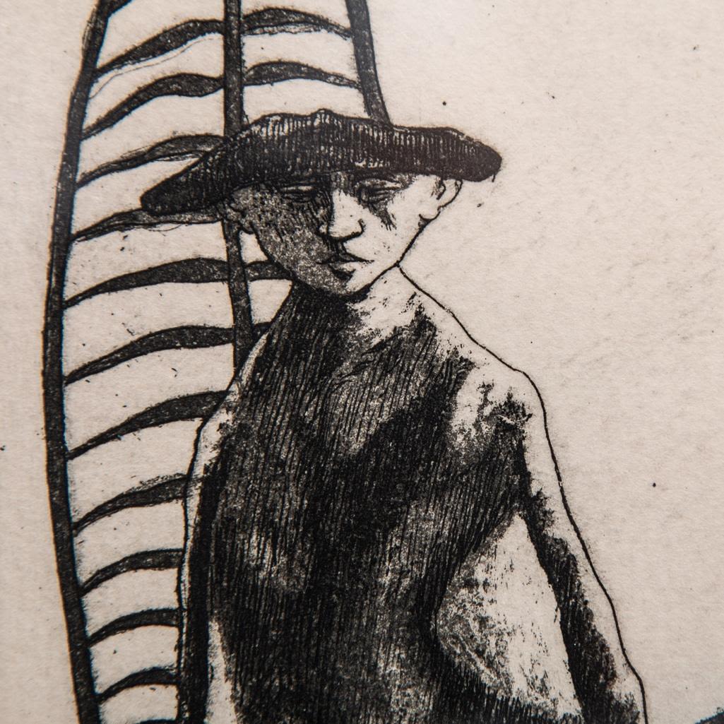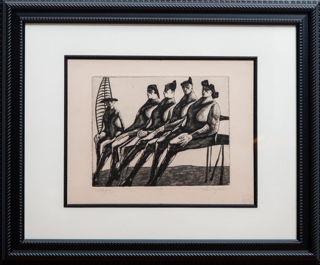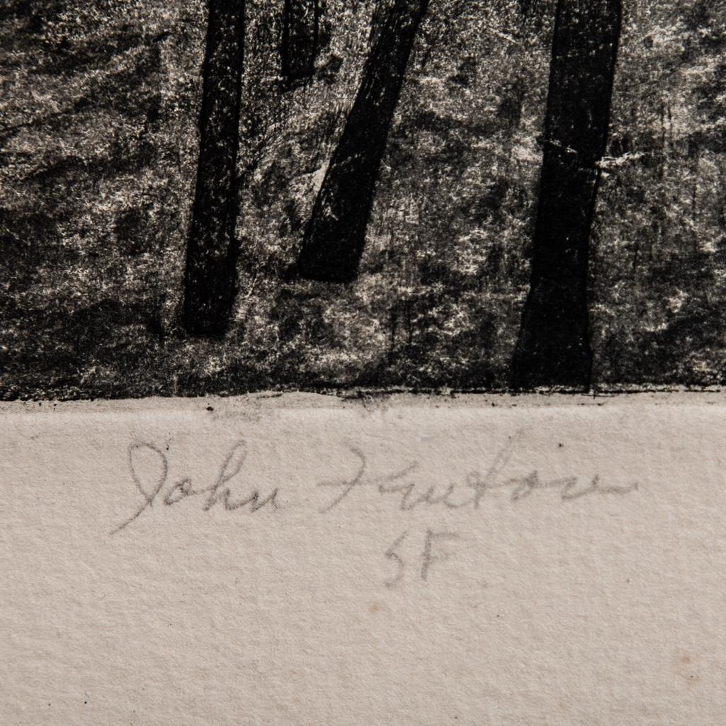 John Fenton Artist Proof etching on paper signed in pencil. Measures 23.5" x 19 3/8" Framed : Visible 8" x 10" Painter, printmaker and teacher John Fenton was born in Mountaindale, New York. He moved with his family to Mount Vernon, New York, where he lived for some thirty years before settling permanently in Woodstock, New York. He attended The Art Student’s League of New York and Atelier 17, Paris. His work was the focus of a number of one-man shows during the 1950s and 1960s, and was exhibited in numerous museums and galleries including the Art Institute of Chicago, The Museum of Modern Art in New York, The Corcoran Gallery in Washington, D.C. And the Pennsylvania Academy.Fenton taught at New York University and Goddard College. His distinctly surrealist work won awards from the American Academy of Arts and Letters, the National Academy of Design, and numerous other institutions, and is included in the collections of the Smithsonian American Art Museum, the Corcoran Gallery among others. He died at Woodstock, New York.
