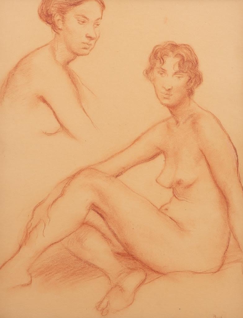 John Fenton graphite on paper drawing of nude women. Signed bottom right. Measures 19 3/8" x 23.5": Visible 13 3/8 x 10 3/8" Approx. Painter, printmaker and teacher John Fenton was born in Mountaindale, New York. He moved with his family to Mount Vernon, New York, where he lived for some thirty years before settling permanently in Woodstock, New York. He attended The Art Student’s League of New York and Atelier 17, Paris. His work was the focus of a number of one-man shows during the 1950s and 1960s, and was exhibited in numerous museums and galleries including the Art Institute of Chicago, The Museum of Modern Art in New York, The Corcoran Gallery in Washington, D.C. And the Pennsylvania Academy.Fenton taught at New York University and Goddard College. His distinctly surrealist work won awards from the American Academy of Arts and Letters, the National Academy of Design, and numerous other institutions, and is included in the collections of the Smithsonian American Art Museum, the Corcoran Gallery among others. He died at Woodstock, New York.