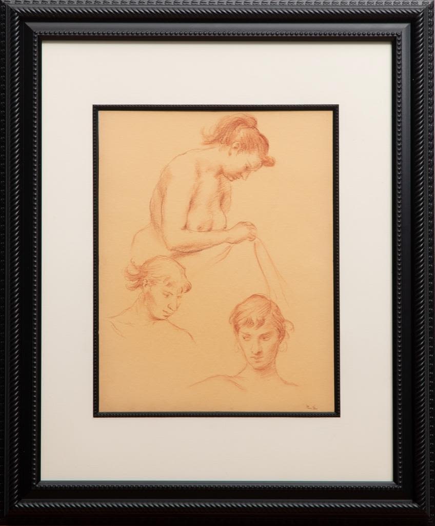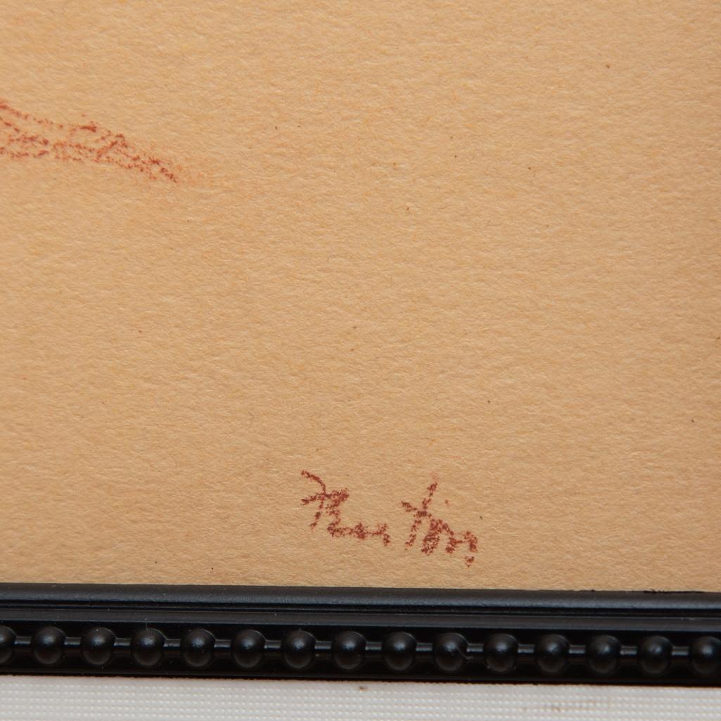 John Fenton graphite on paper drawing. Signed bottom right. Measures 19 3/8" x 23.5": Visible 13 3/8 x 10 3/8" Approx. Painter, printmaker and teacher John Fenton was born in Mountaindale, New York. He moved with his family to Mount Vernon, New York, where he lived for some thirty years before settling permanently in Woodstock, New York. He attended The Art Student’s League of New York and Atelier 17, Paris. His work was the focus of a number of one-man shows during the 1950s and 1960s, and was exhibited in numerous museums and galleries including the Art Institute of Chicago, The Museum of Modern Art in New York, The Corcoran Gallery in Washington, D.C. And the Pennsylvania Academy.Fenton taught at New York University and Goddard College. His distinctly surrealist work won awards from the American Academy of Arts and Letters, the National Academy of Design, and numerous other institutions, and is included in the collections of the Smithsonian American Art Museum, the Corcoran Gallery among others. He died at Woodstock, New York.